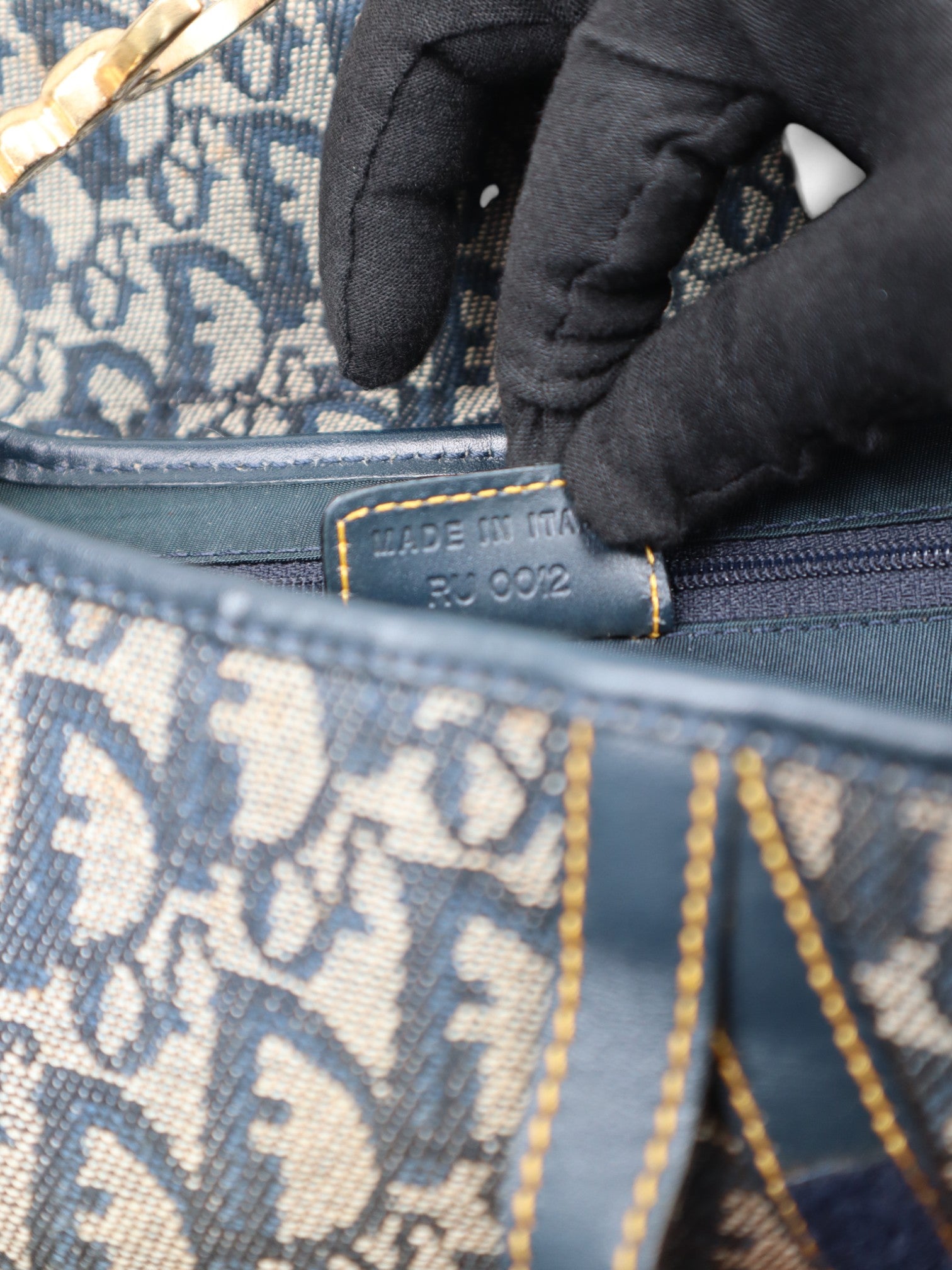 Condition: The canvas and leather trim show gentle wear consistent with age, including soft fading and light surface marks. Hardware shows subtle patina. Interior also displays light signs of use. Overall, beautifully preserved with a true vintage Dior charm.