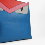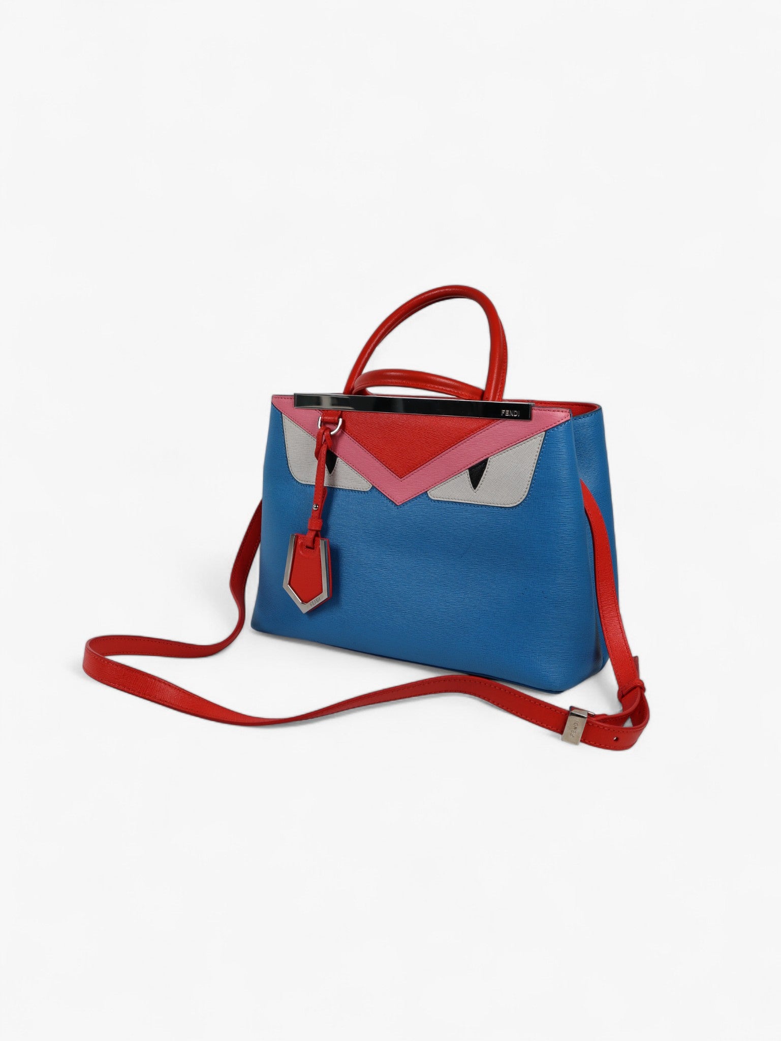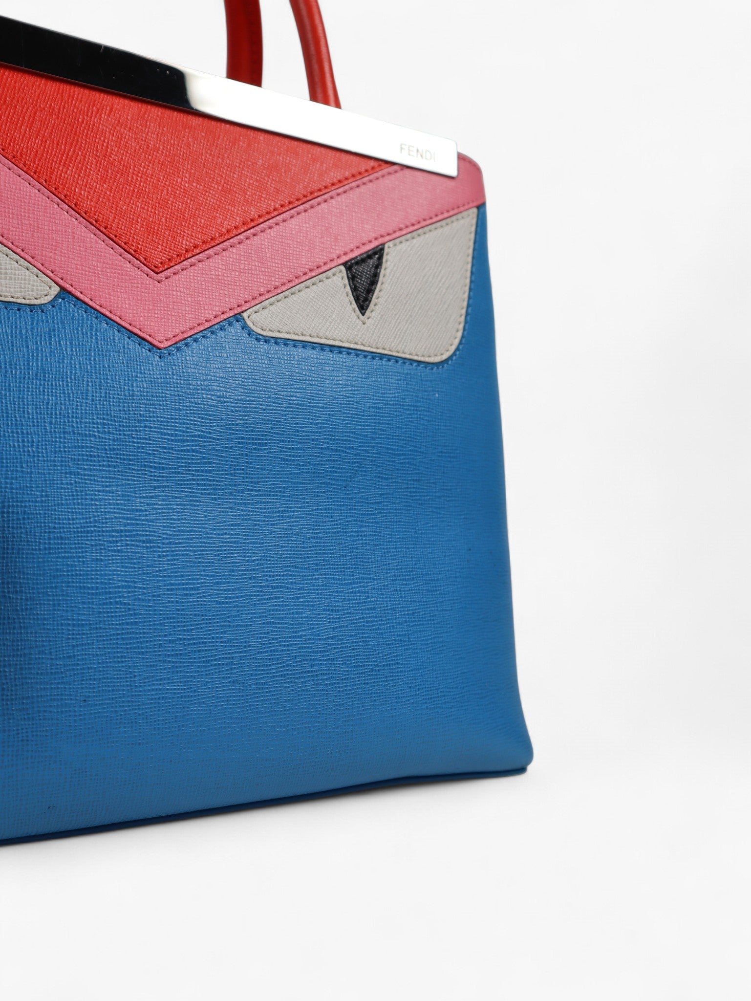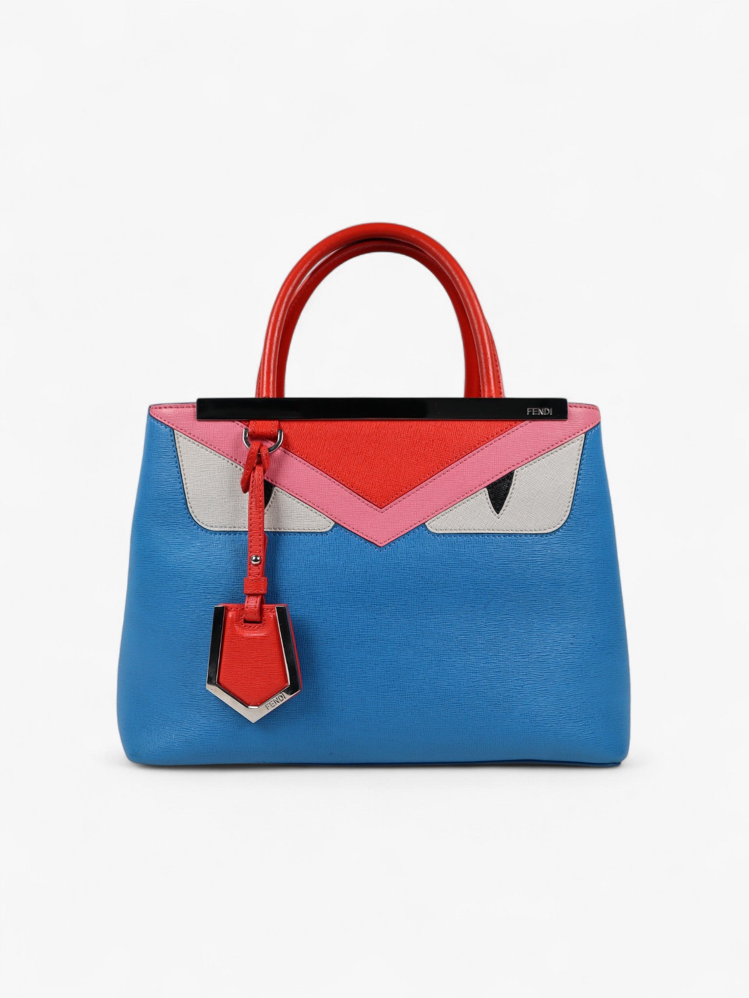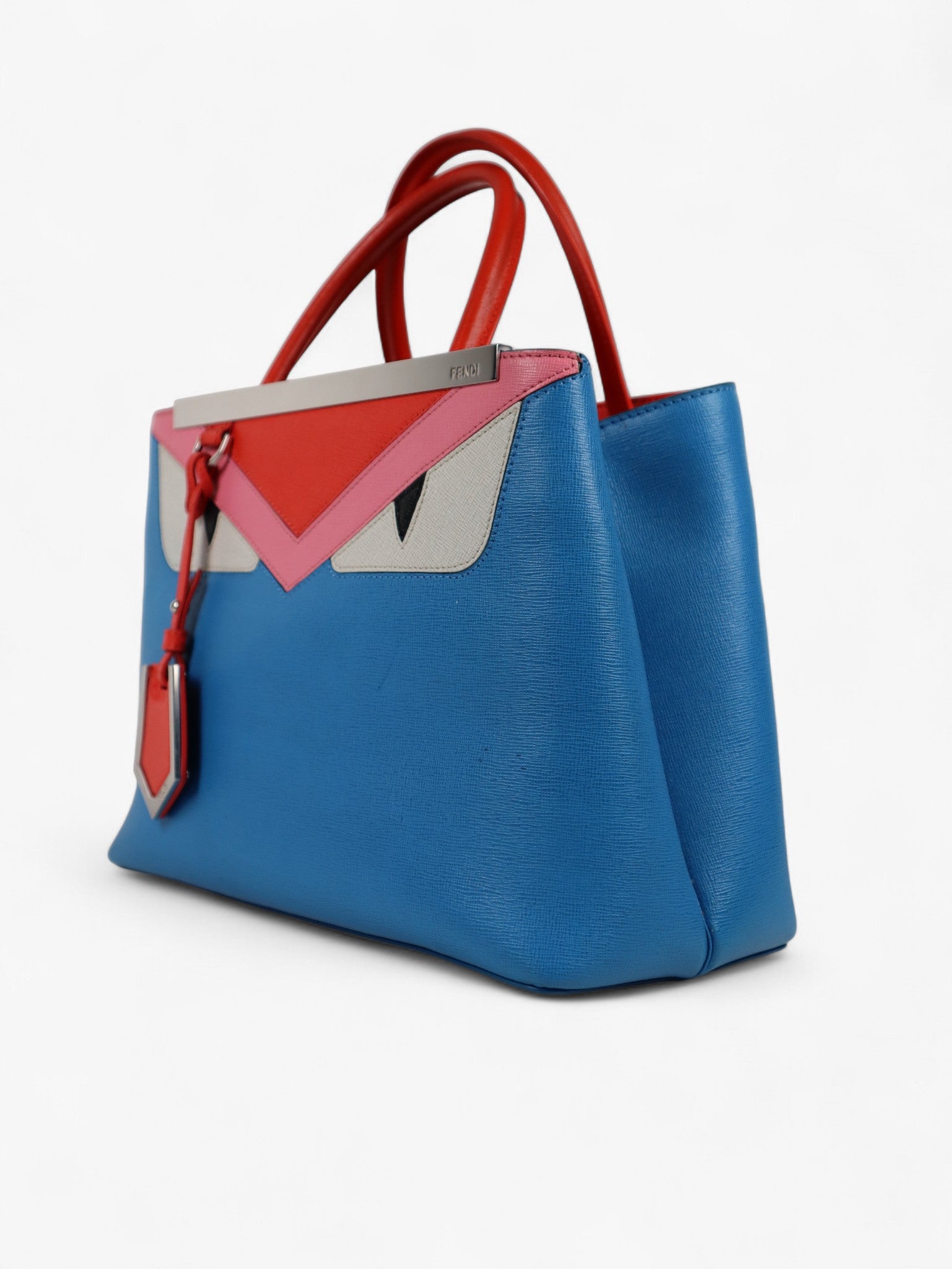 The Fendi Monster Bag 2-Way Tote is a bold and playful expression of Fendi’s iconic design language. Crafted from durable textured leather in a striking blue, red, and cream color palette, it features the signature “Bag Bugs” eye motif that adds attitude and personality to any look. The bag includes both top handles and a detachable shoulder strap, offering versatile styling from day to evening. The spacious interior and structured shape make it a stylish yet practical piece for everyday wear.