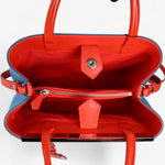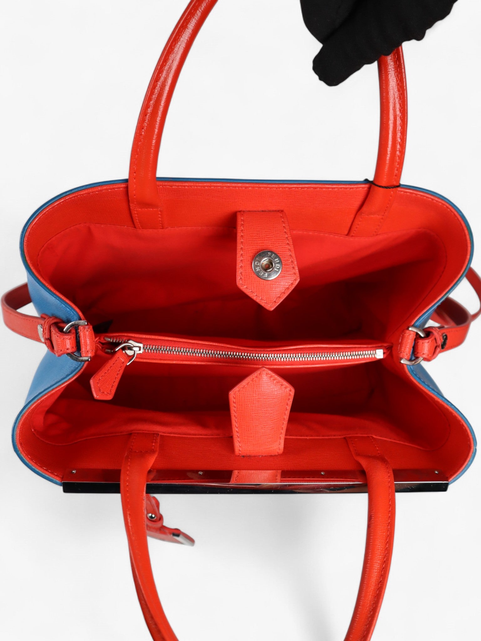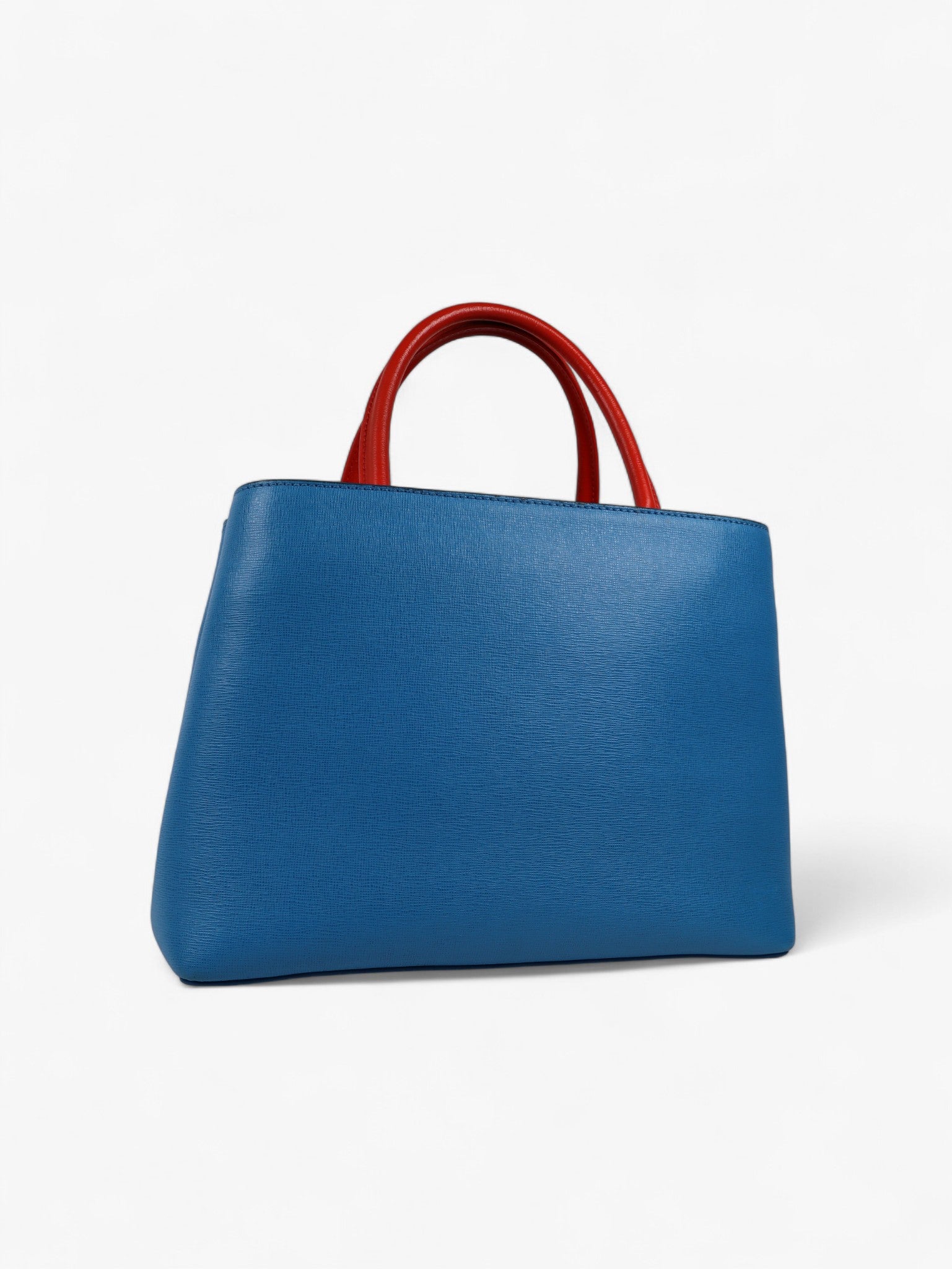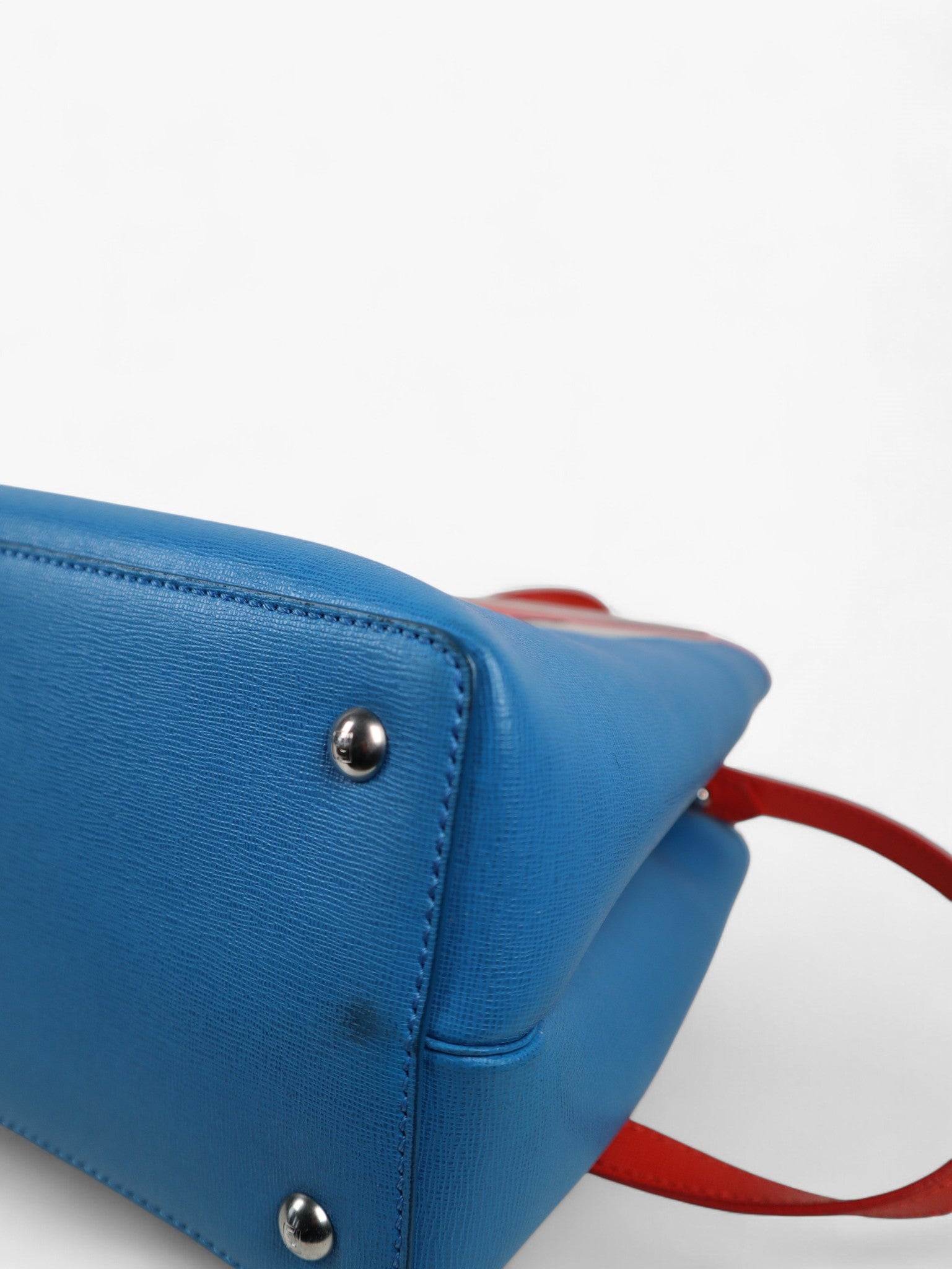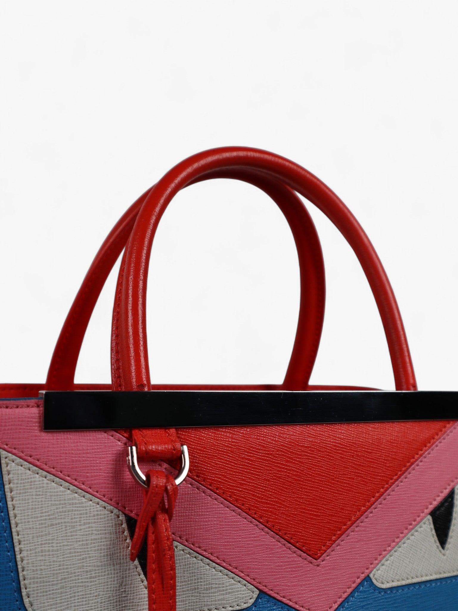 The Fendi Monster Bag 2-Way Tote is a bold and playful expression of Fendi’s iconic design language. Crafted from durable textured leather in a striking blue, red, and cream color palette, it features the signature “Bag Bugs” eye motif that adds attitude and personality to any look. The bag includes both top handles and a detachable shoulder strap, offering versatile styling from day to evening. The spacious interior and structured shape make it a stylish yet practical piece for everyday wear.