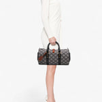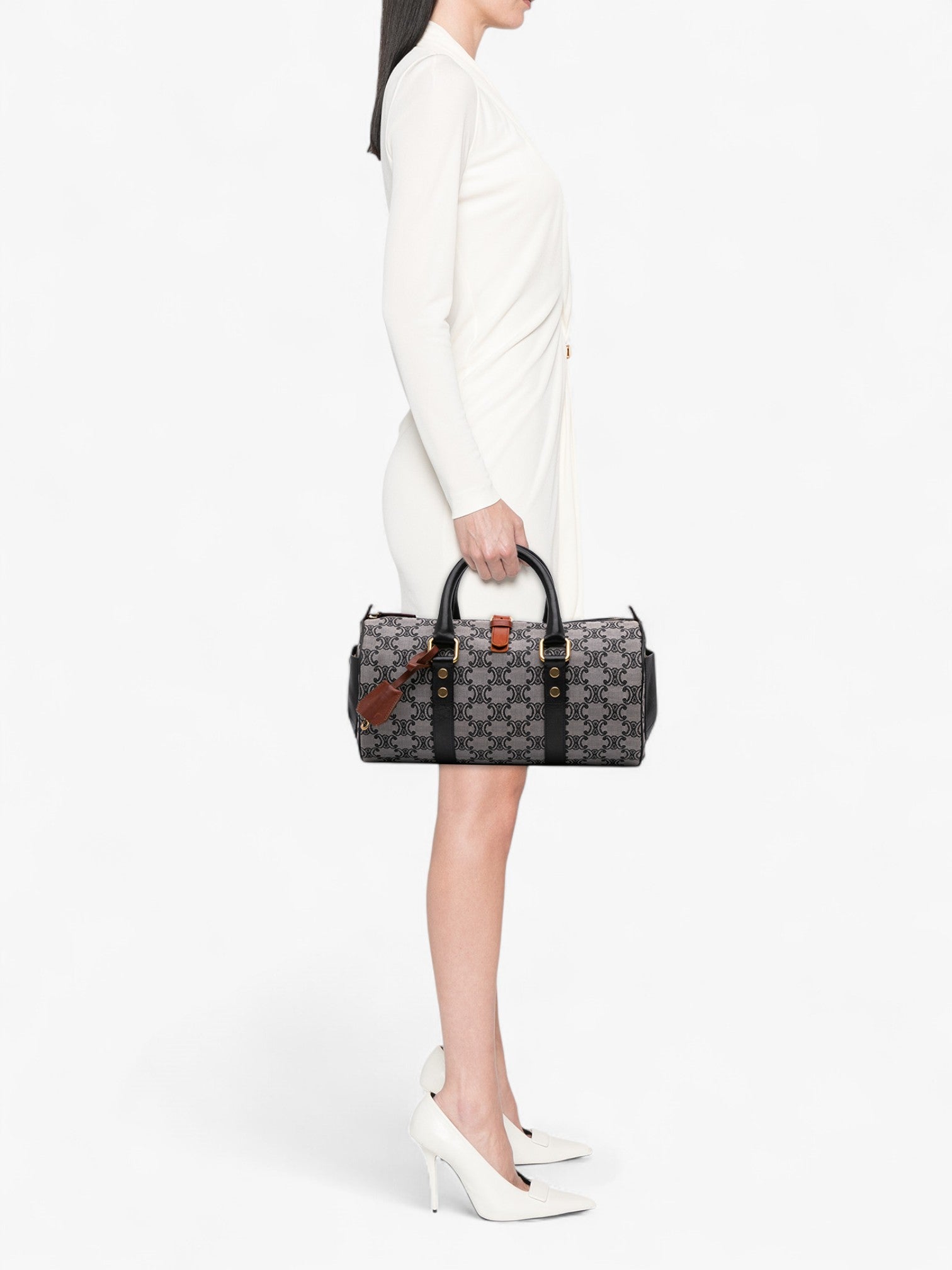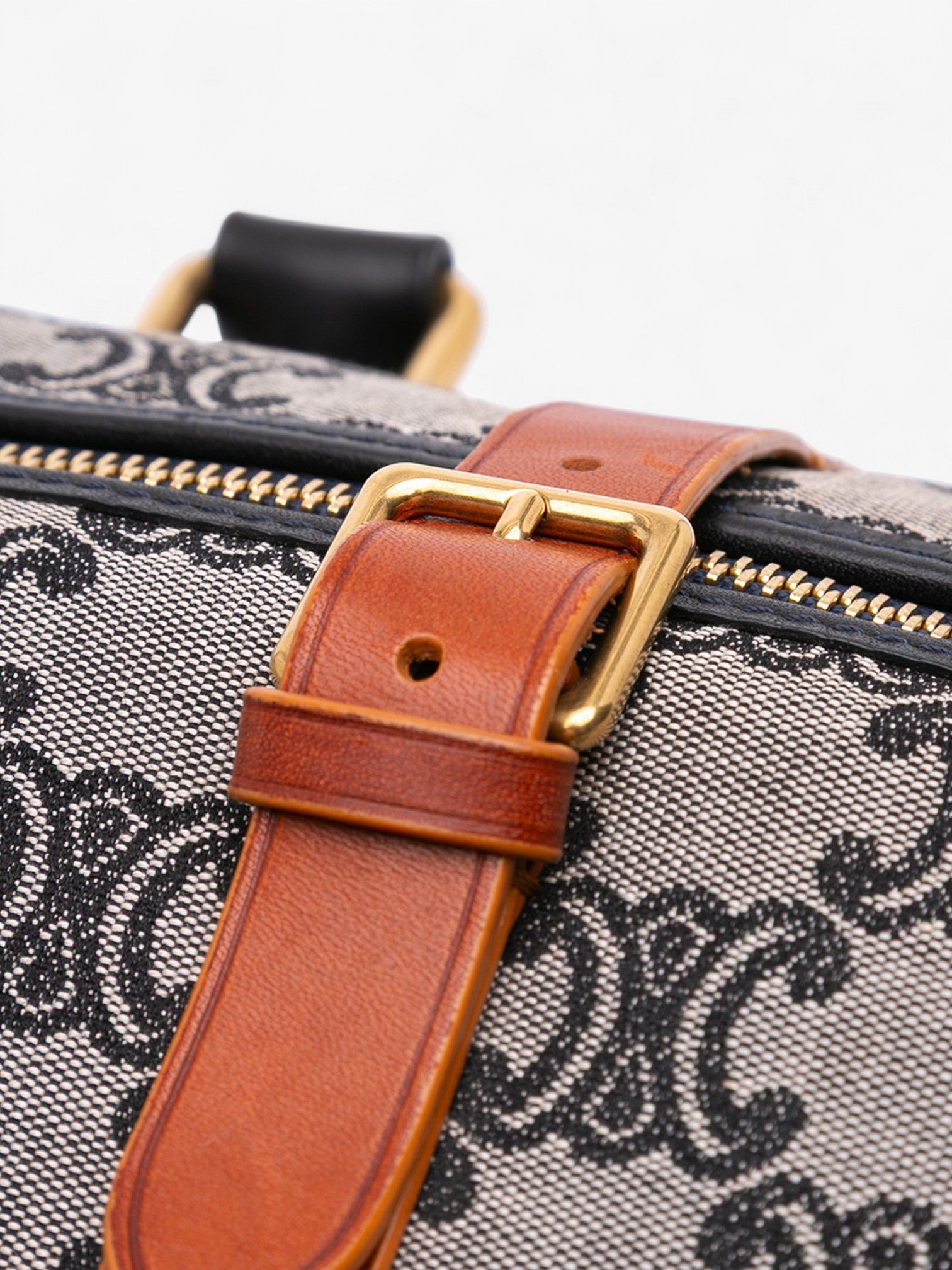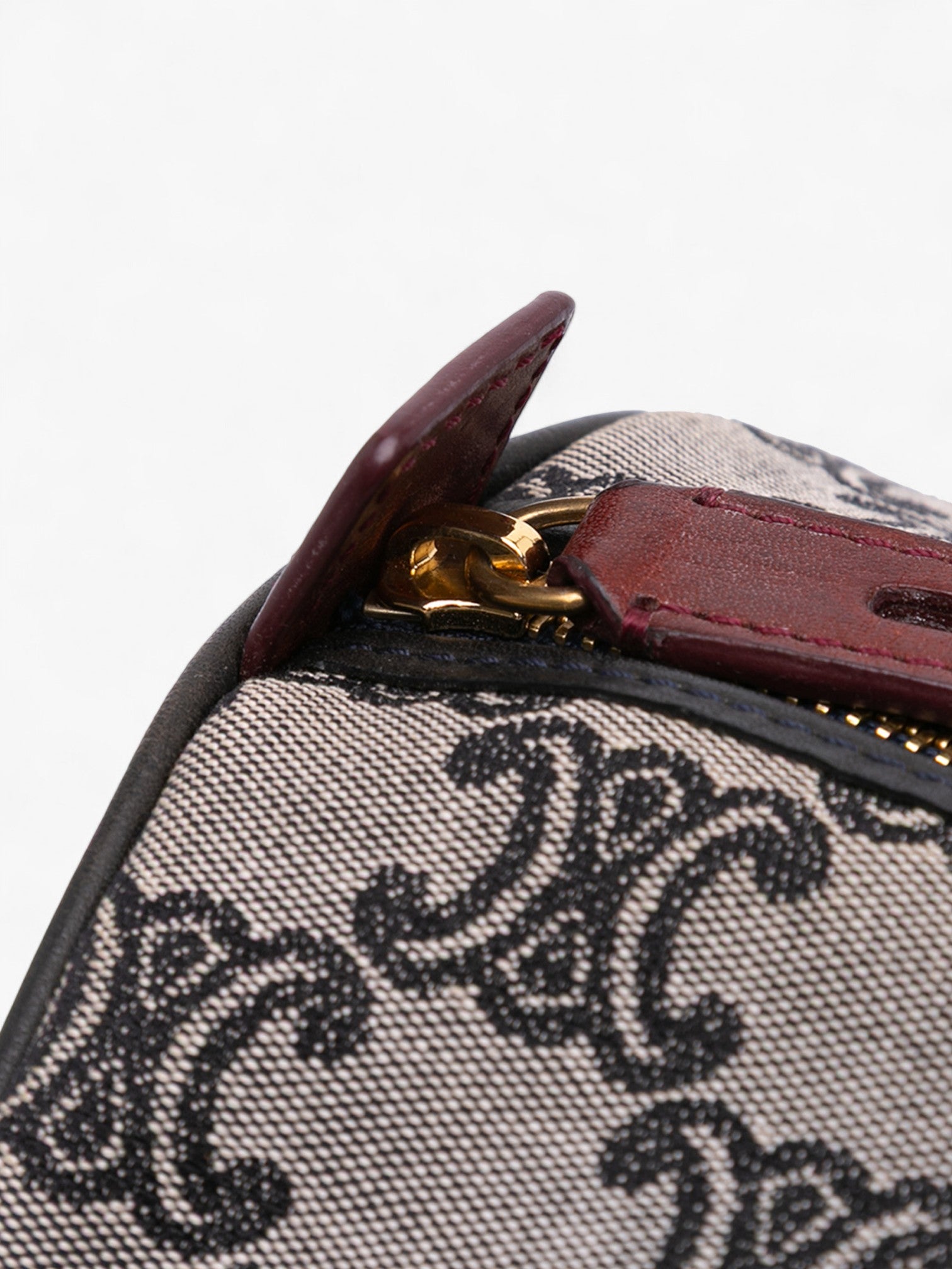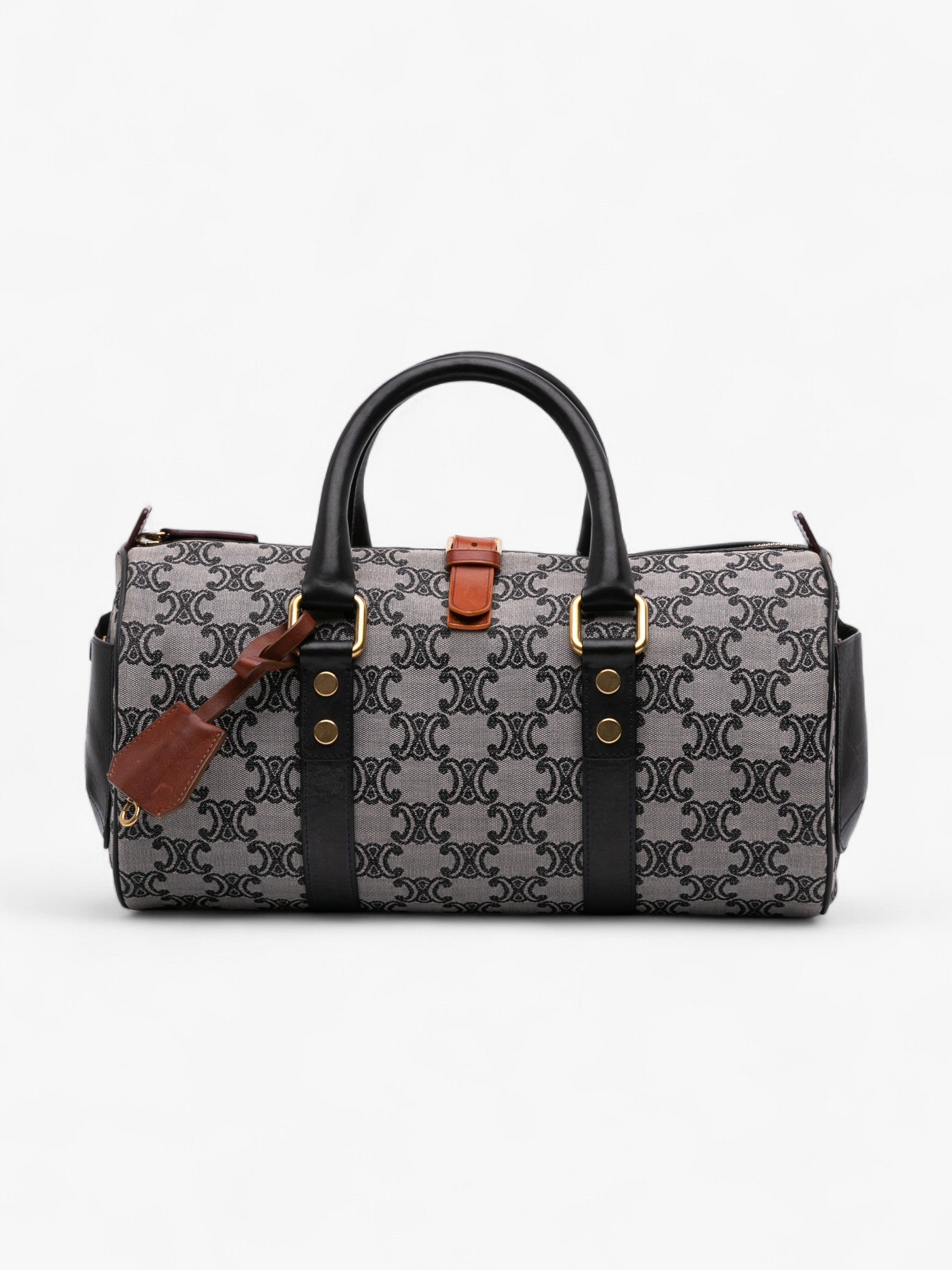 Чантата Celine Macadam Canvas Boston Bag в сив цвят съчетава ретро излъчване и вечна елегантност, характерни за марката Celine. Изработена от емблематичния плат Macadam с кожени елементи, тя се отличава със структурирана форма, кожени дръжки и горно закопчаване с цип. Страничните джобове добавят практичност, а просторният интериор я прави идеален избор за ежедневие или пътуване.