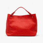 The Bottega Veneta Intrecciato Garda Tote showcases the house’s signature woven nappa leather in a striking red finish. Designed with flat leather handles, an open top, and a spacious interior with zip and slip pockets, this tote perfectly balances craftsmanship with everyday practicality.