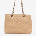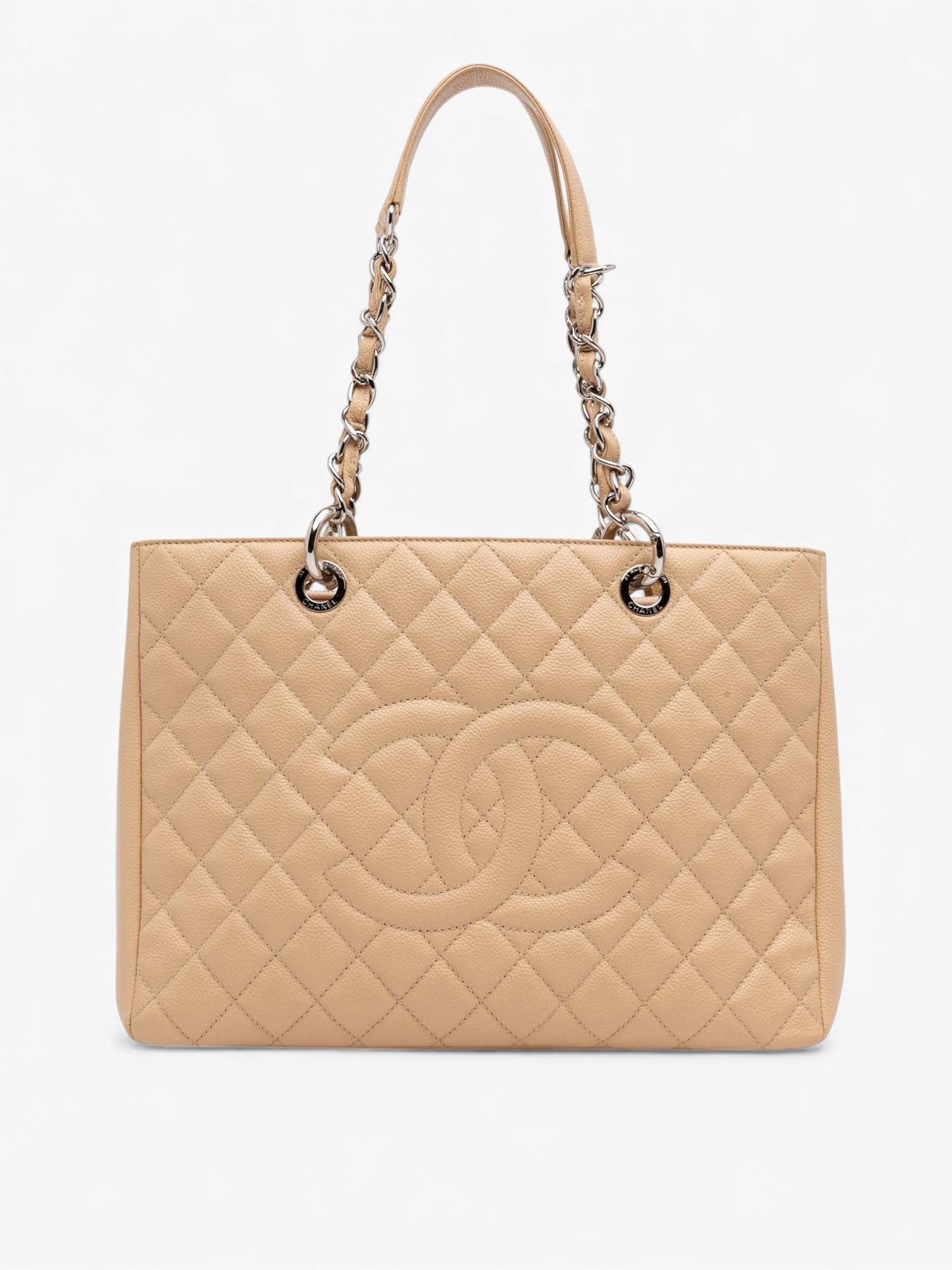 The Caviar Grand Shopping Tote from Chanel is a luxurious accessory that combines practicality with high-end fashion. Crafted from exquisite quilted caviar leather, this tote features elegantly woven leather chain shoulder straps and an open top design for easy access. It boasts an exterior slip pocket for quick storage and multiple interior zip and slip pockets to keep your essentials organized. The rich brown color adds a touch of sophistication, making it an ideal companion for both casual outings and upscale events.
