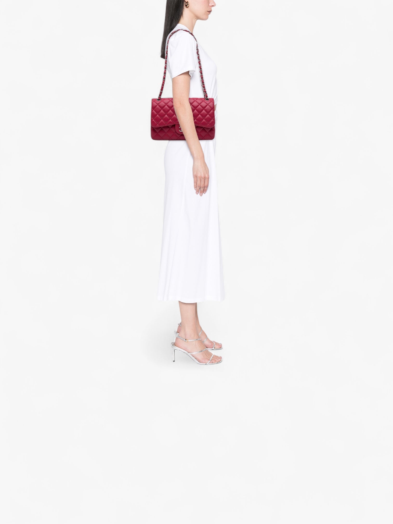 The Chanel Jumbo Classic Lambskin Double Flap is one of the House’s most coveted icons, crafted in luxurious lambskin leather with the signature diamond quilting. It features leather-woven chain link straps, double front flaps with the iconic CC turn-lock closure, an exterior back slip pocket, and a well-organized interior with zip and slip pockets. Spacious yet elegant, this timeless piece embodies classic Chanel sophistication.