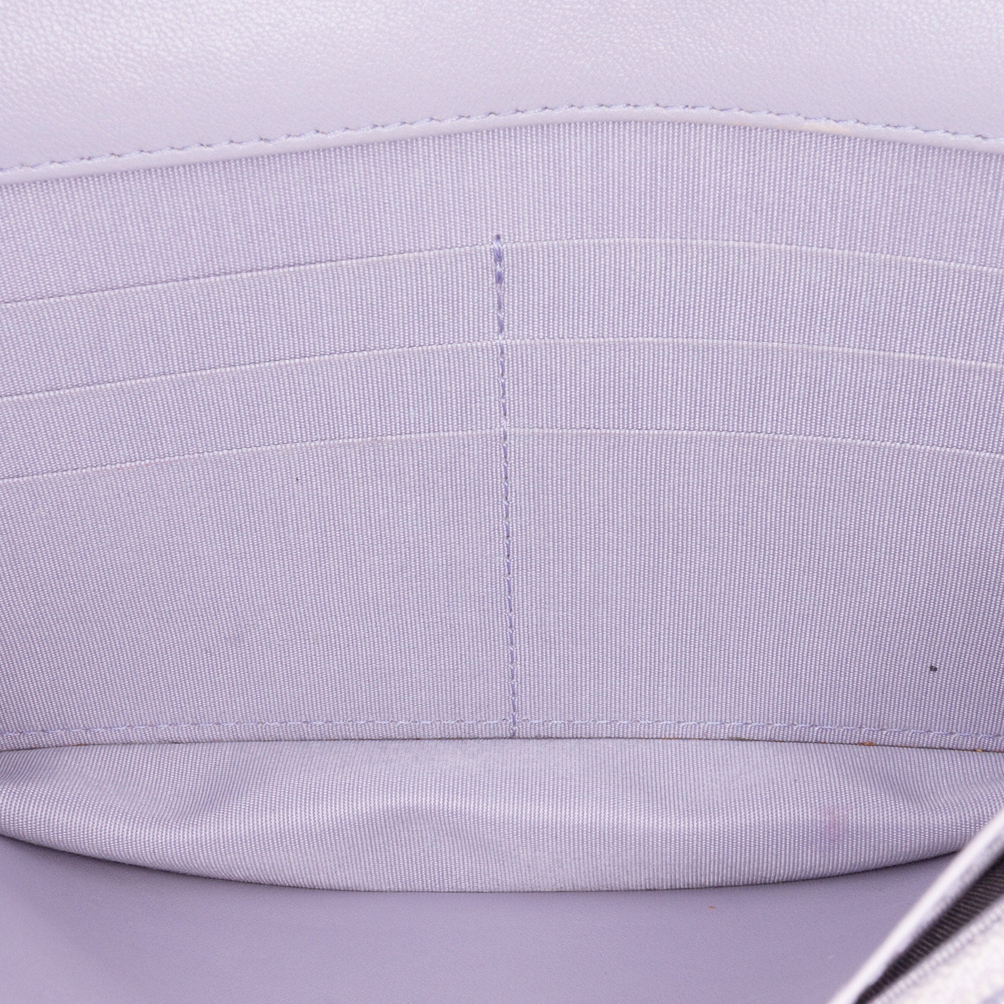 The Chanel 19 Wallet on Chain brings contemporary charm to the Maison’s iconic quilting, crafted from supple lambskin leather in a delicate purple tone. Designed with a chain-link handle, leather-woven chain strap with leather guard, and the signature CC emblem, it combines luxury with practicality in a compact, versatile piece. Its flap with magnetic closure and organized interior slip and zip pockets make it a sophisticated day-to-night companion.