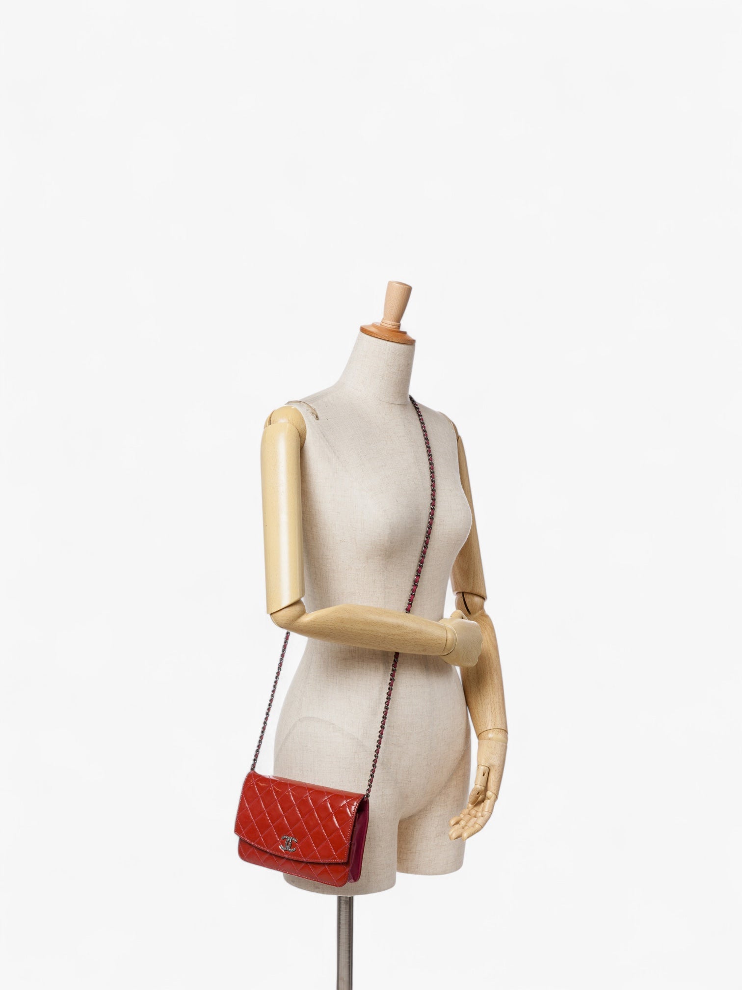 Model: Quilted Patent Brilliant Wallet On Chain