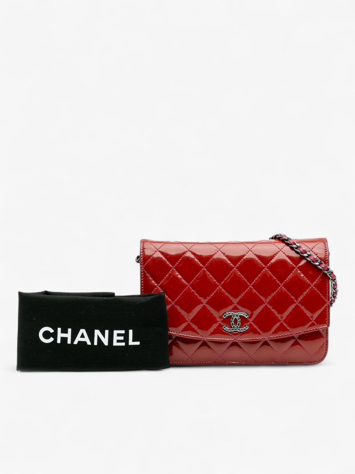 Chanel Quilted Patent Brilliant Wallet On Chain