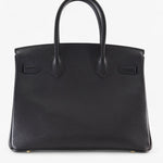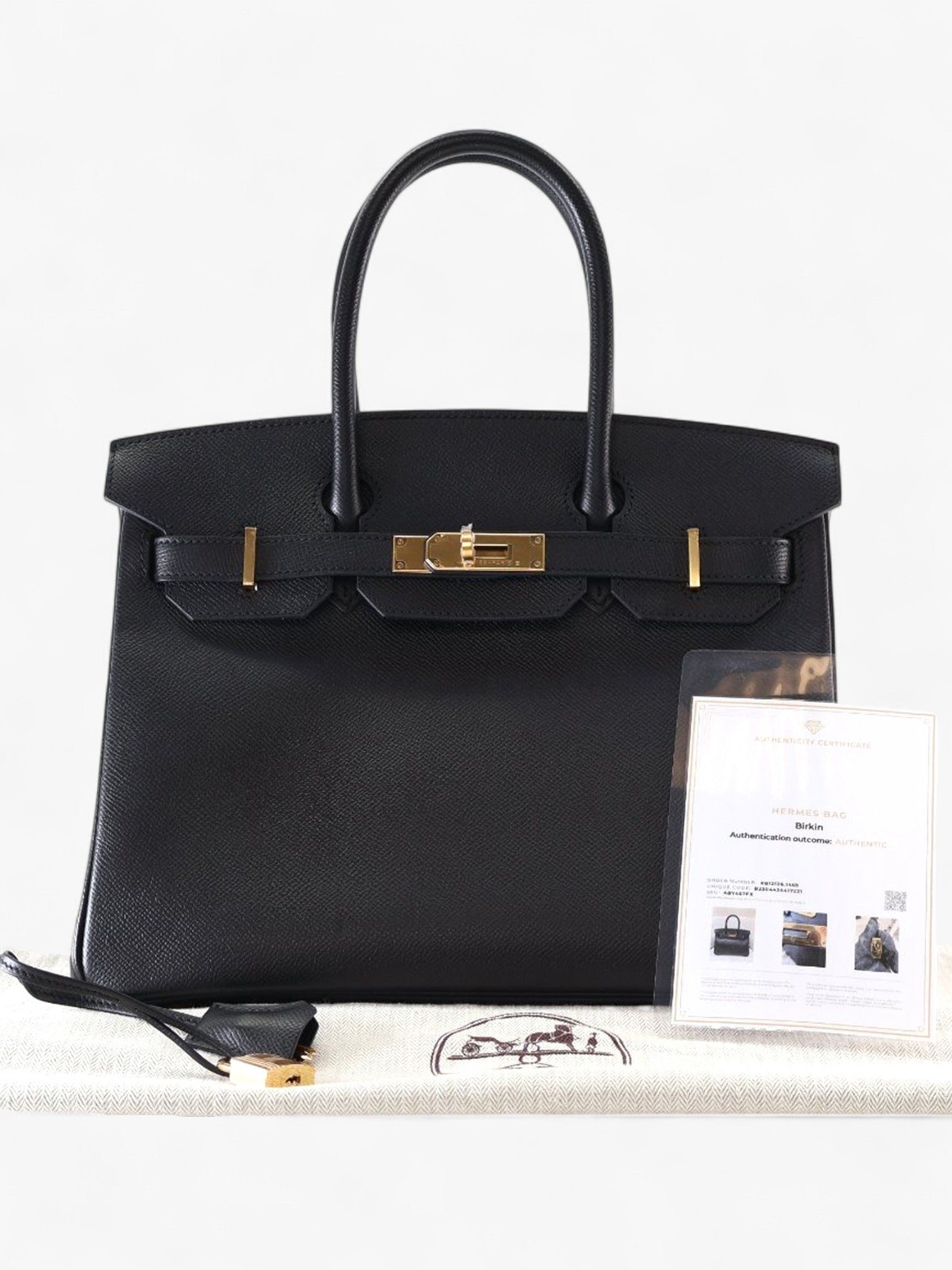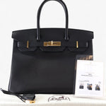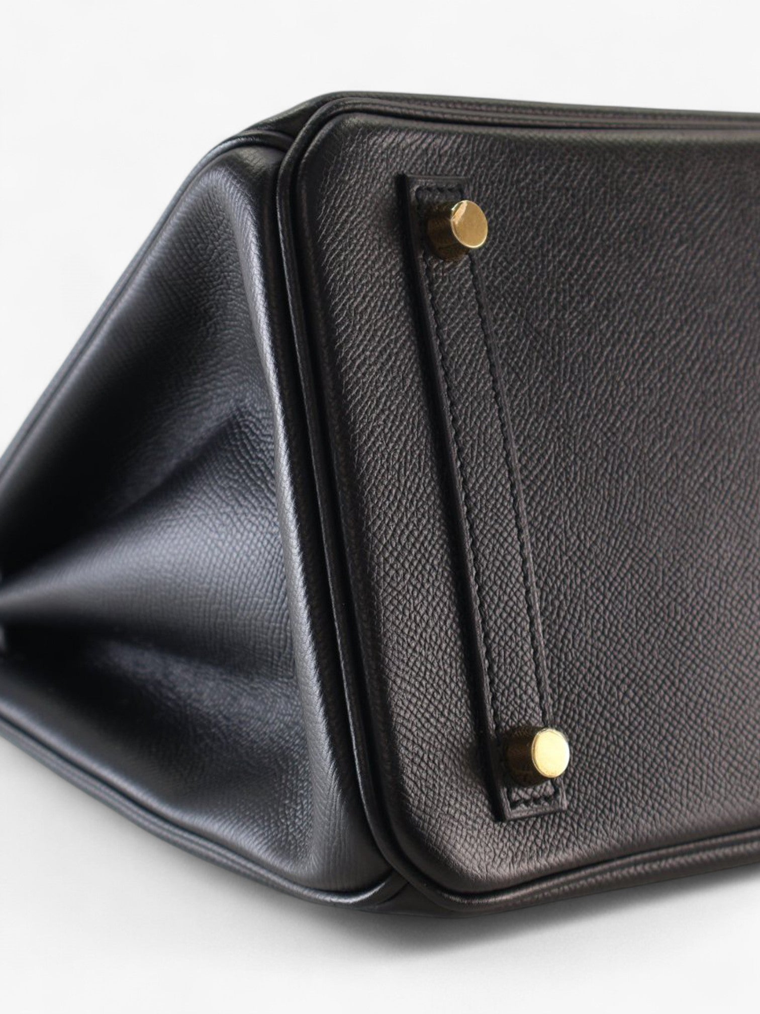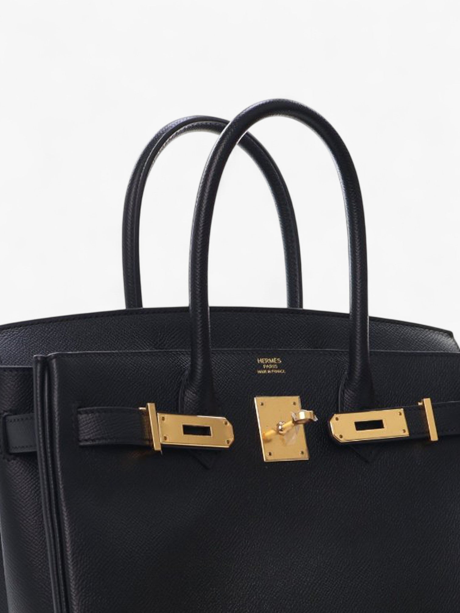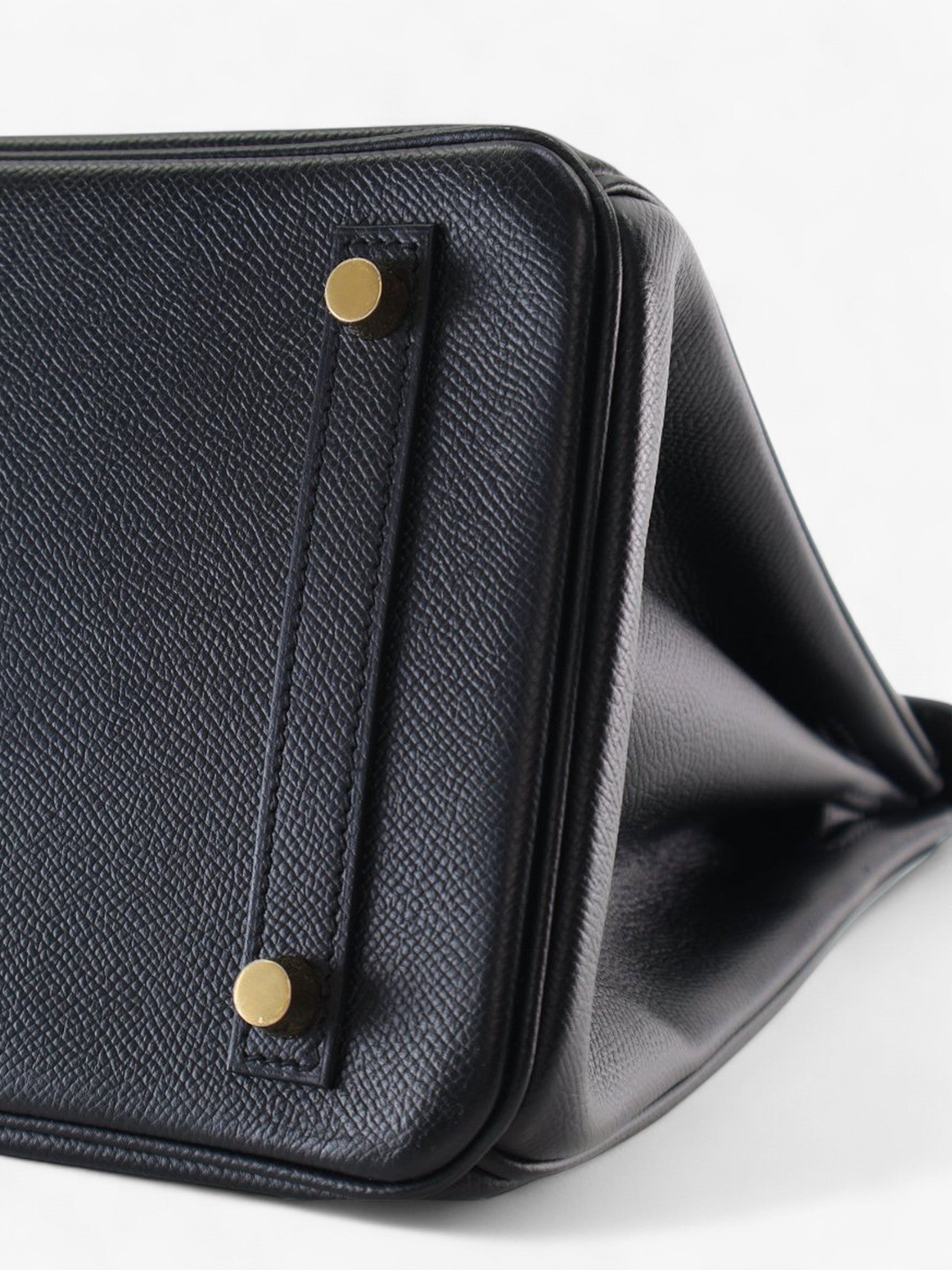 The Hermès Birkin 30 Retourne in Noir Epsom leather is a timeless masterpiece of luxury and refinement. Crafted from structured yet lightweight Epsom calf leather, it features a softly rounded Retourne silhouette that exudes understated sophistication. Designed with rolled leather handles, signature straps with a polished metal turn-lock closure, and an interior equipped with both zip and slip pockets, this Birkin perfectly balances elegance and everyday practicality.