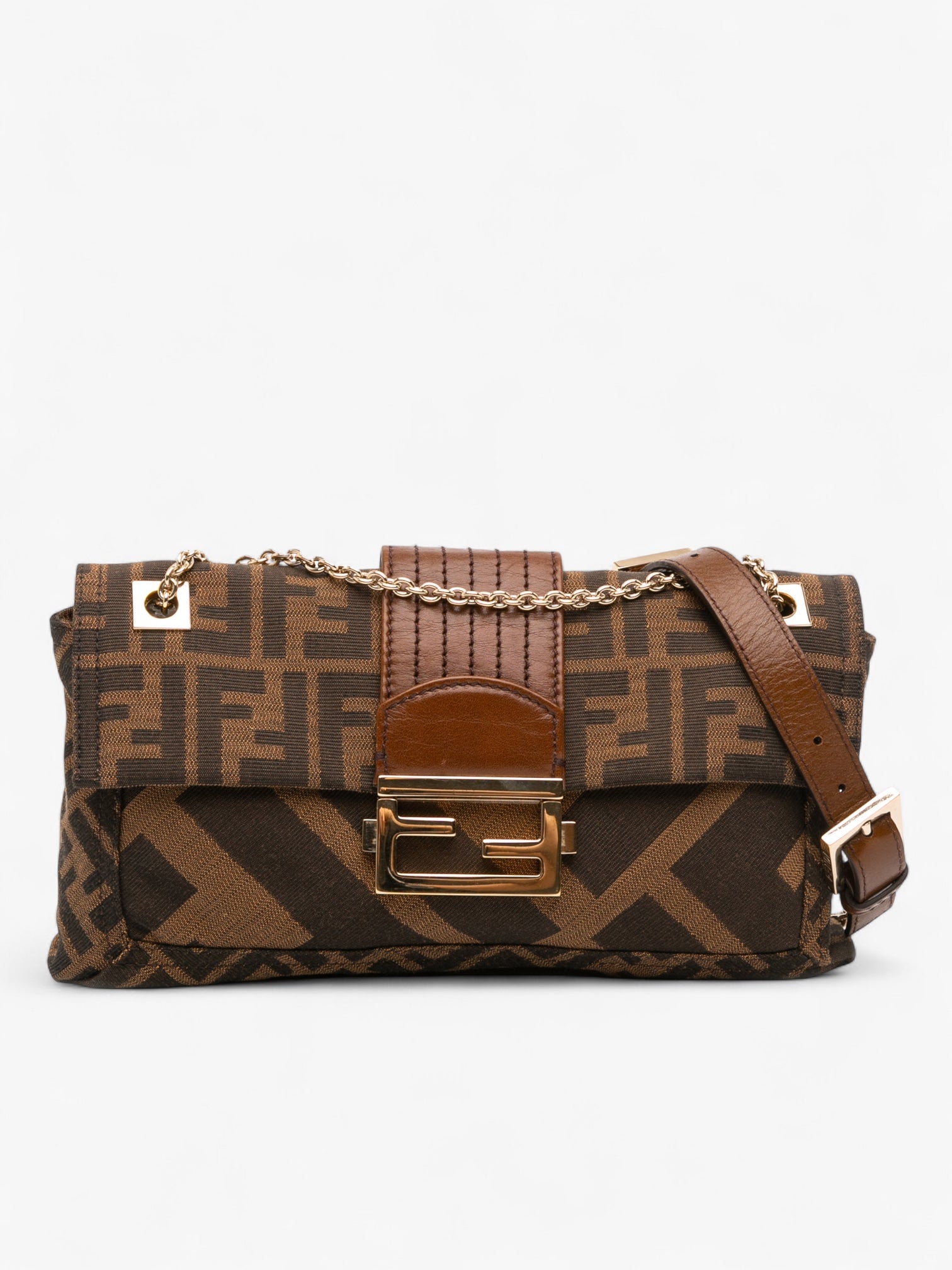 Fendi Zucca Canvas and Leather Chain Maxi Baguette