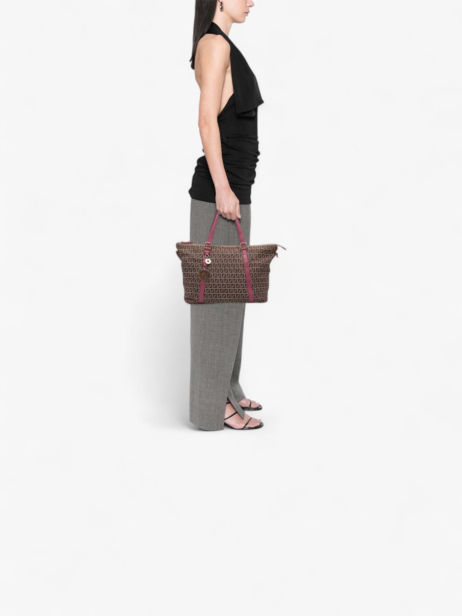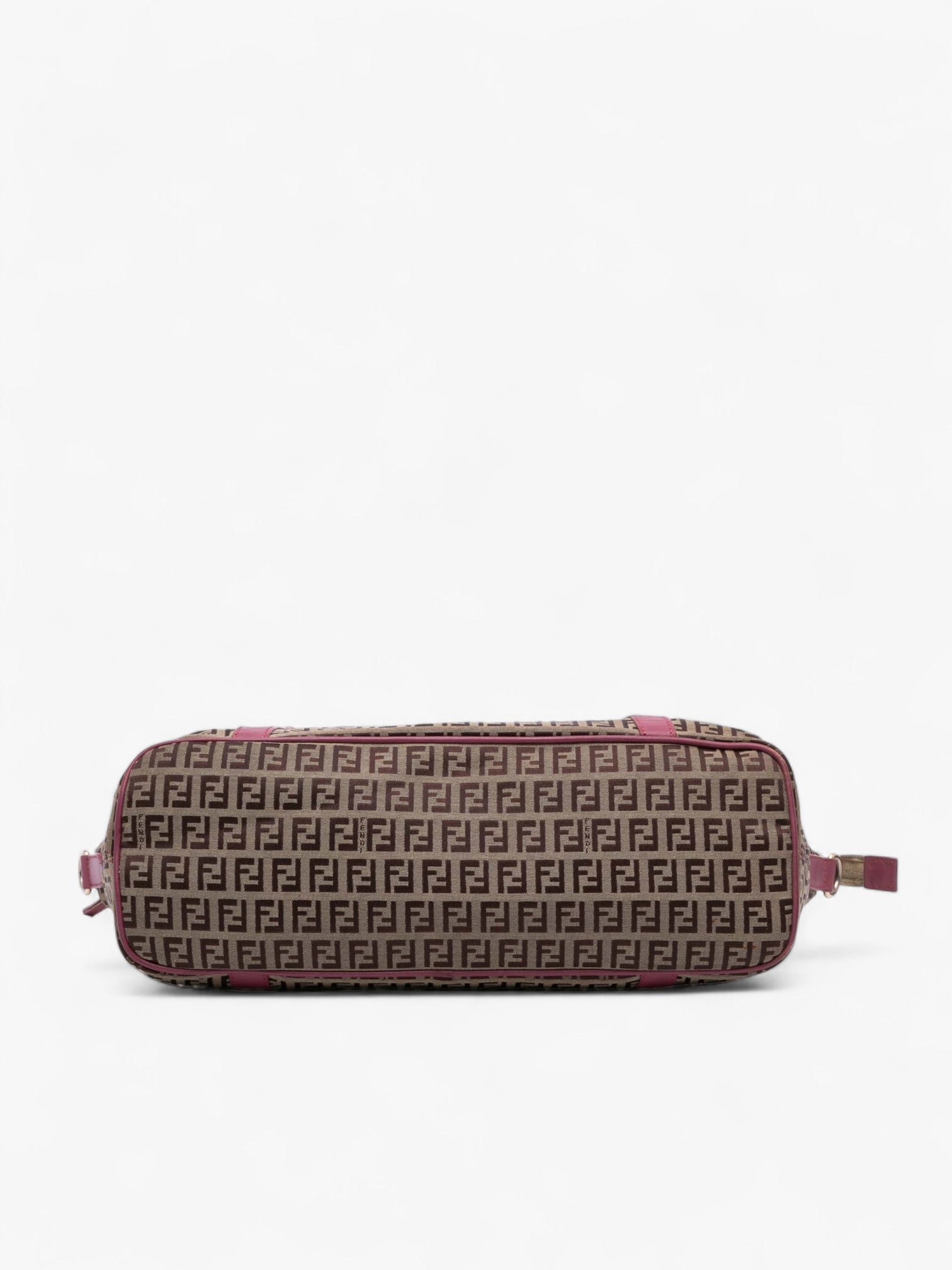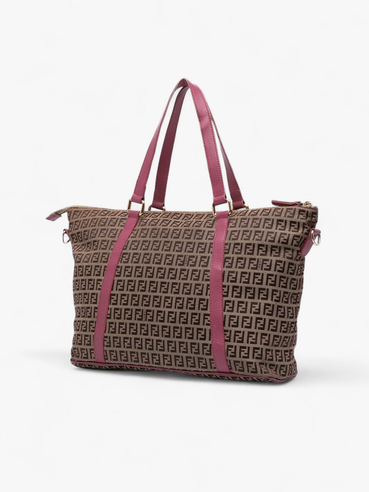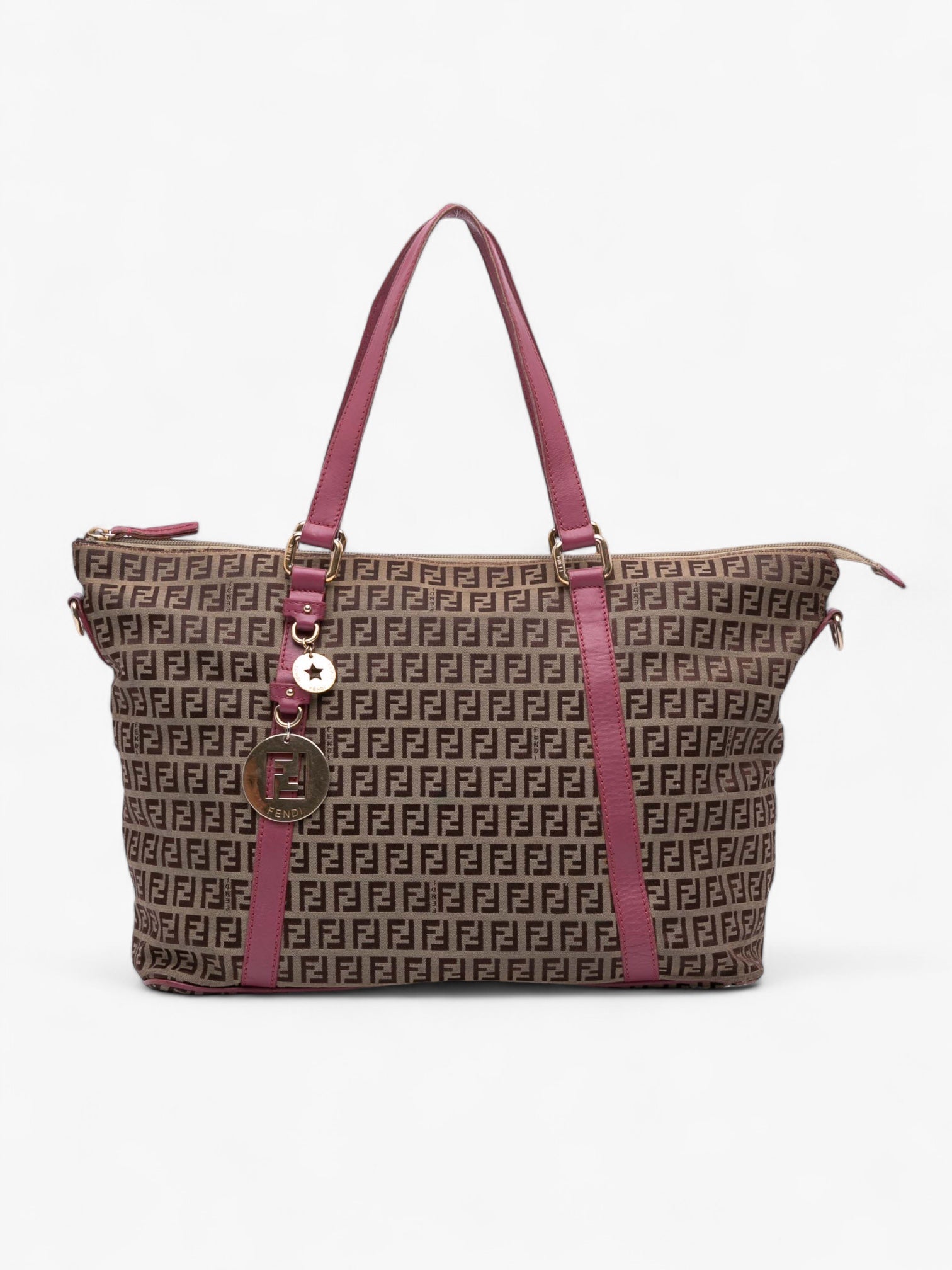 The Fendi Zucchino Canvas Superstar Tote features the iconic Zucchino canvas body with leather trim, flat leather handles, a top zip closure, and an interior slip pocket. Spacious yet lightweight, this tote is ideal for everyday use while showcasing Fendi’s signature monogram style.