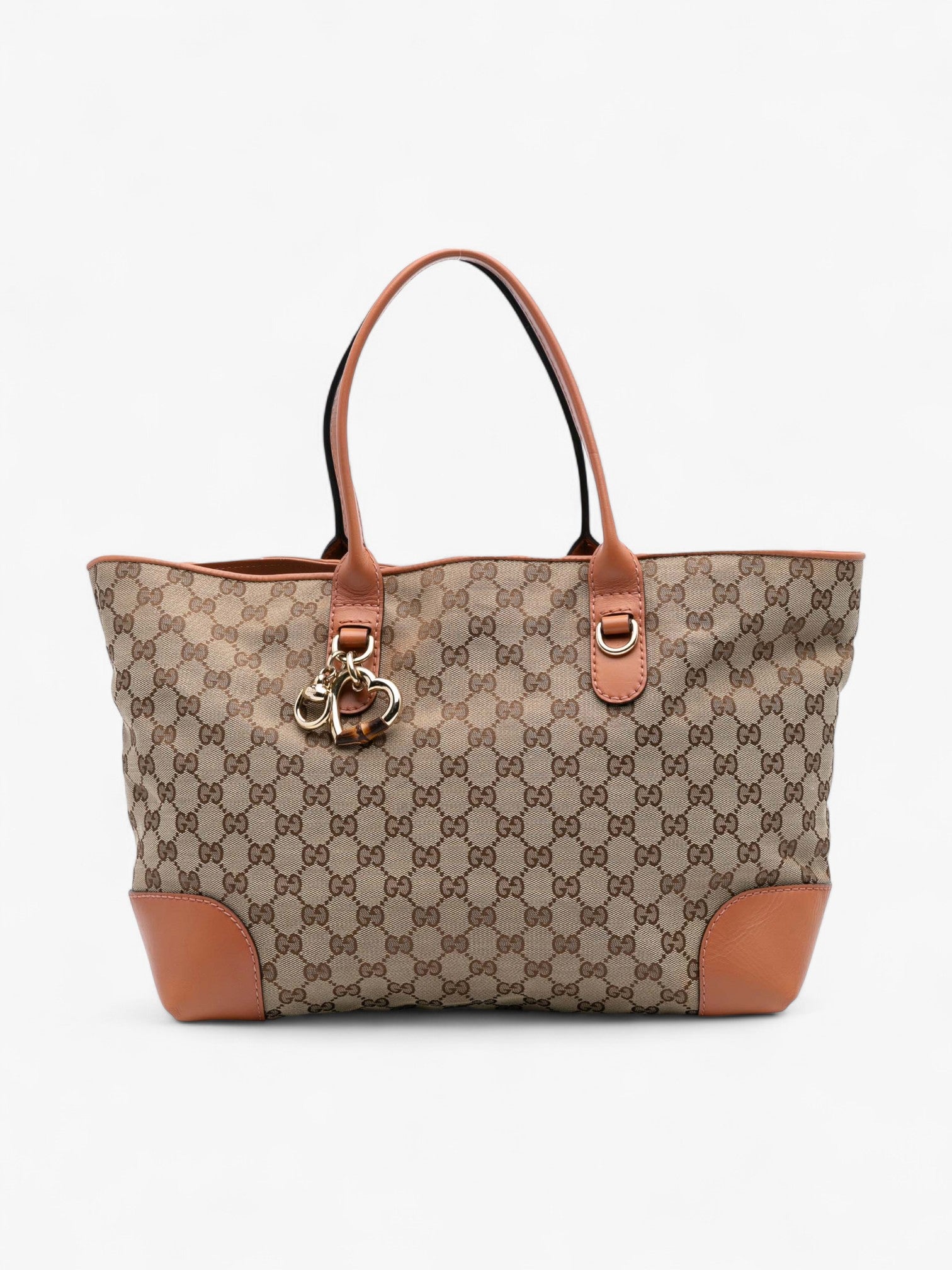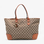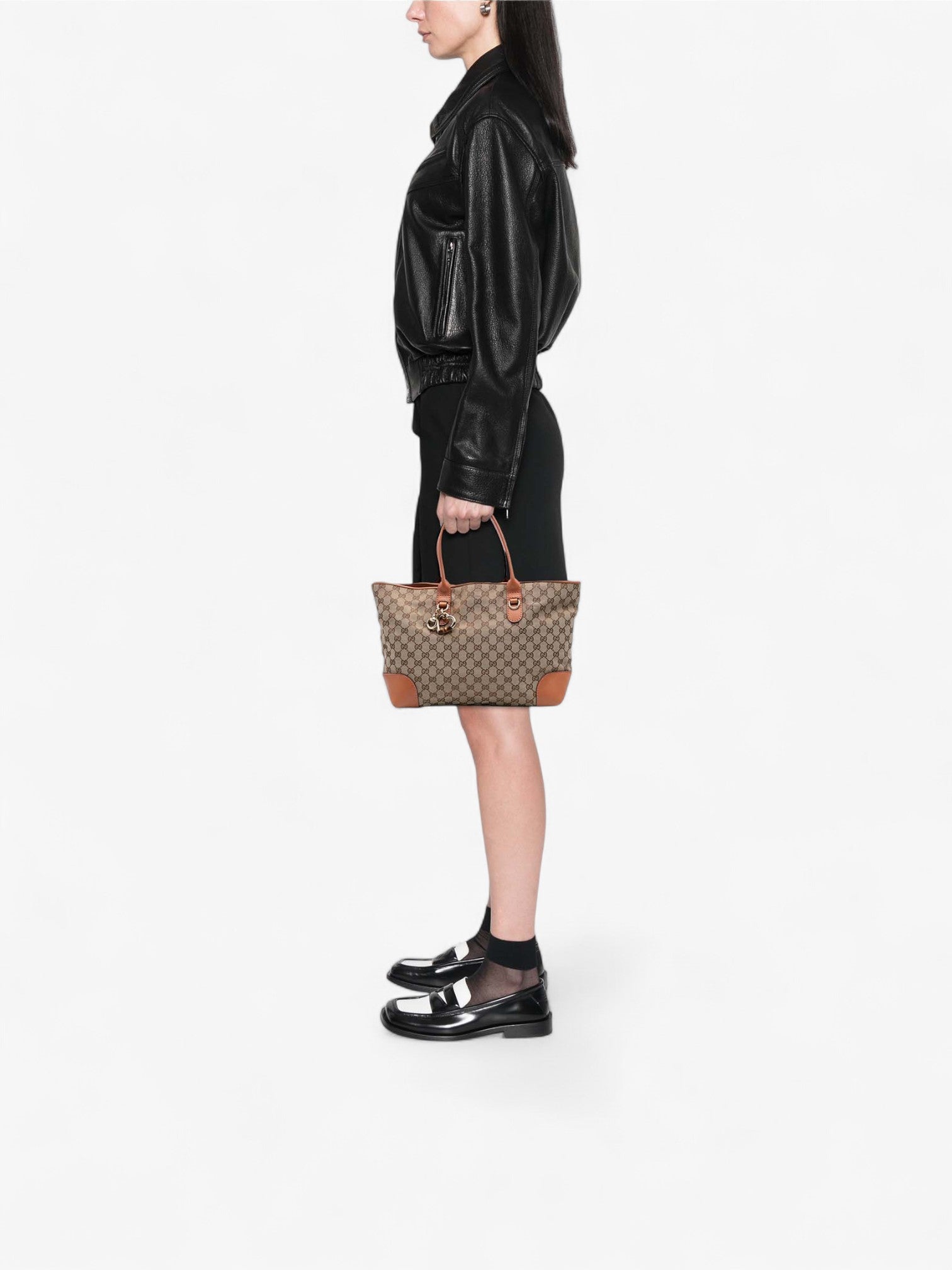 The Gucci GG Canvas Heart Bit Tote is a feminine and iconic piece that beautifully blends heritage with playful elegance. Crafted from the brand’s signature GG canvas with leather trim, it features flat leather shoulder straps, an open top for easy access, and a charming metal-and-bamboo heart bit accent that adds a distinctive Gucci touch. Spacious and lightweight, it’s ideal for everyday sophistication and effortless style.