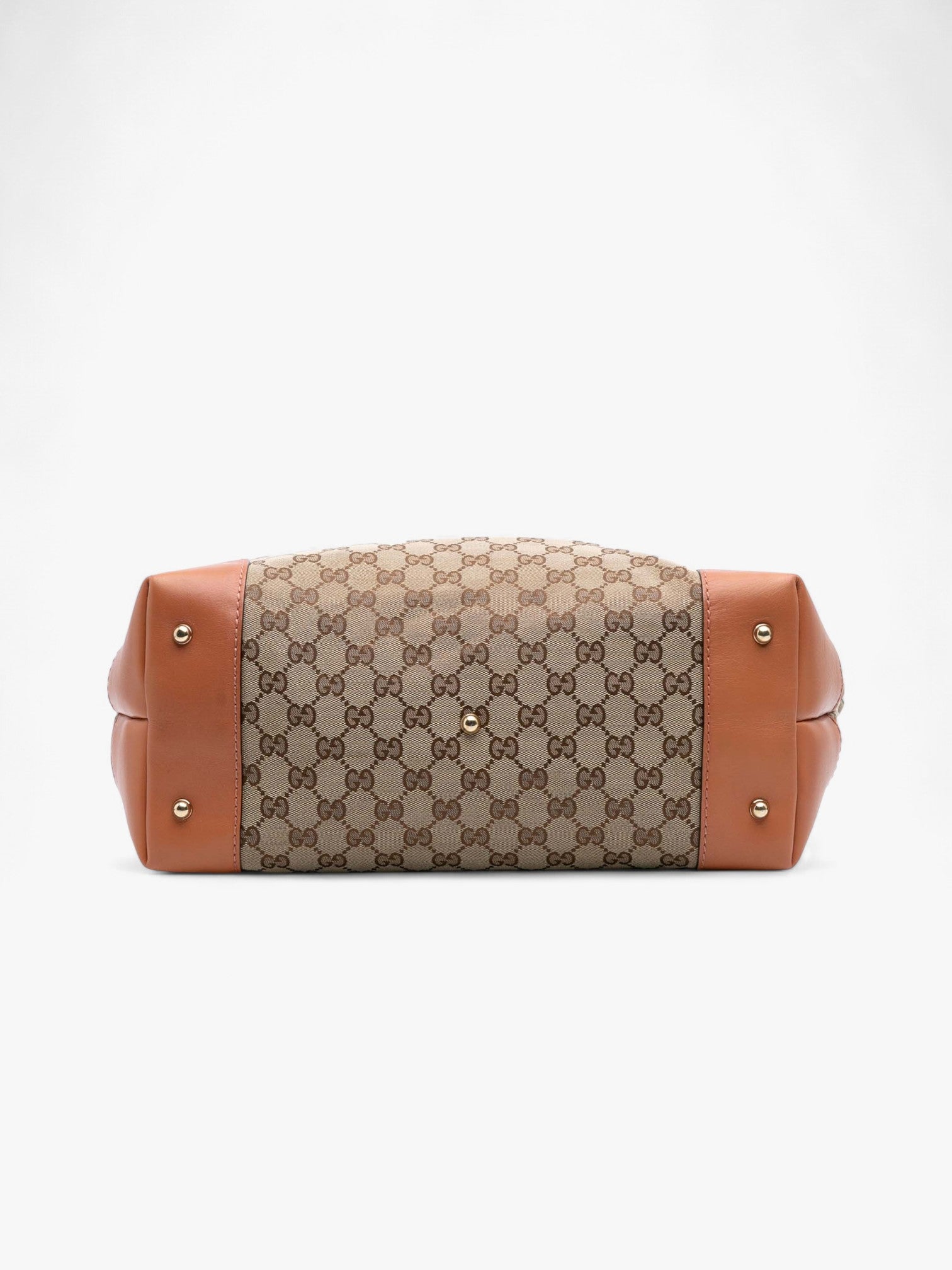 Condition: Light wear on handles, corners, and bottom edges with minor creasing and gentle scratches. Small transfer marks and interior signs of use consistent with normal wear. Overall, the bag remains stylish and full of Gucci charm.