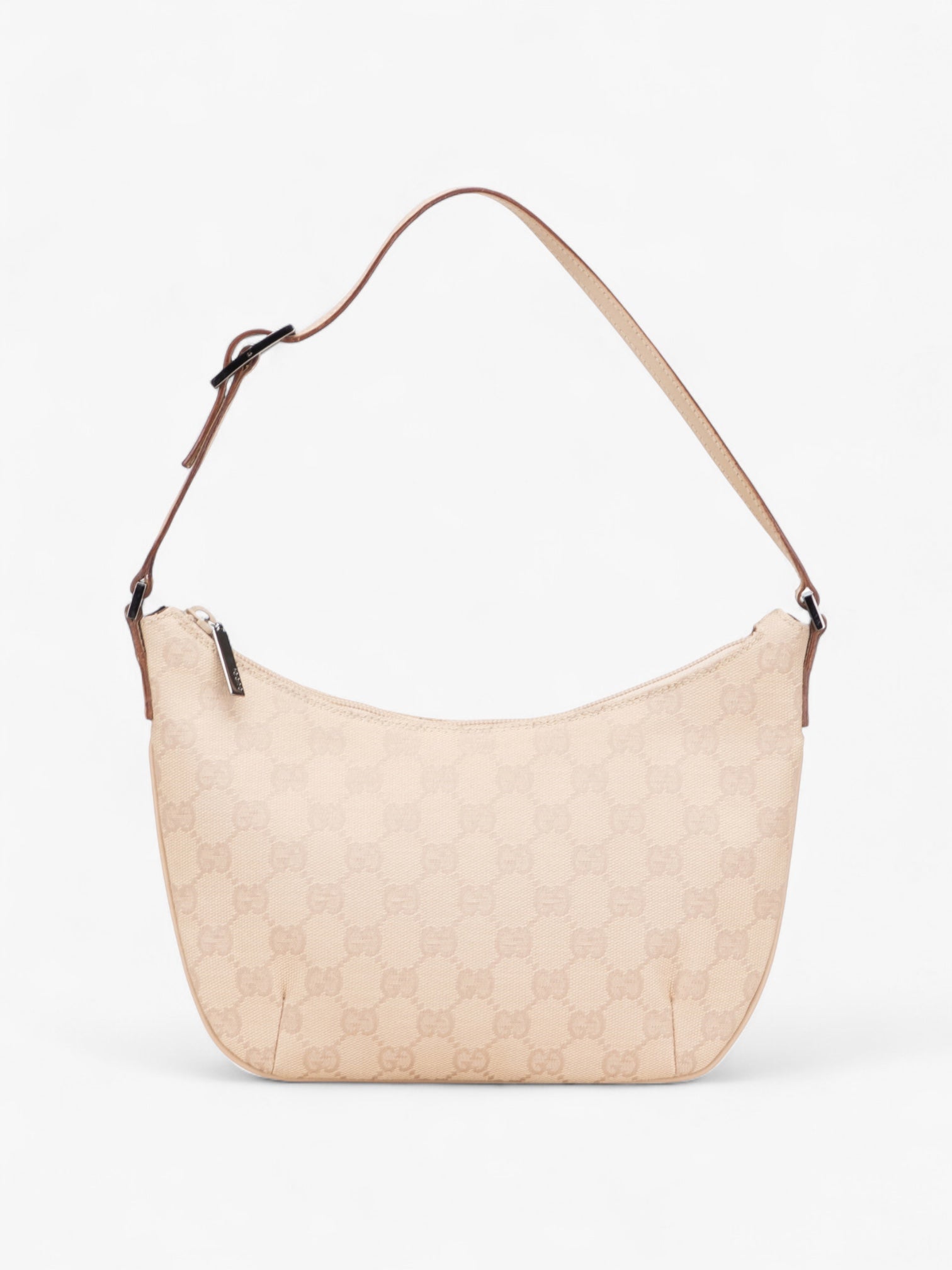 The Gucci GG Canvas Shoulder Bag is a timeless essential, crafted in the house’s signature GG canvas with smooth leather accents. Featuring a slim silhouette, flat leather strap, and secure top zip closure, it’s a versatile piece for everyday wear.
