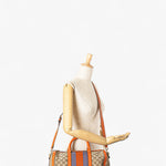 A classic piece from Gucci, the GG Canvas Web Joy Boston Bag showcases the house’s signature monogram canvas paired with leather trim and bold web detailing. Designed with rolled leather handles, a detachable strap, and a top zip closure, this satchel balances practicality with iconic style. Spacious and versatile, it is a timeless choice for both travel and everyday use.