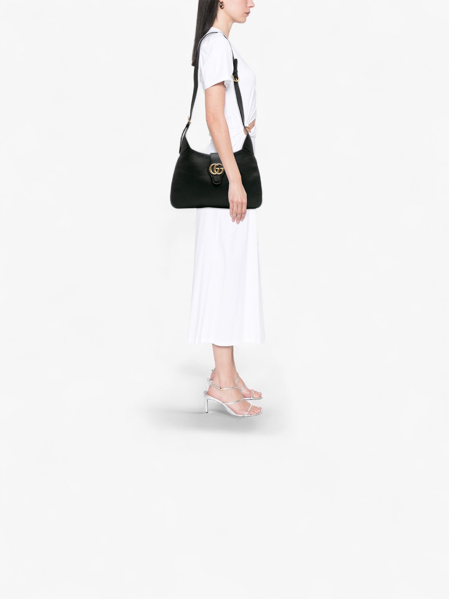 The Gucci Medium Aphrodite Crossbody is a refined and versatile piece designed for modern elegance. Crafted from supple calfskin leather in timeless black, it features a flat leather strap, an extender strap for adjustable wear, an open top with magnetic snap closure, and an interior zip pocket for functionality. A sleek and sophisticated bag, perfect for elevating both day and evening looks.