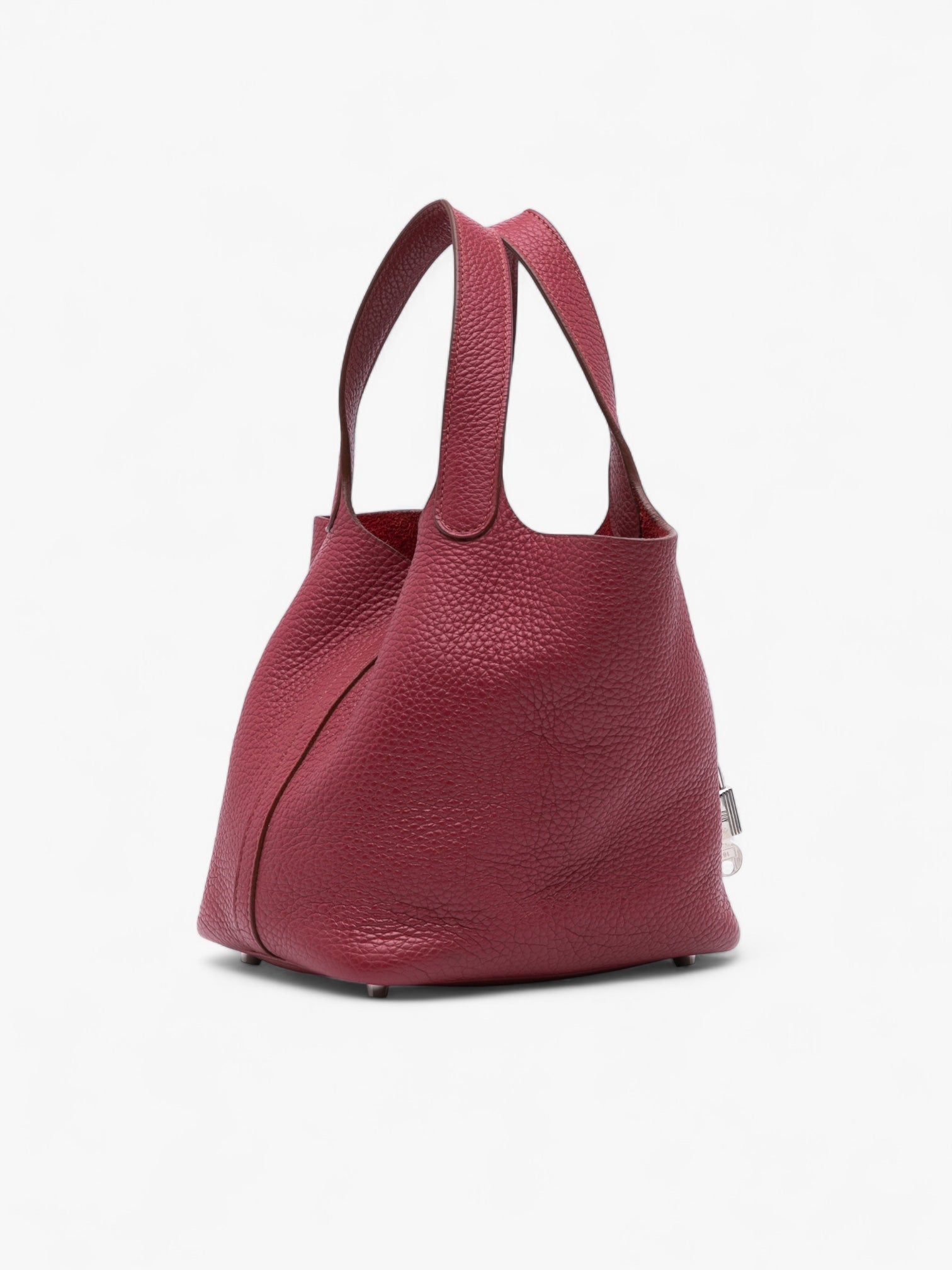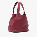 The Hermès Picotin Lock 18 in Rubis Clemence leather is a chic and timeless piece. It features flat leather handles, an open top with a pull-through strap and lock closure, and the house’s signature craftsmanship. Perfect for everyday sophistication.