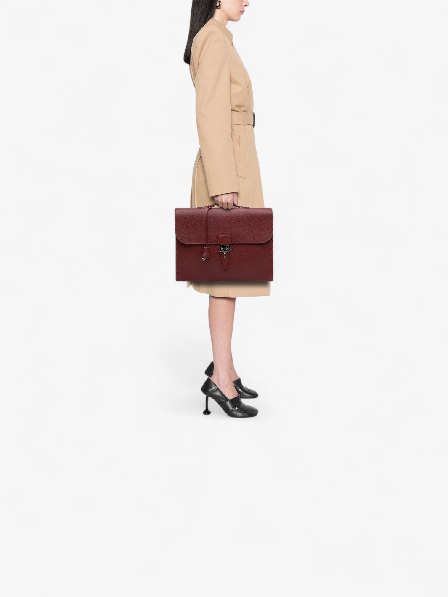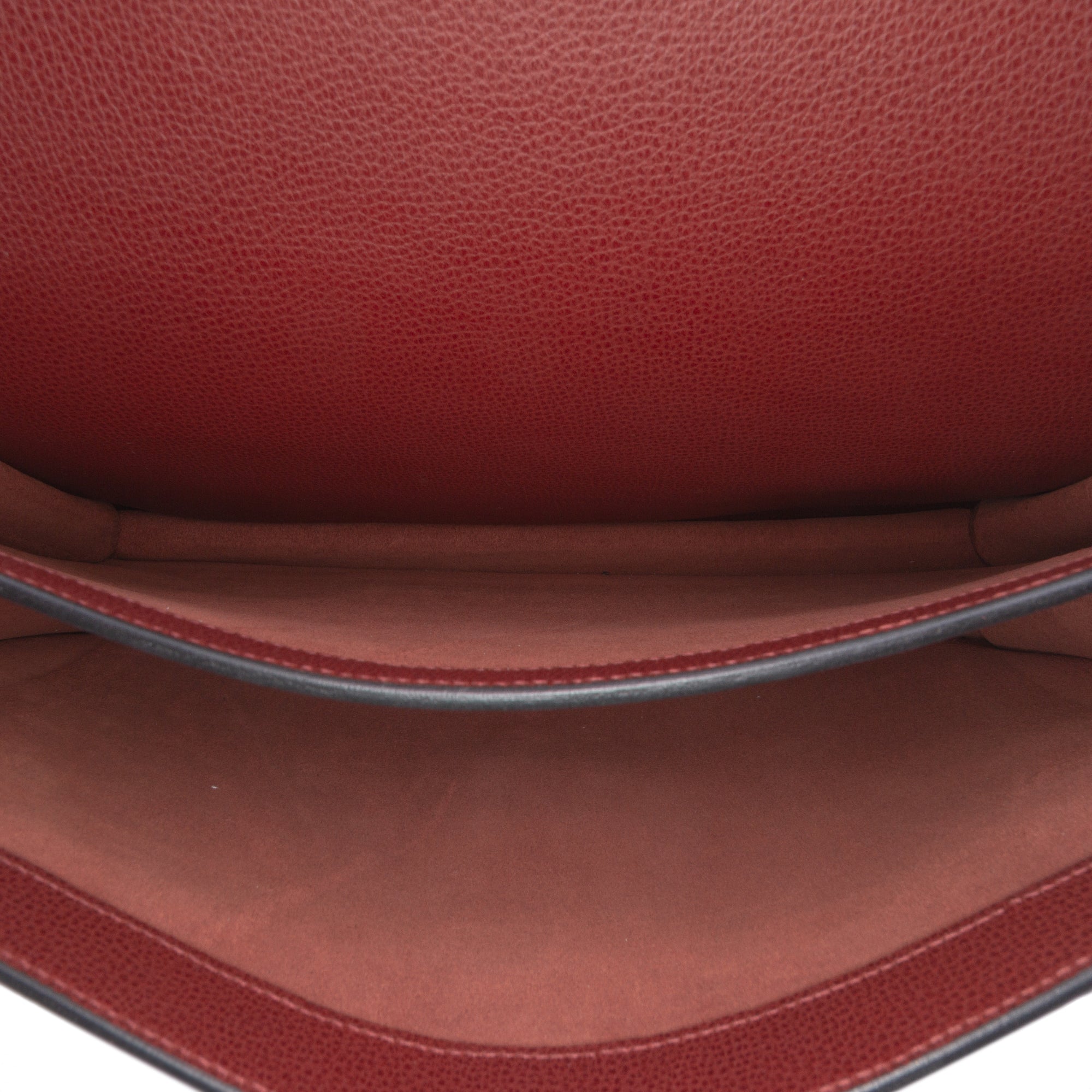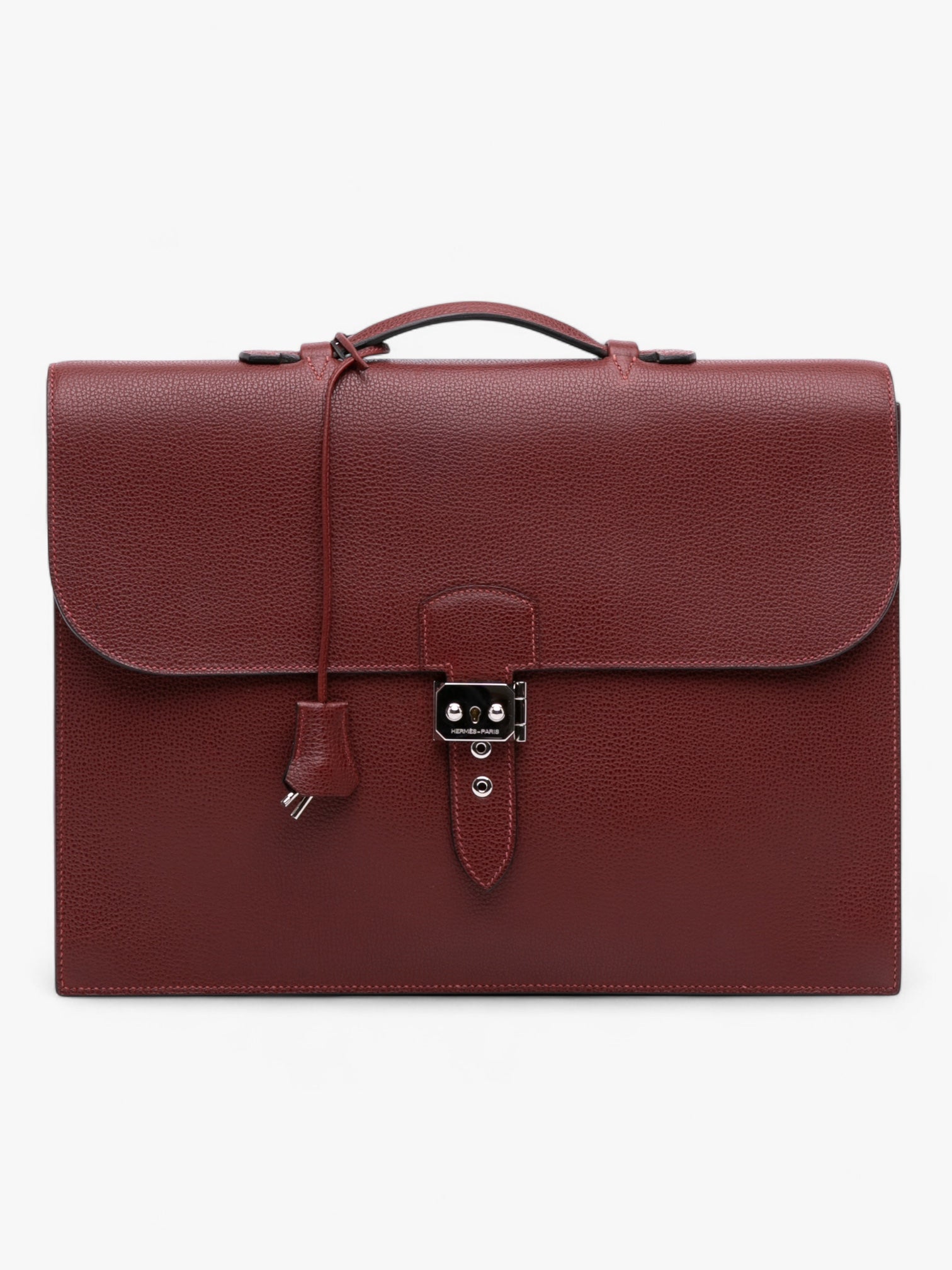 The Hermès Togo Sac A Depeches 38 features a Togo leather body in Rouge H color, a flat leather top handle, a front flap with metal-lock clasp closure, and spacious interior open compartments. A refined business essential, it combines functionality with Hermès’ timeless craftsmanship.