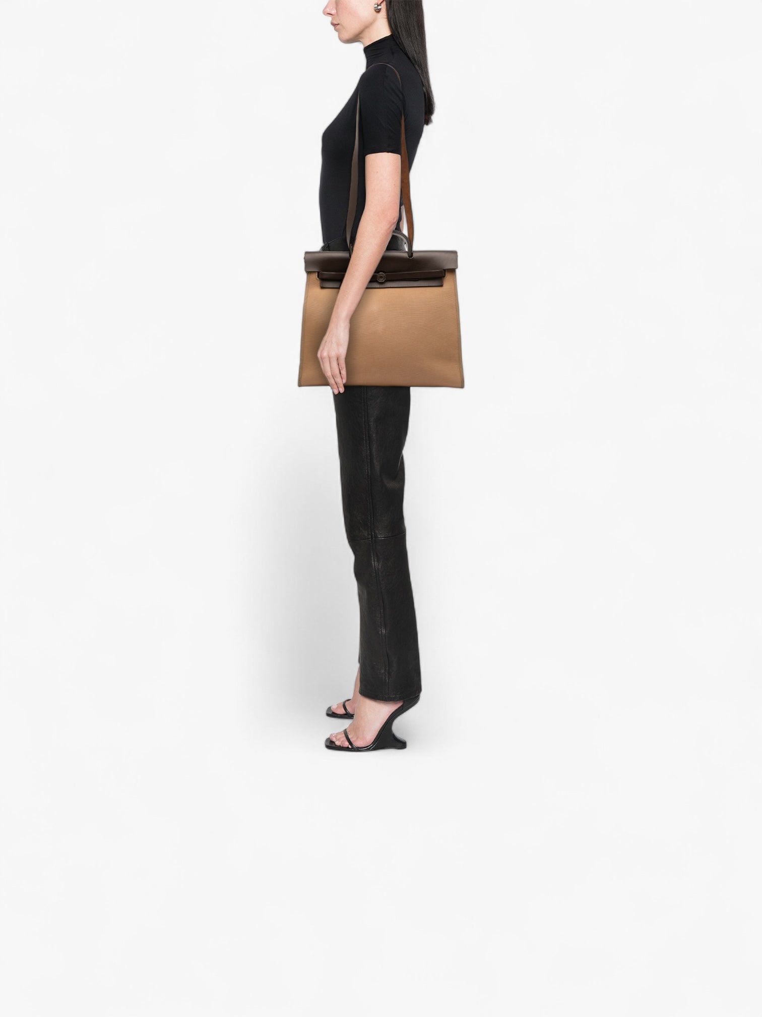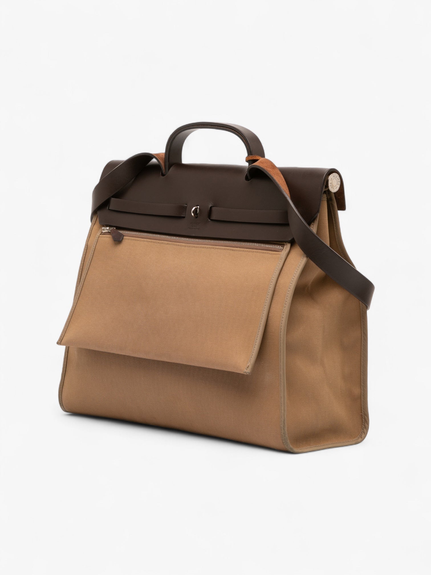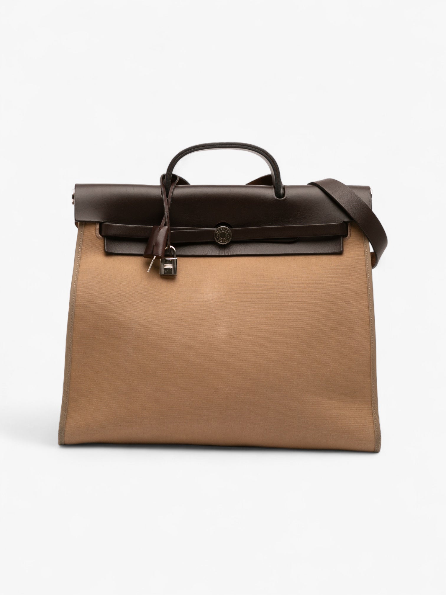 The Hermès Toile Herbag Zip 39 is a classic satchel that blends casual elegance with practical design. Crafted from durable canvas with a leather top handle and detachable strap, it features the signature pull-through flap closure and comes with a padlock and key for added charm. Spacious yet structured, it is ideal for everyday use.