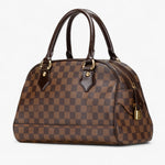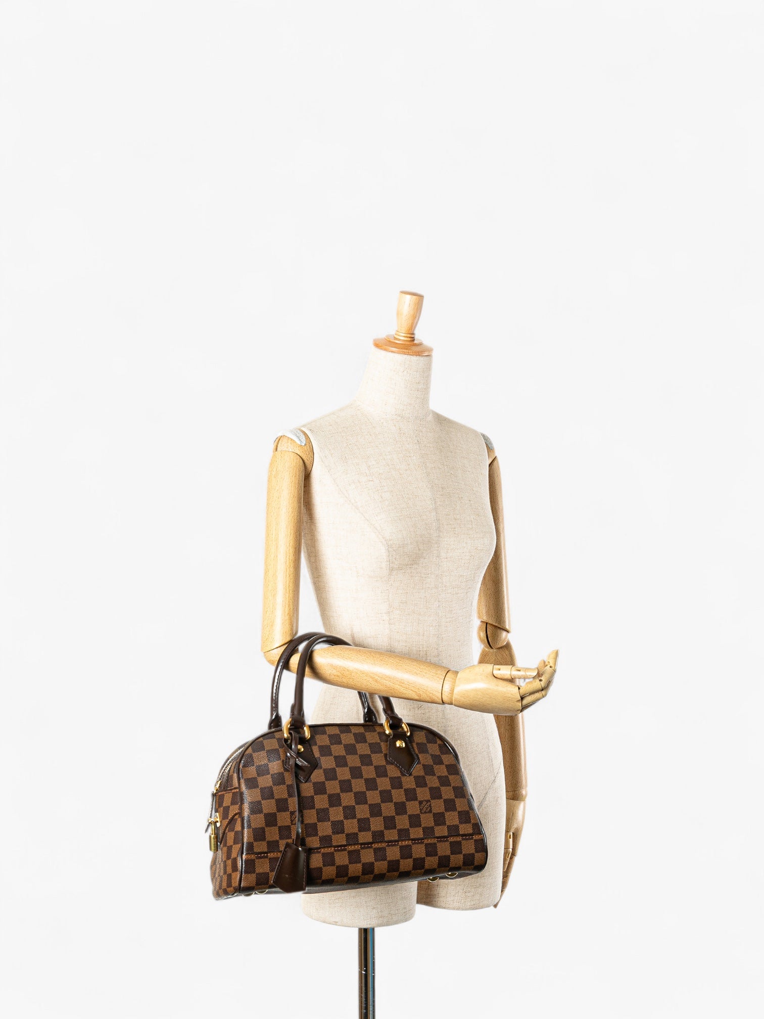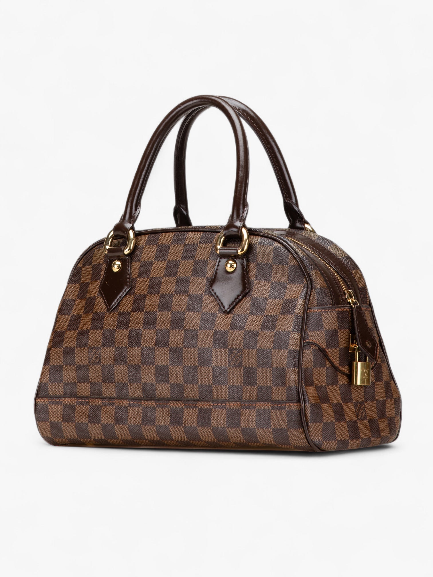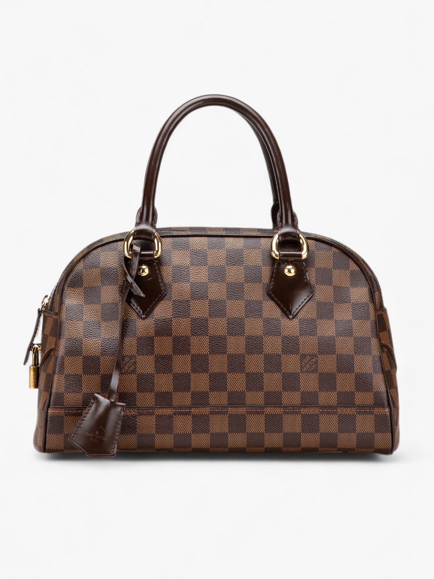 The Louis Vuitton Damier Ebene Duomo is a refined everyday bag crafted from signature Damier Ebene coated canvas with leather trim. It features rolled leather handles, a top zip closure, a clochette with keys, and a spacious interior with slip pockets. Both practical and elegant, it’s a versatile piece designed for timeless sophistication.