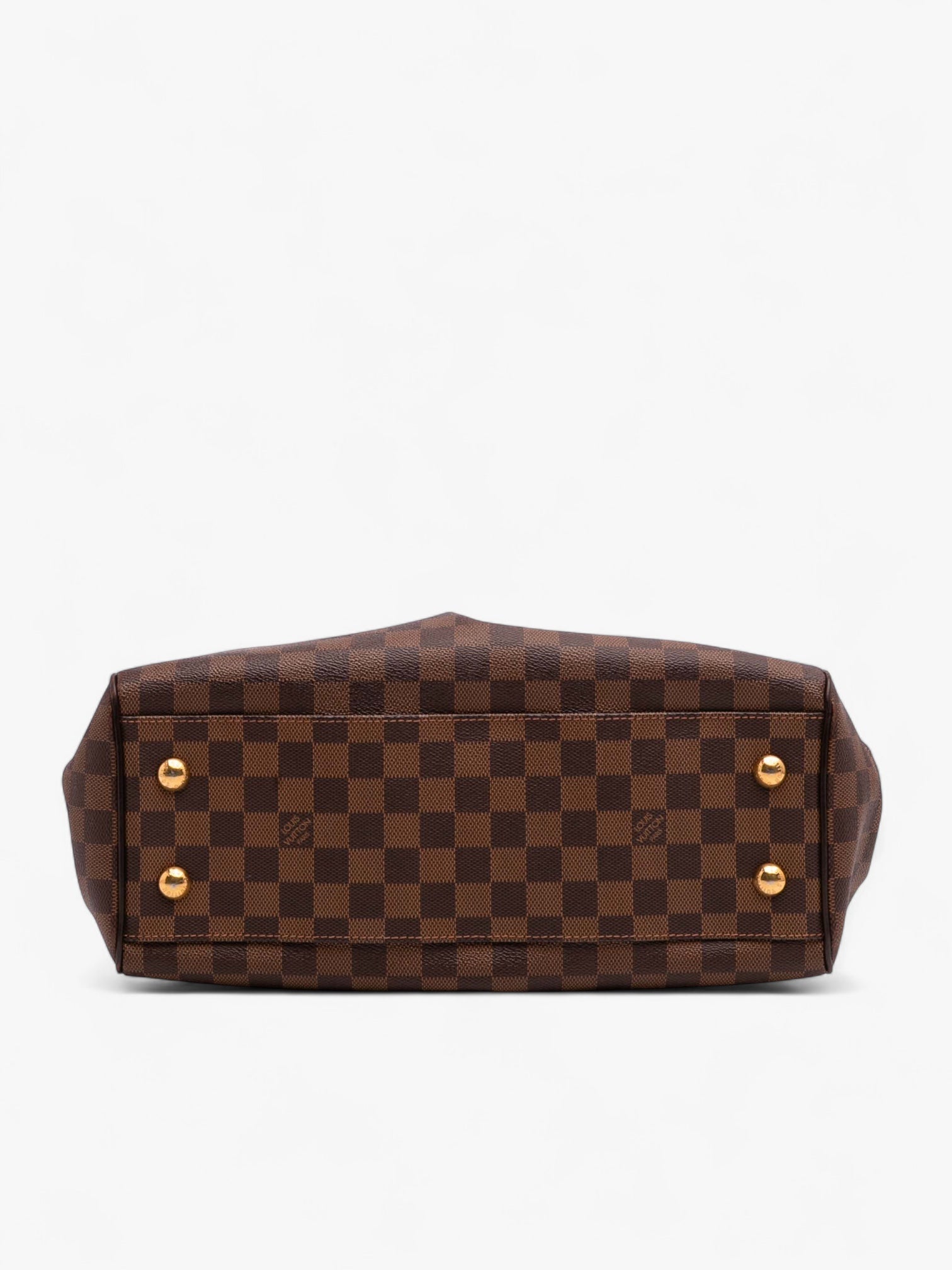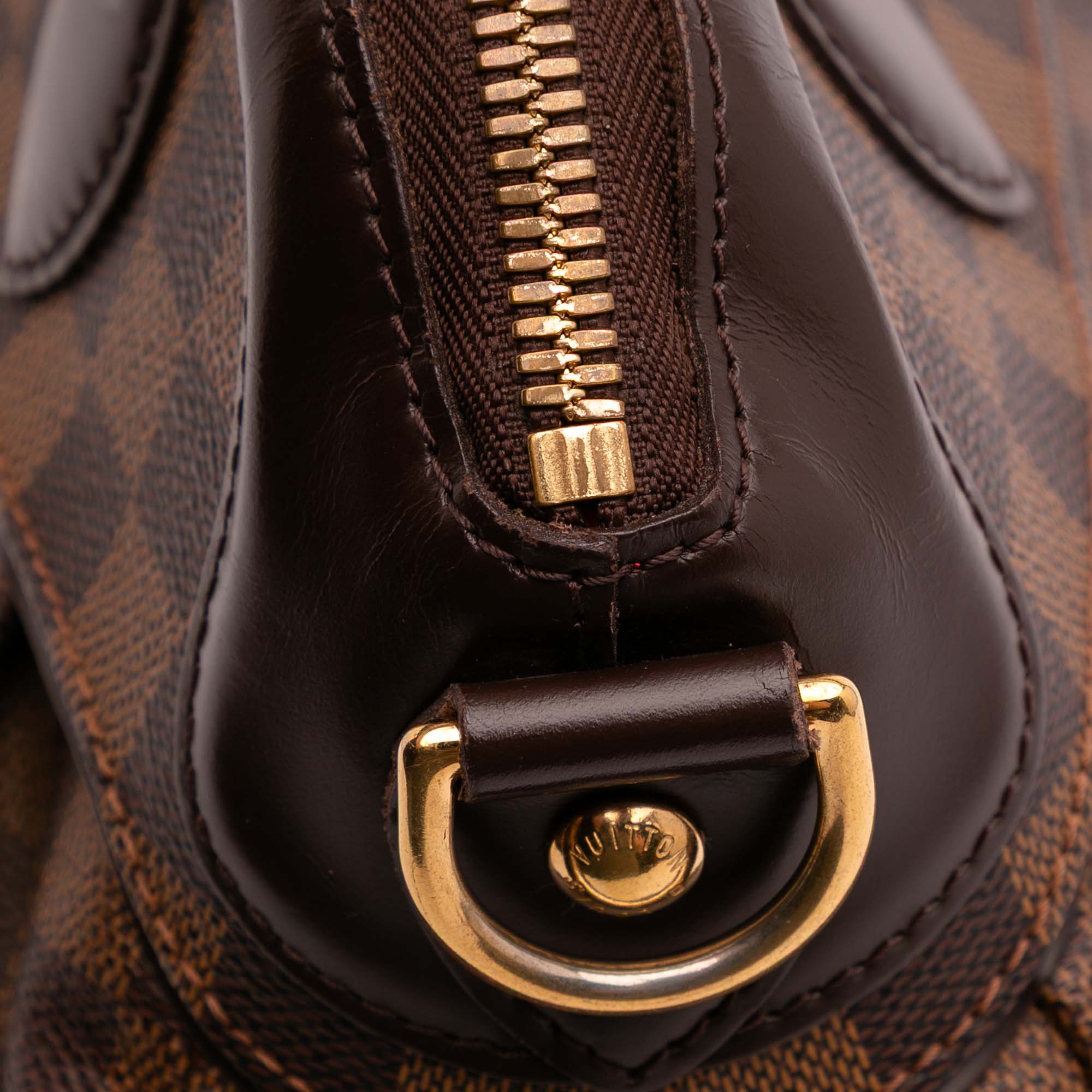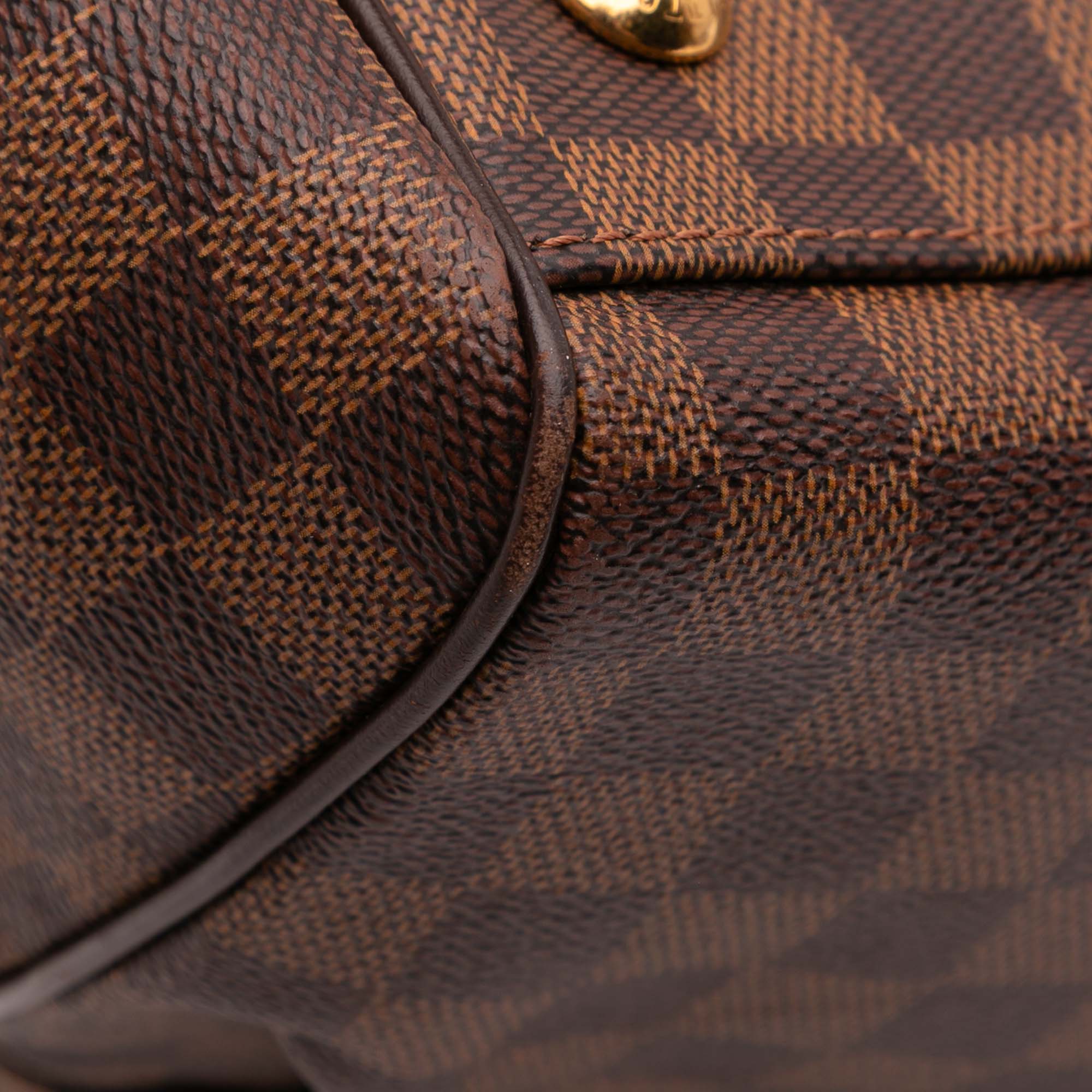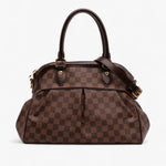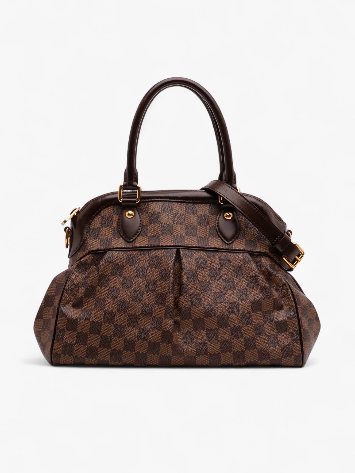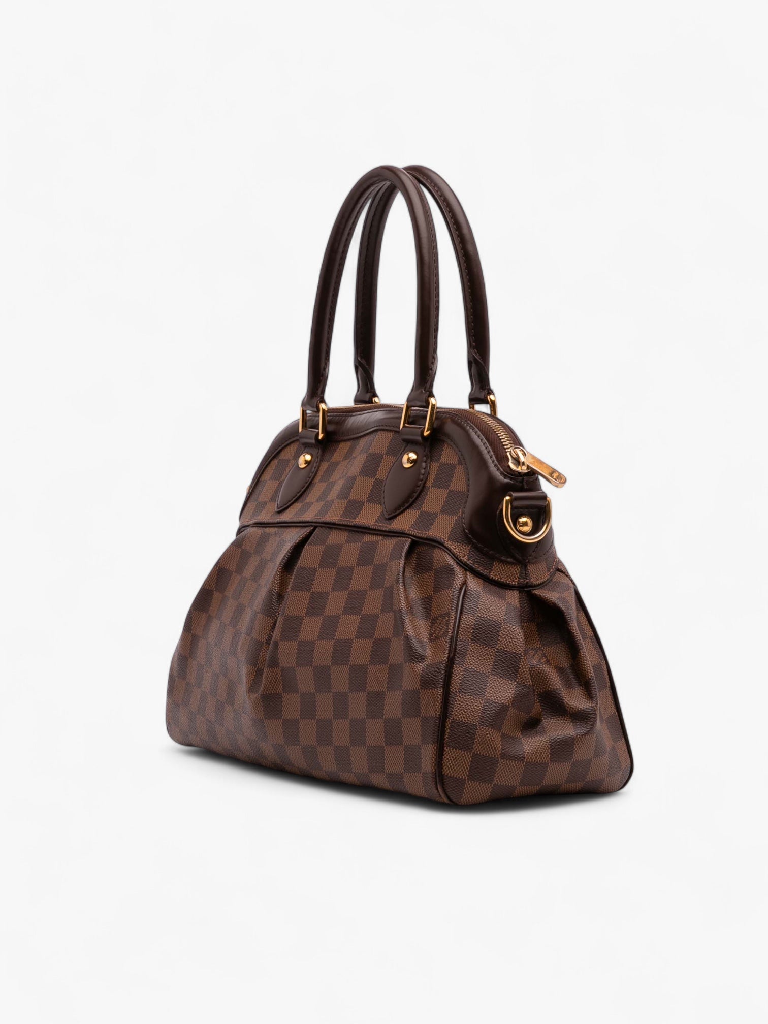 A feminine icon of the Louis Vuitton house, the Damier Ebene Trevi PM blends structure with refined elegance. This medium-size handbag in Damier Ebene canvas features rolled leather handles, a detachable strap, and a secure zip closure. Spacious compartments make it an ideal everyday bag. Light creasing, scratches, and minor wear on corners highlight its pre-loved character while maintaining structure.