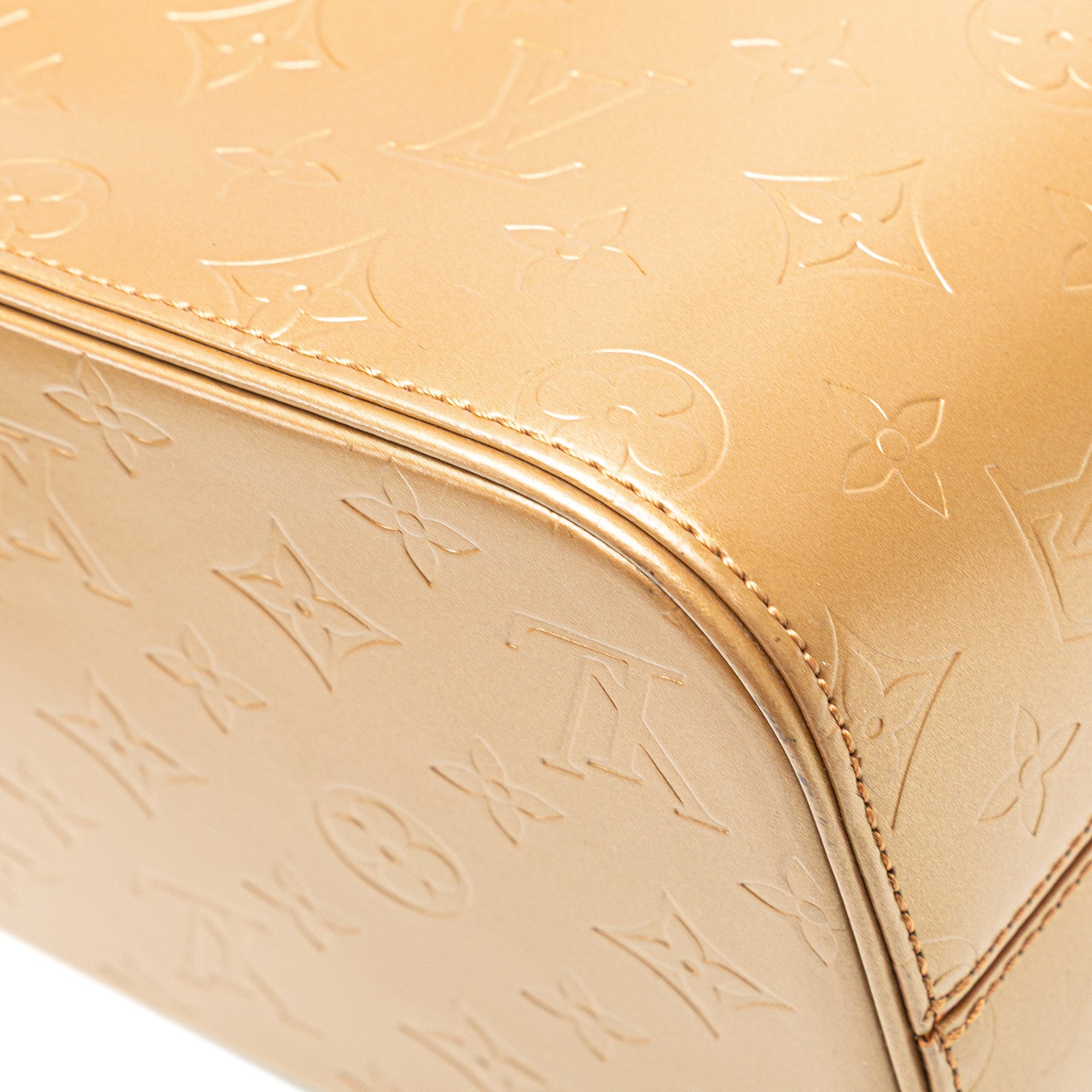 The Louis Vuitton Monogram Mat Stockton Tote is a refined piece crafted from metallic gold calf leather with a sleek matte finish. Designed with flat leather handles, a secure top zip closure, and an interior zip pocket, it combines understated elegance with everyday practicality. A rare collector’s item with timeless sophistication.