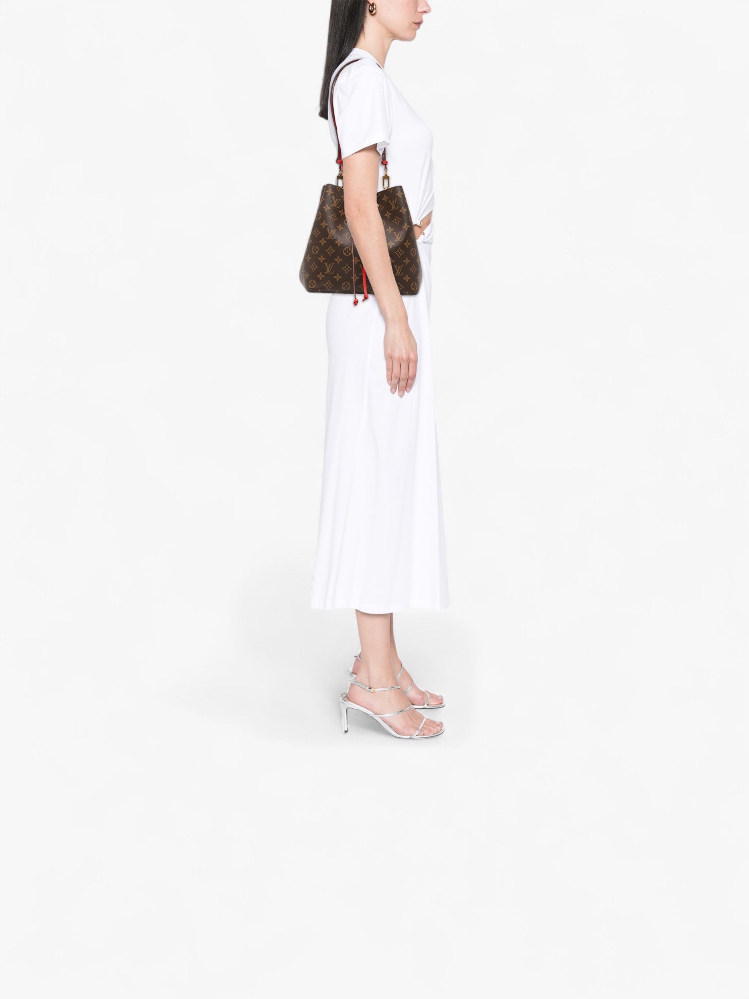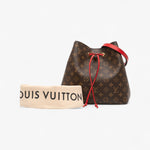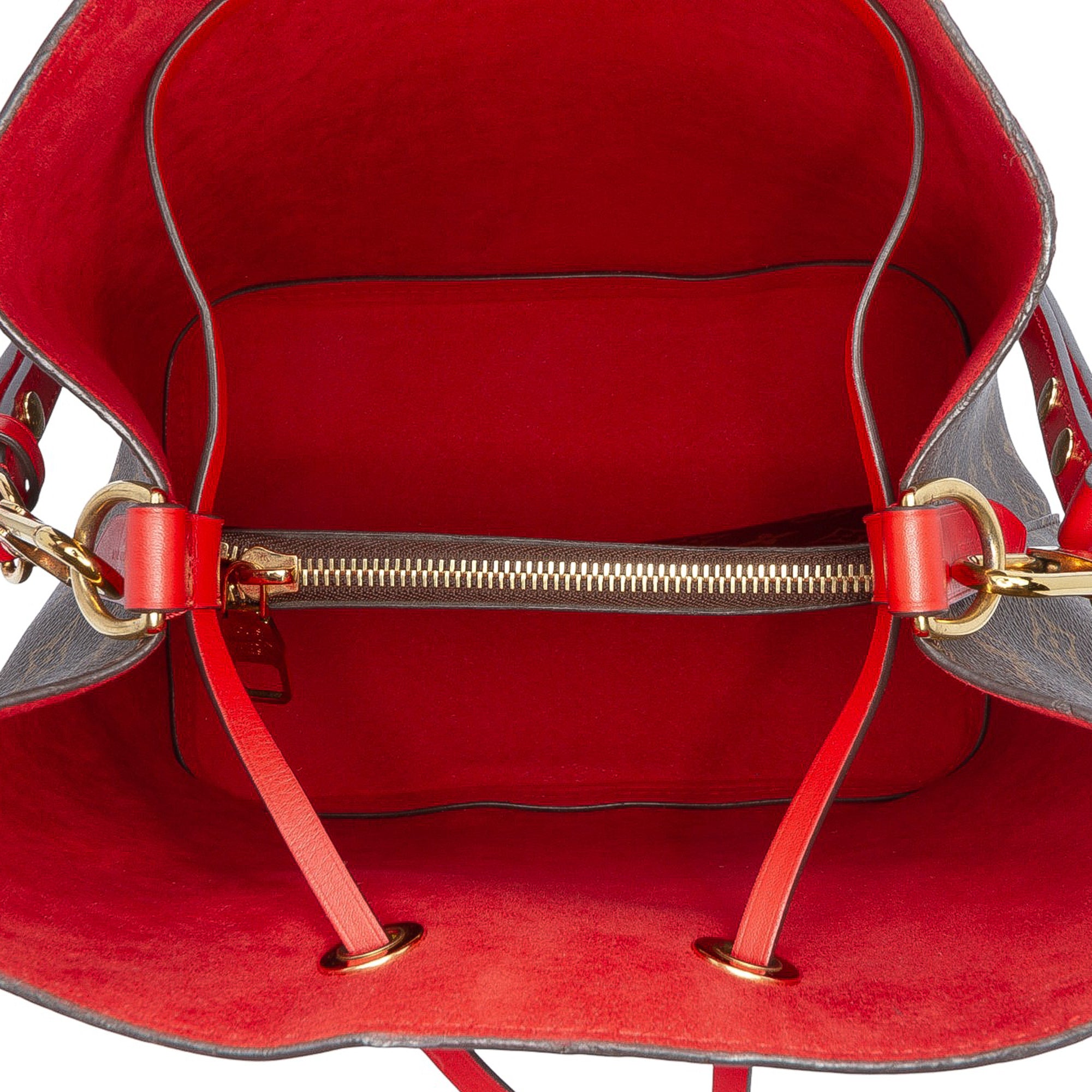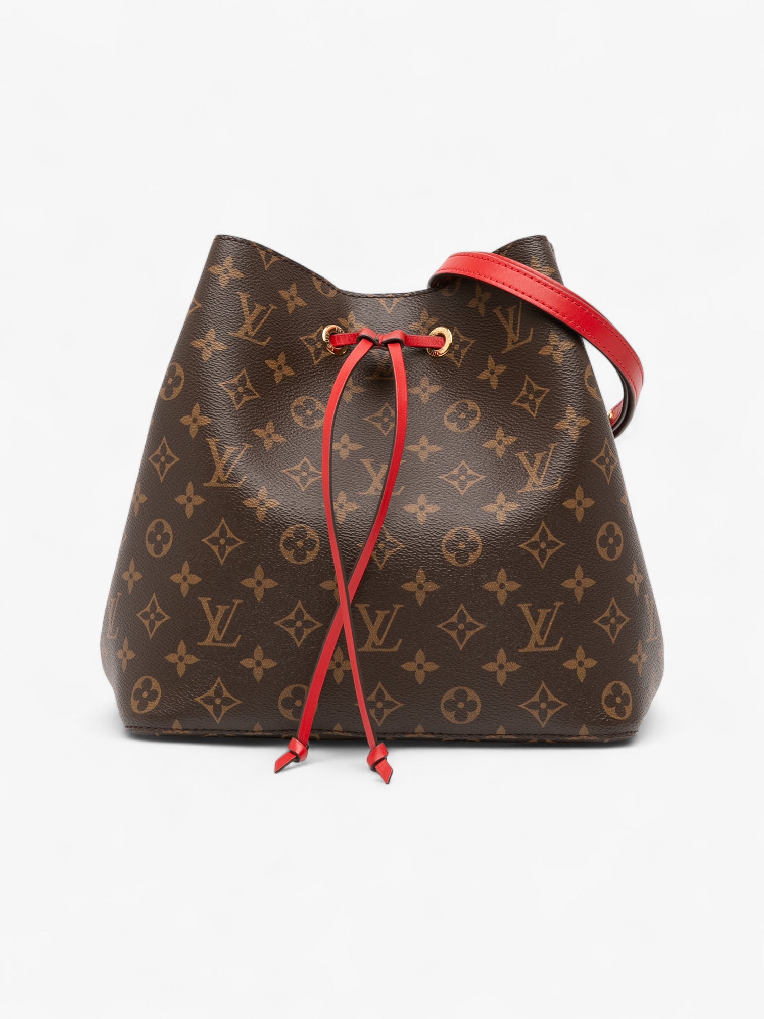 The Louis Vuitton Monogram Neonoé MM is a timeless bucket bag crafted in iconic Monogram canvas with striking red leather trim. Featuring a detachable and adjustable leather strap, a drawstring top closure, and a spacious interior with a zip pocket, it combines elegance with everyday practicality.