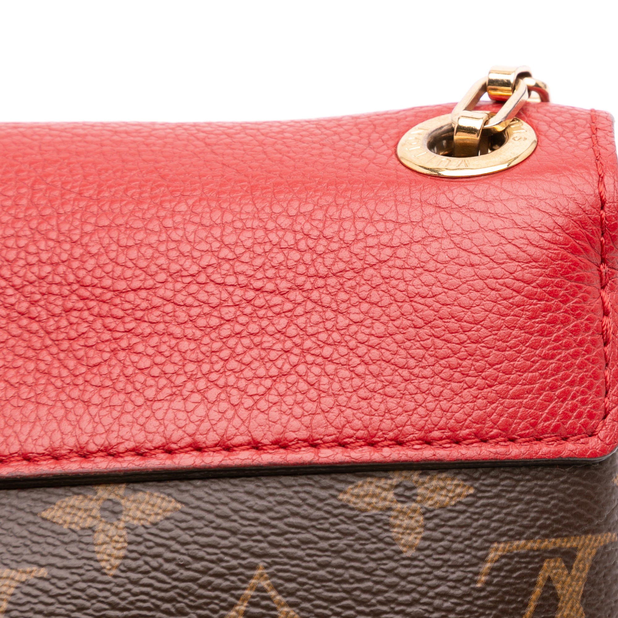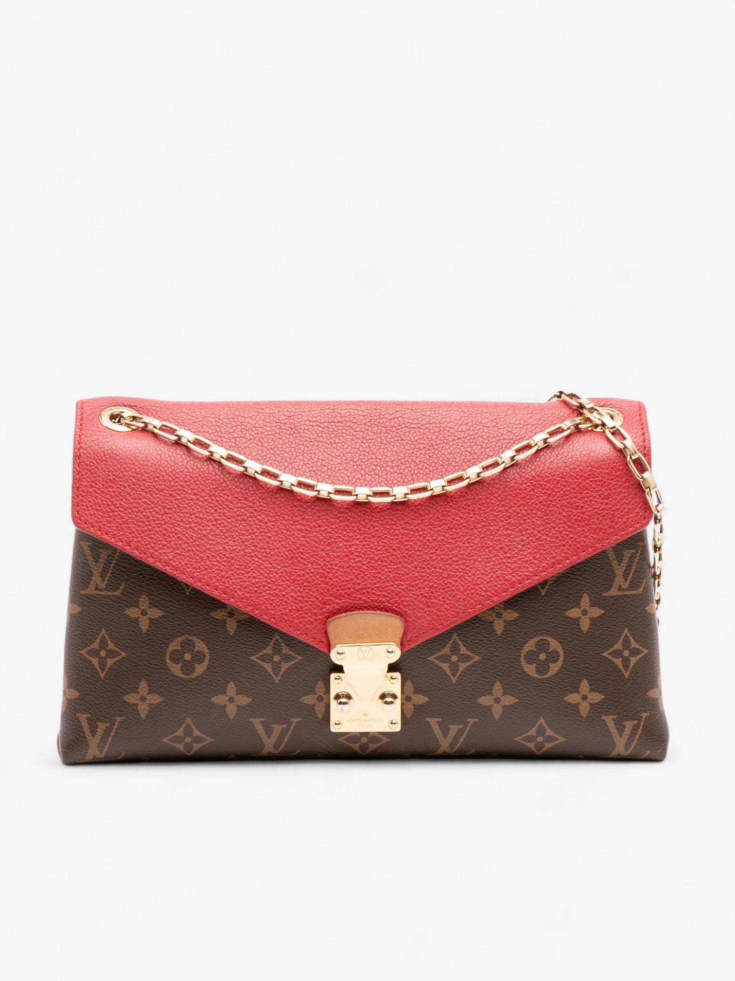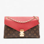 The Louis Vuitton Monogram Pallas Chain is a chic and versatile piece, combining the iconic Monogram canvas with a bold red leather flap. Featuring curb chain straps and a top flap with a secure push-lock closure, this compact yet elegant bag is perfect for both daywear and evening occasions. Its interior includes zip and slip pockets, offering practicality with Parisian sophistication.
