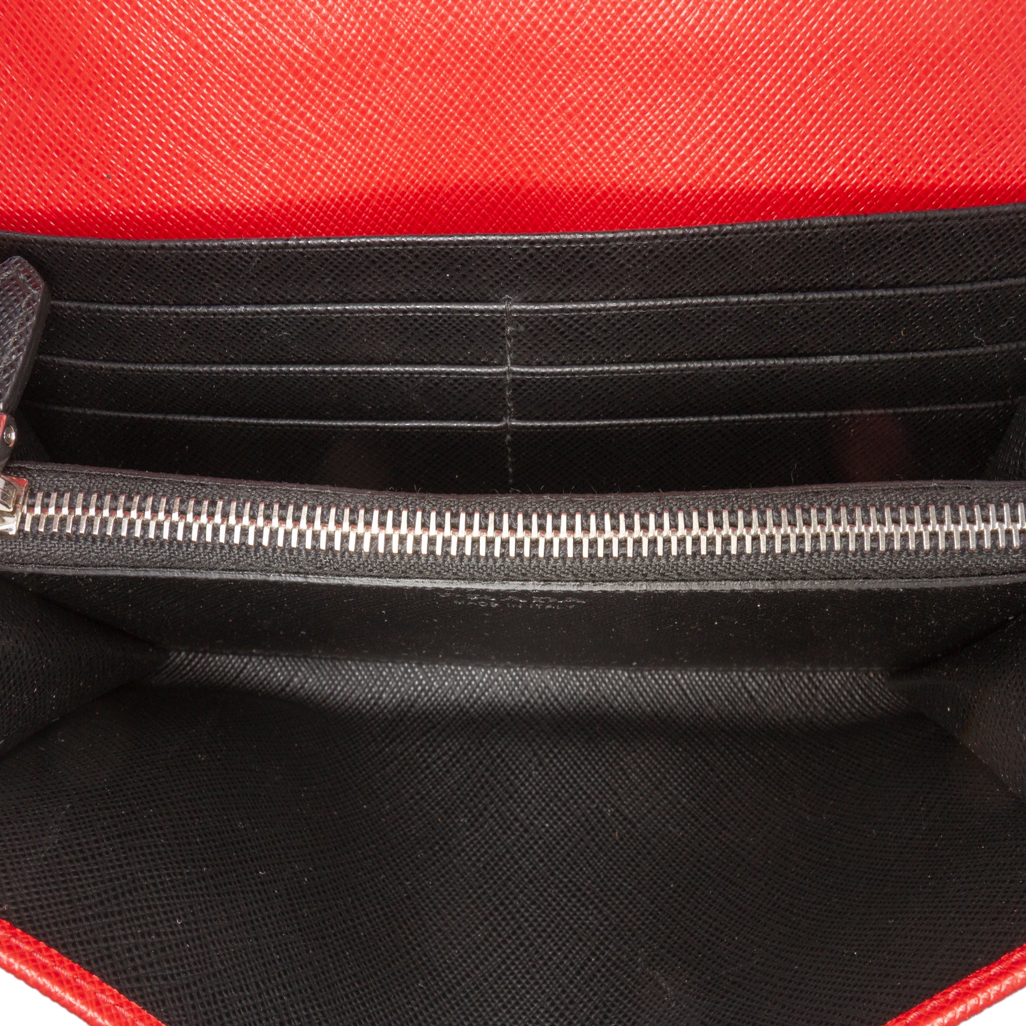 This is the authentic Saffiano Grommet Wallet, a stunning accessory that embodies sophistication and style. Crafted from luxurious saffiano leather, this wallet features exquisite grommet details, a convenient front flap with a magnetic snap closure, and thoughtfully designed interior zip and slip pockets, making it a perfect blend of elegance and functionality.