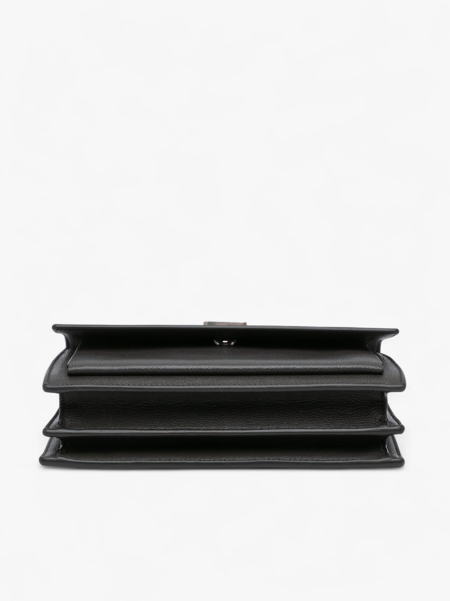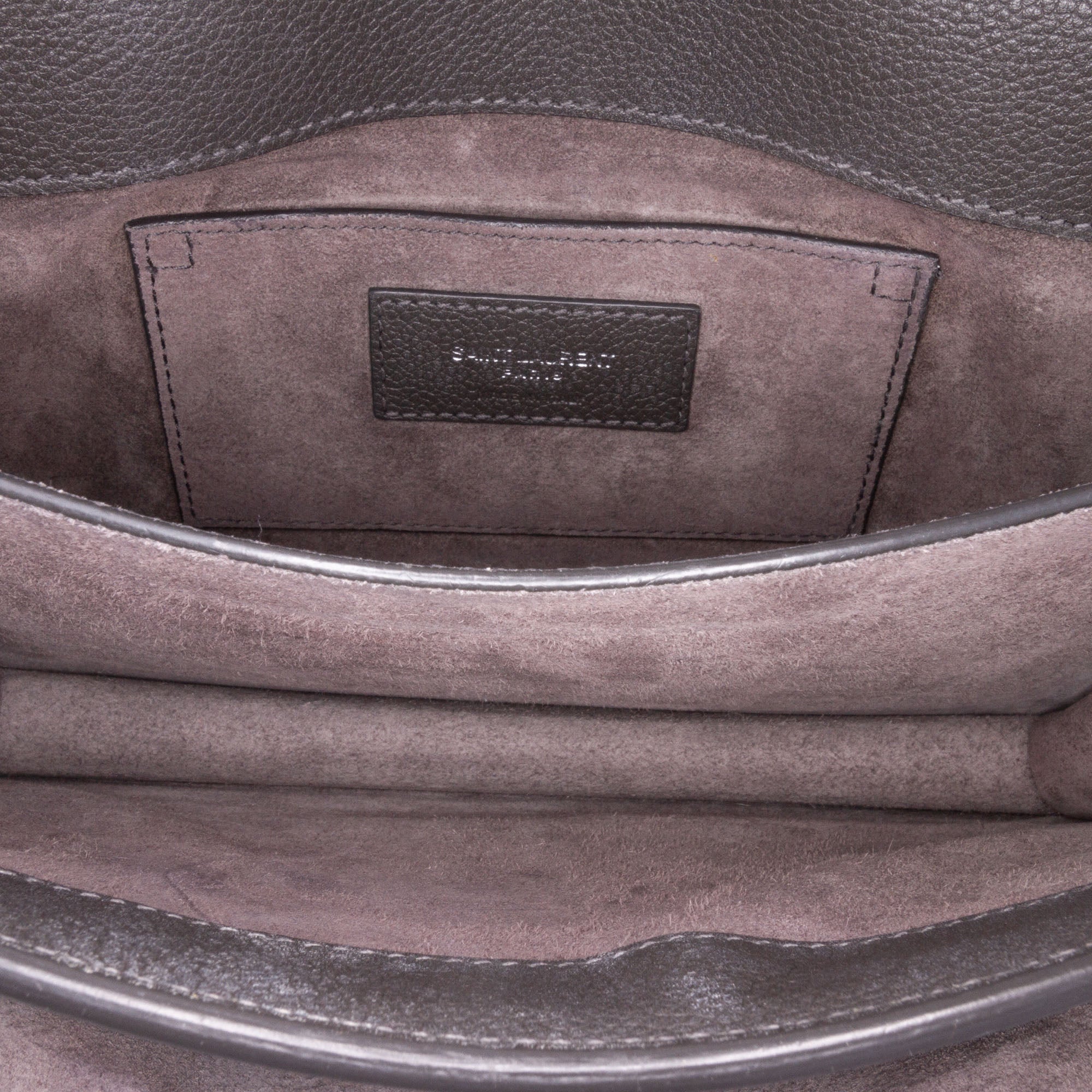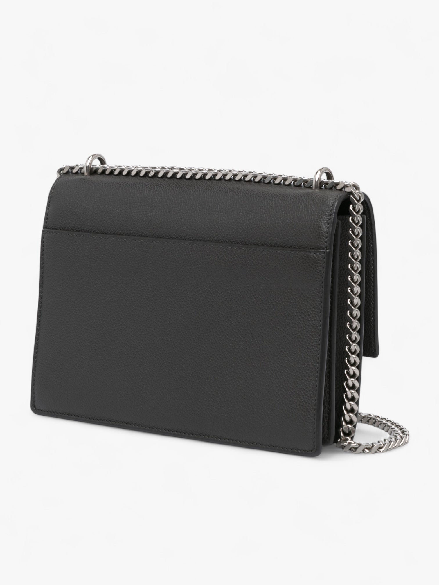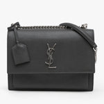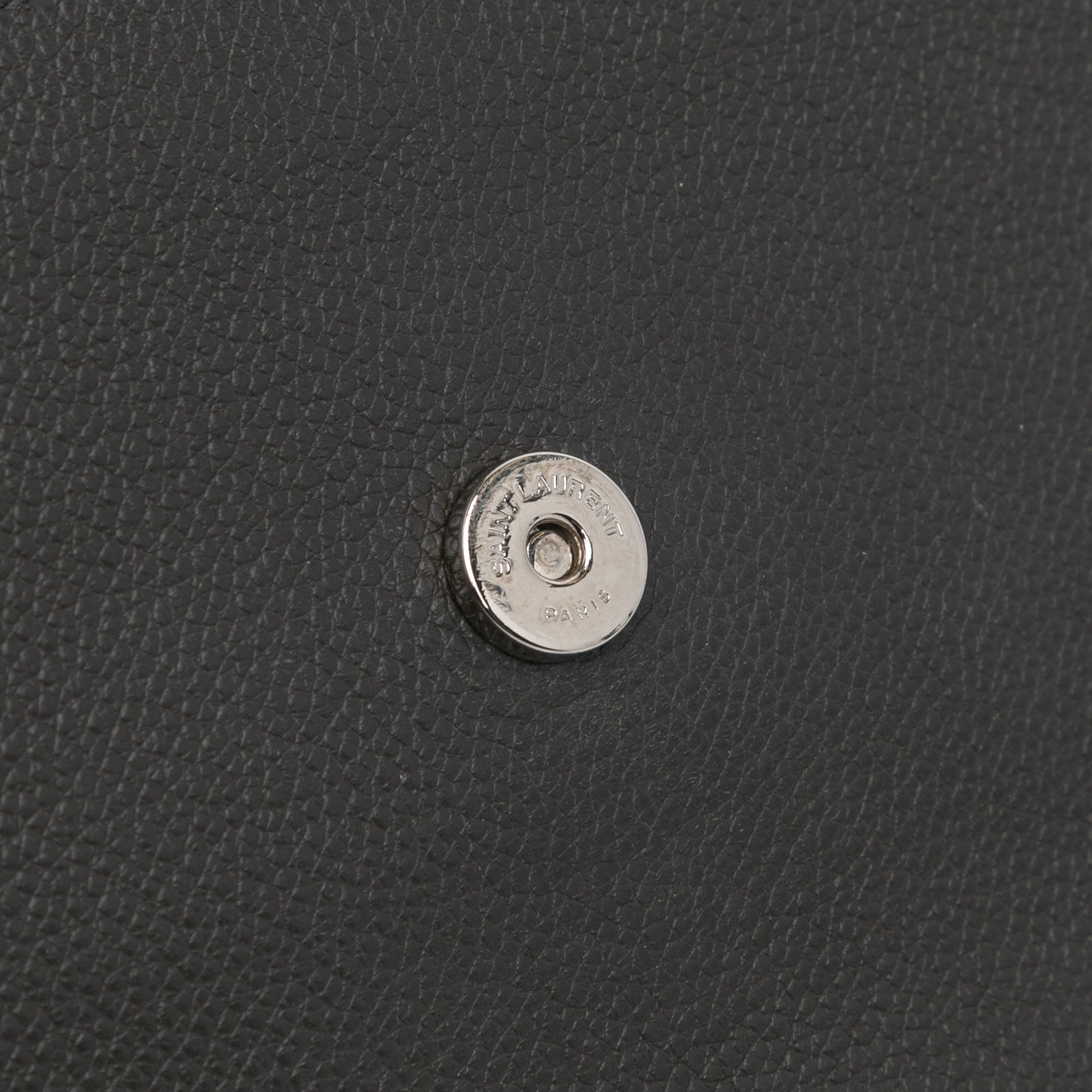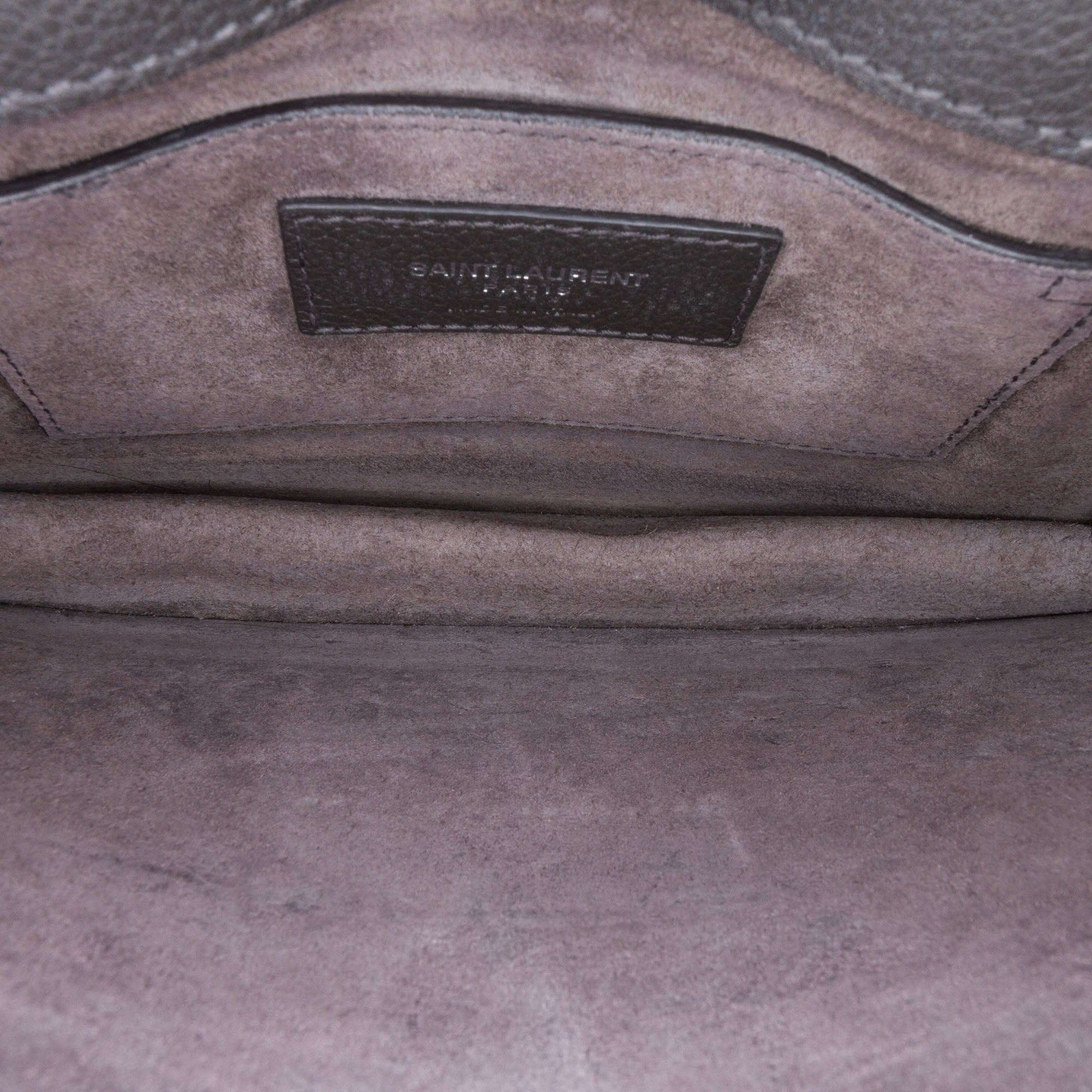 Refined and versatile, the Saint Laurent Medium Grained Calfskin Monogram Sunset Crossbody pairs structured lines with the iconic YSL hardware. Crafted in grey grained calfskin, it features a chain strap with leather guard, a front flap with magnetic snap, an exterior pocket, two interior compartments and a slip pocket — effortless from day to evening.