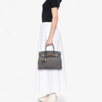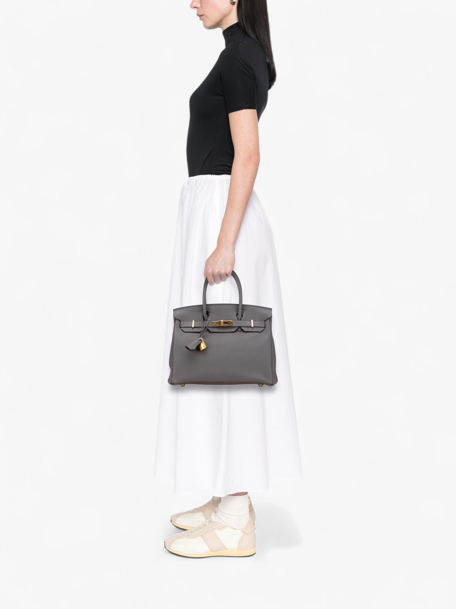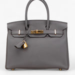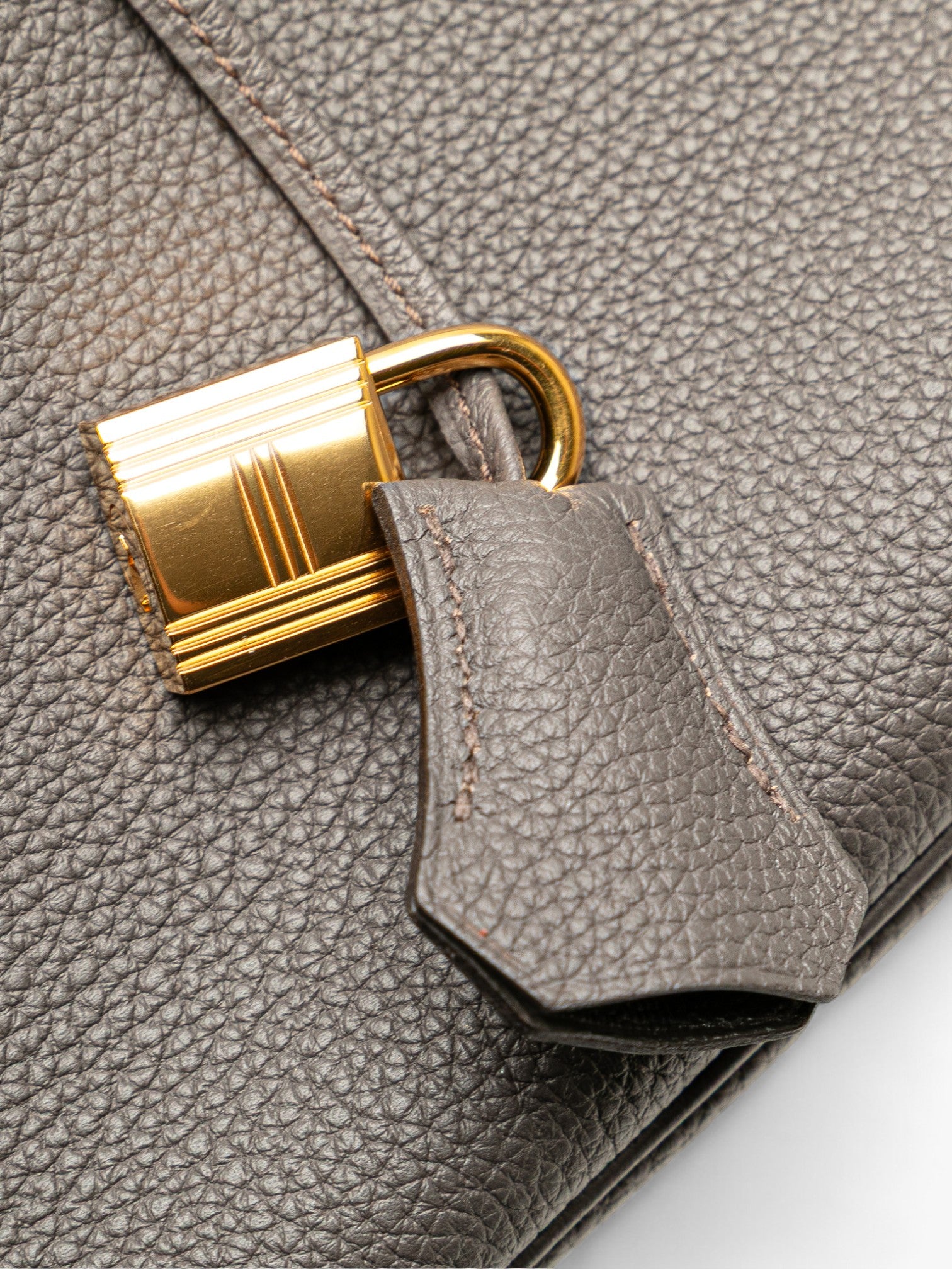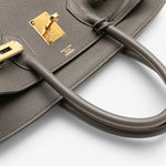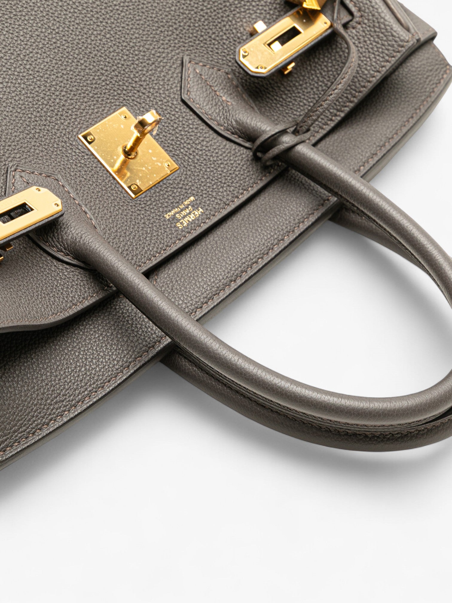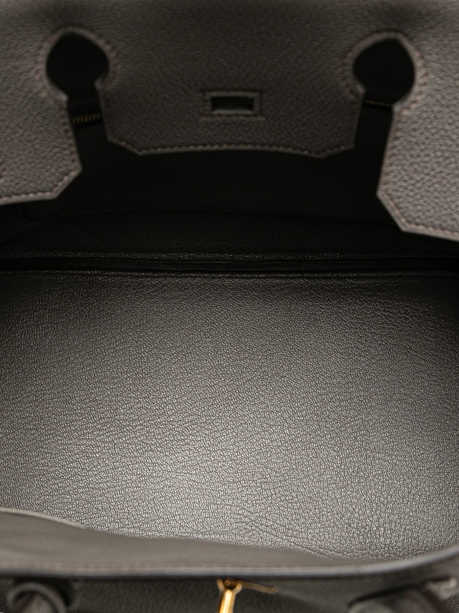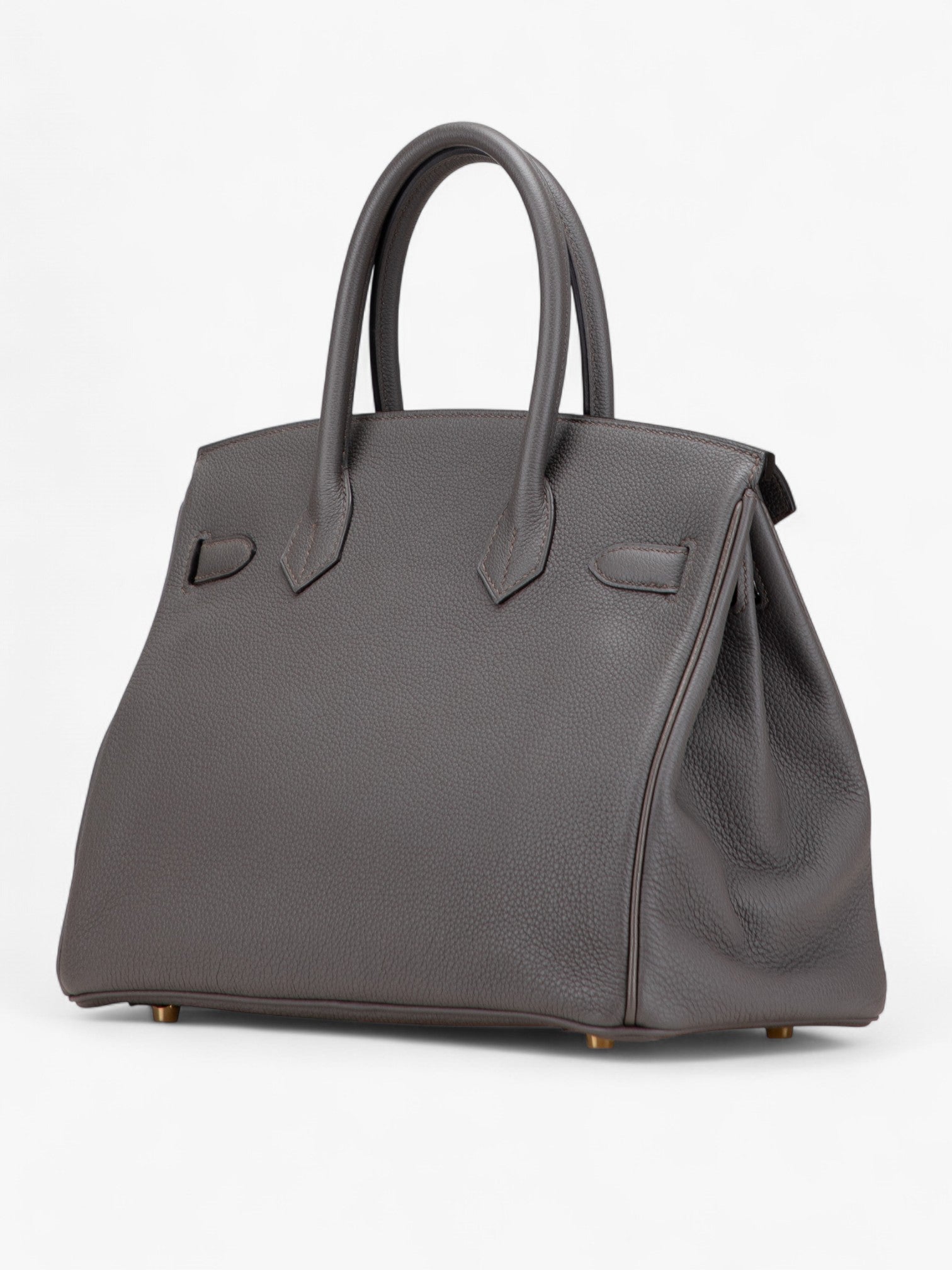 The Hermès Birkin 30 in Etain Togo leather is an icon of timeless sophistication. Crafted from supple, durable Togo calf leather, this bag showcases the signature Birkin silhouette with softly rounded Retourne edges, rolled leather handles, and the classic front flap secured by a metal turn-lock closure. The spacious interior features both zip and slip pockets, offering refined functionality in a luxurious form.