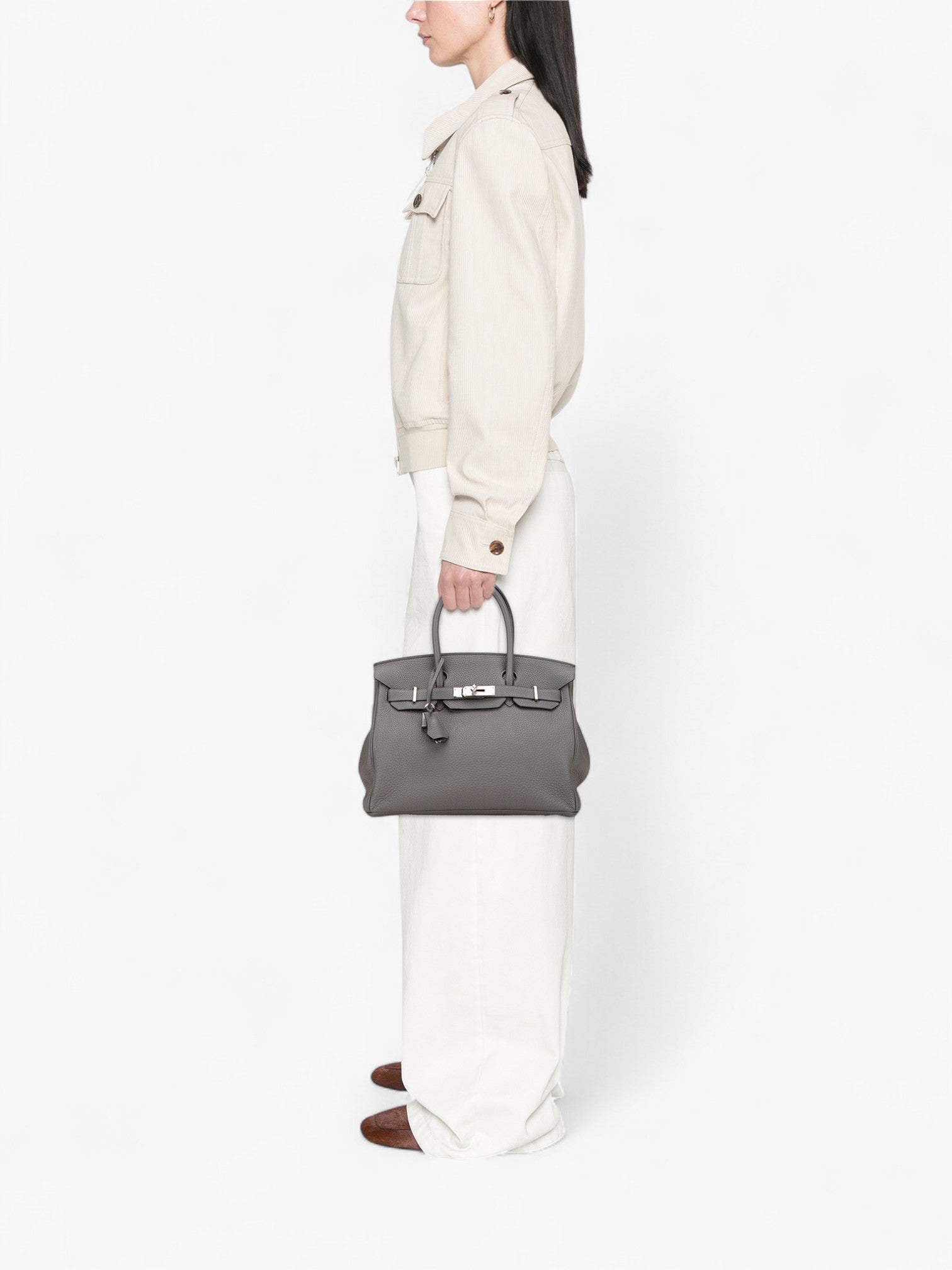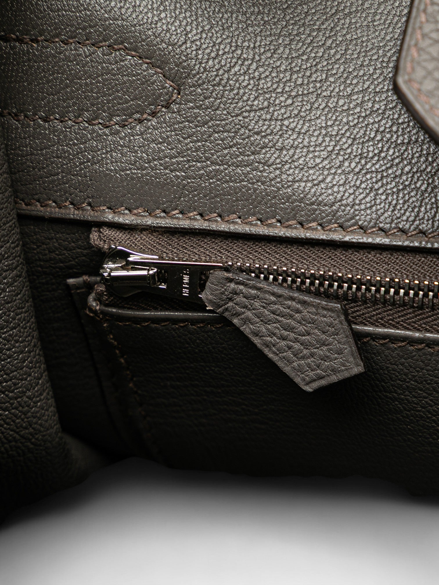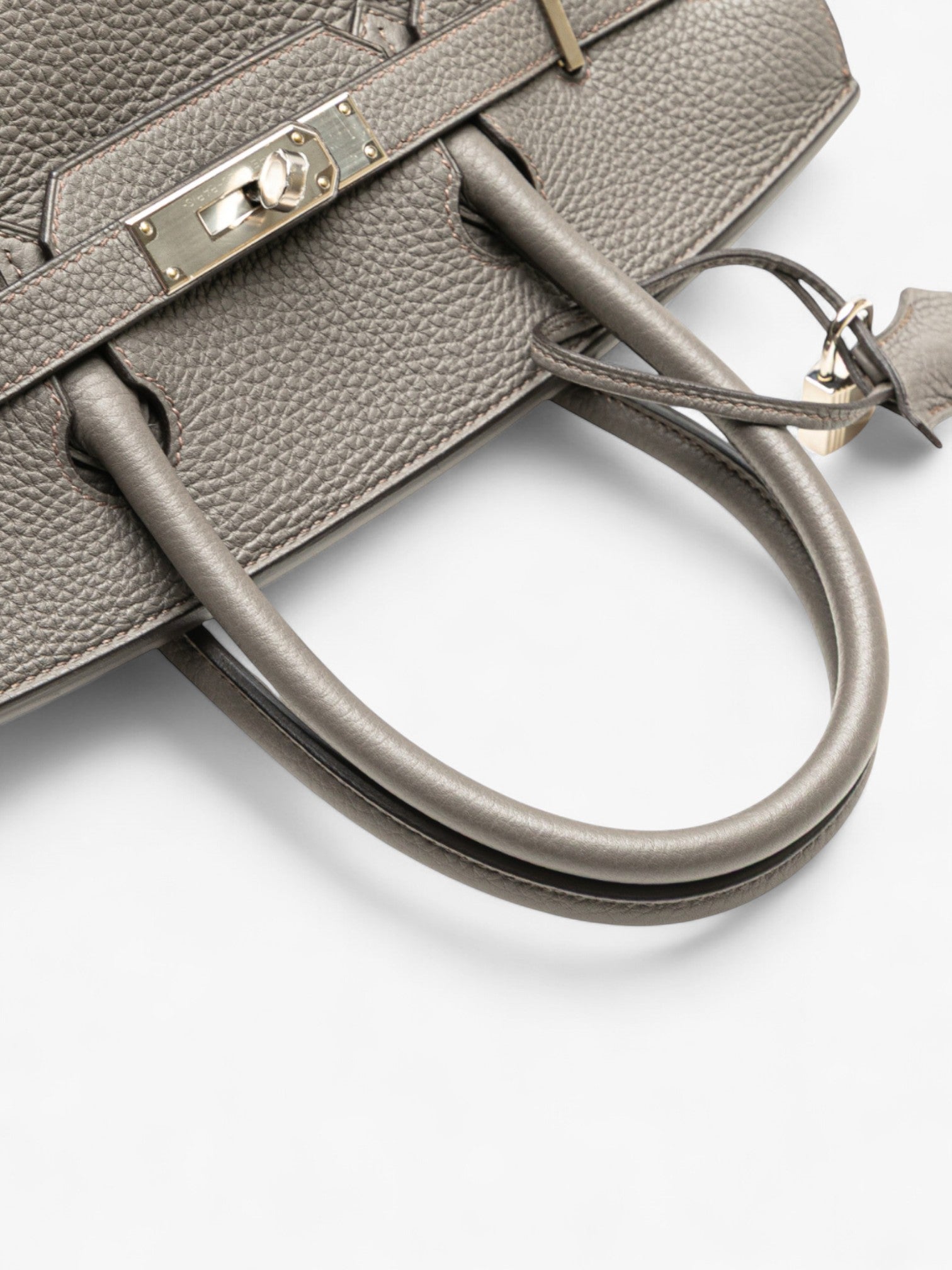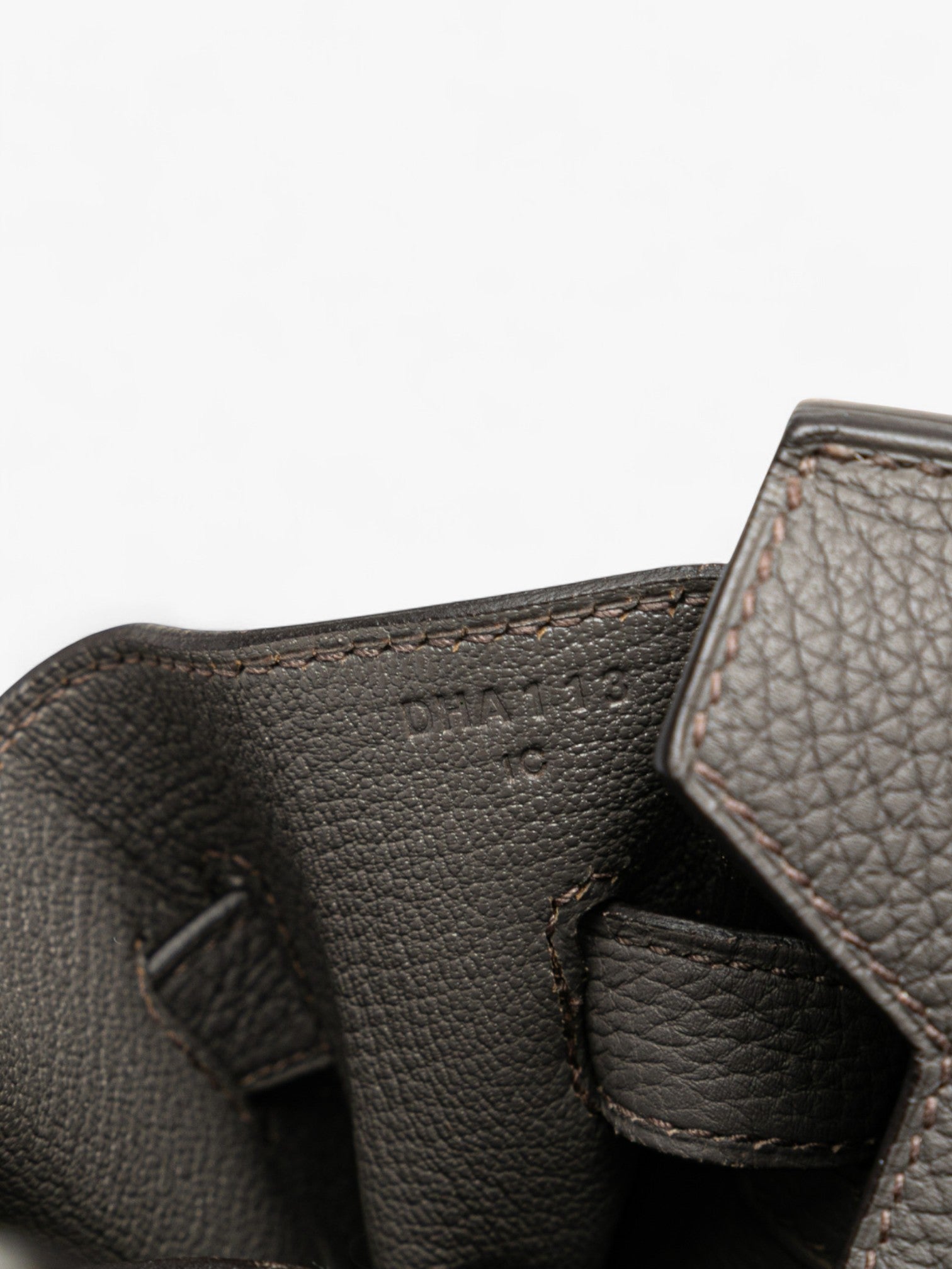 The Hermès Birkin 30 Retourne in Etain Togo leather is a refined expression of timeless elegance. Crafted from soft, durable Togo calf leather, this Birkin features the classic Retourne silhouette with slightly rounded edges, rolled leather handles, and the signature front flap with polished metal turn-lock closure. The interior includes both zip and slip pockets, combining practical organization with Hermès’ impeccable craftsmanship.