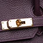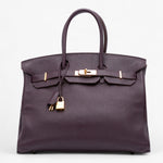 The Hermès Birkin 35 Retourne in Raisin Togo leather is a sophisticated expression of classic Hermès artistry. Crafted from supple and durable Togo calf leather in a deep purple hue, this timeless design features the iconic Retourne construction, rolled leather handles, and the signature front strap with turn-lock closure. The interior includes a zip and slip pocket, offering the perfect balance between elegance and everyday practicality.