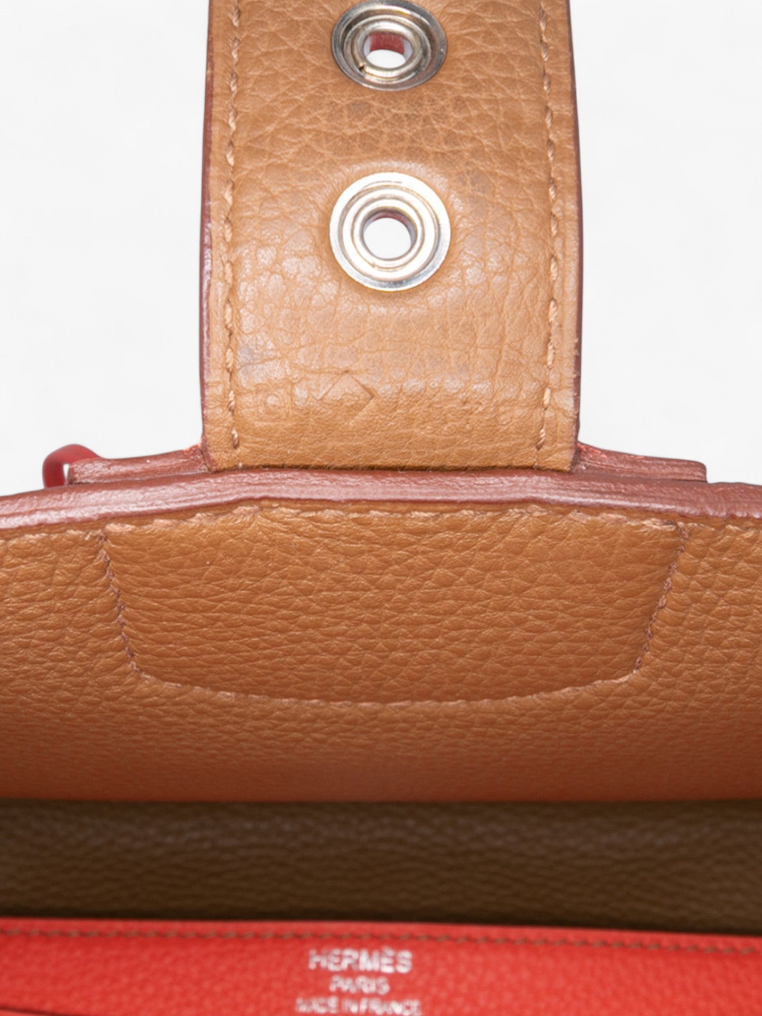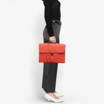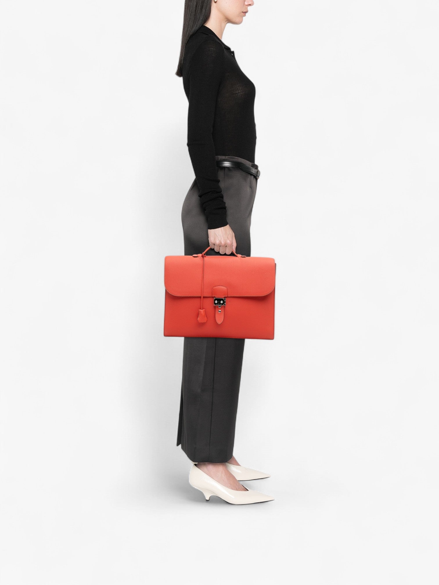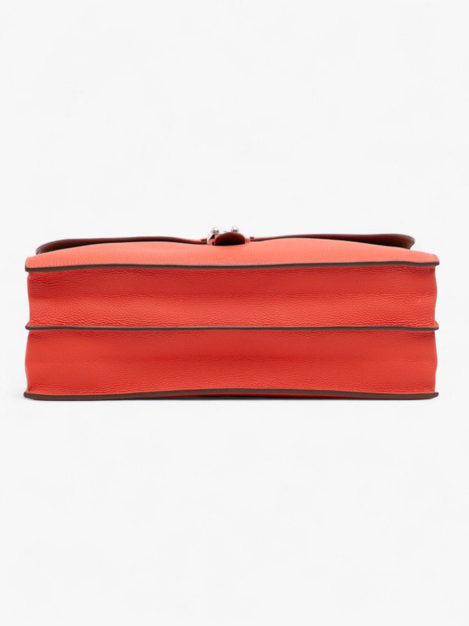 The Hermès Sac à Dépêches Verso 38 in Togo leather is a sophisticated briefcase that blends timeless craftsmanship with bold elegance. Crafted from durable and supple Togo calf leather in a striking combination of Capucine and Gold tones, it features a structured silhouette, a flat leather top handle, and a signature front flap with a polished flip-lock closure. The interior is designed with open and slip compartments, offering both refined organization and unmistakable Hermès luxury.