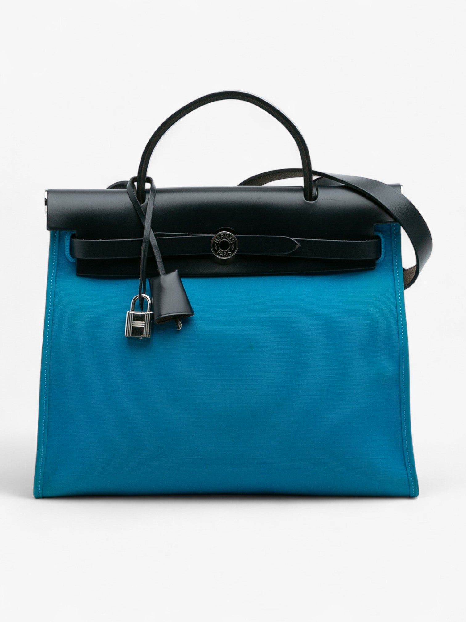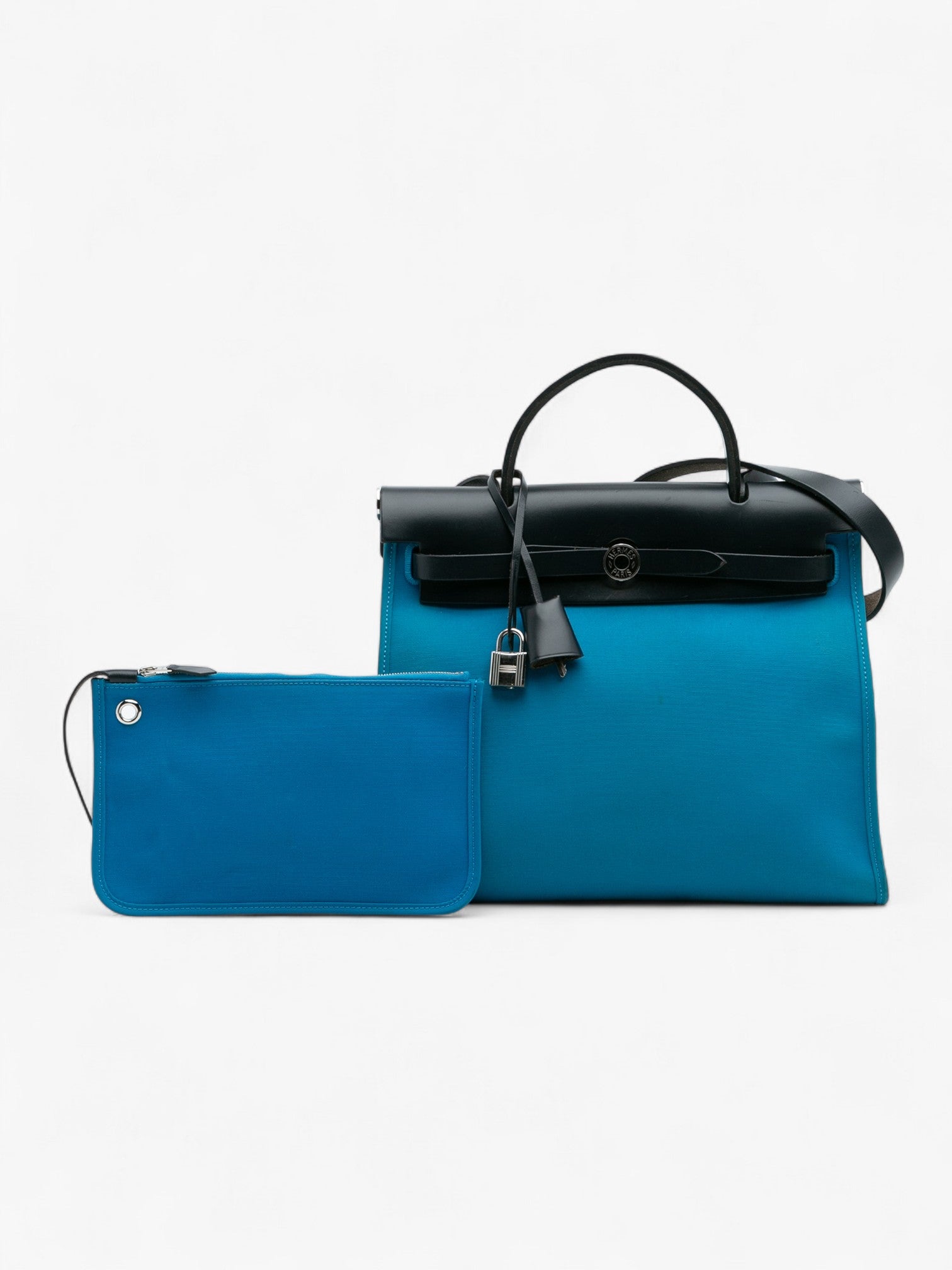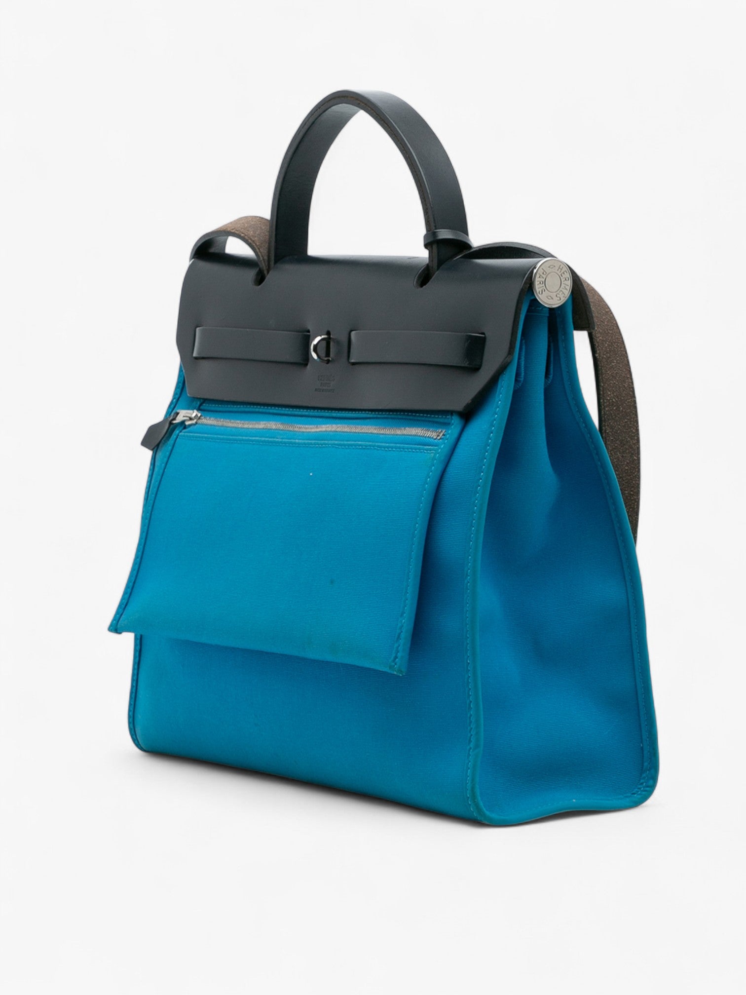 The Hermès Herbag Zip 31 in Blue perfectly combines casual elegance with the House’s signature craftsmanship. Crafted from durable canvas with smooth leather trim, this structured tote features a leather top handle, a detachable shoulder strap, and a leather flap with a pull-through strap closure. The exterior back zip pocket and removable interior pouch add modern functionality, making it a chic and practical everyday companion.