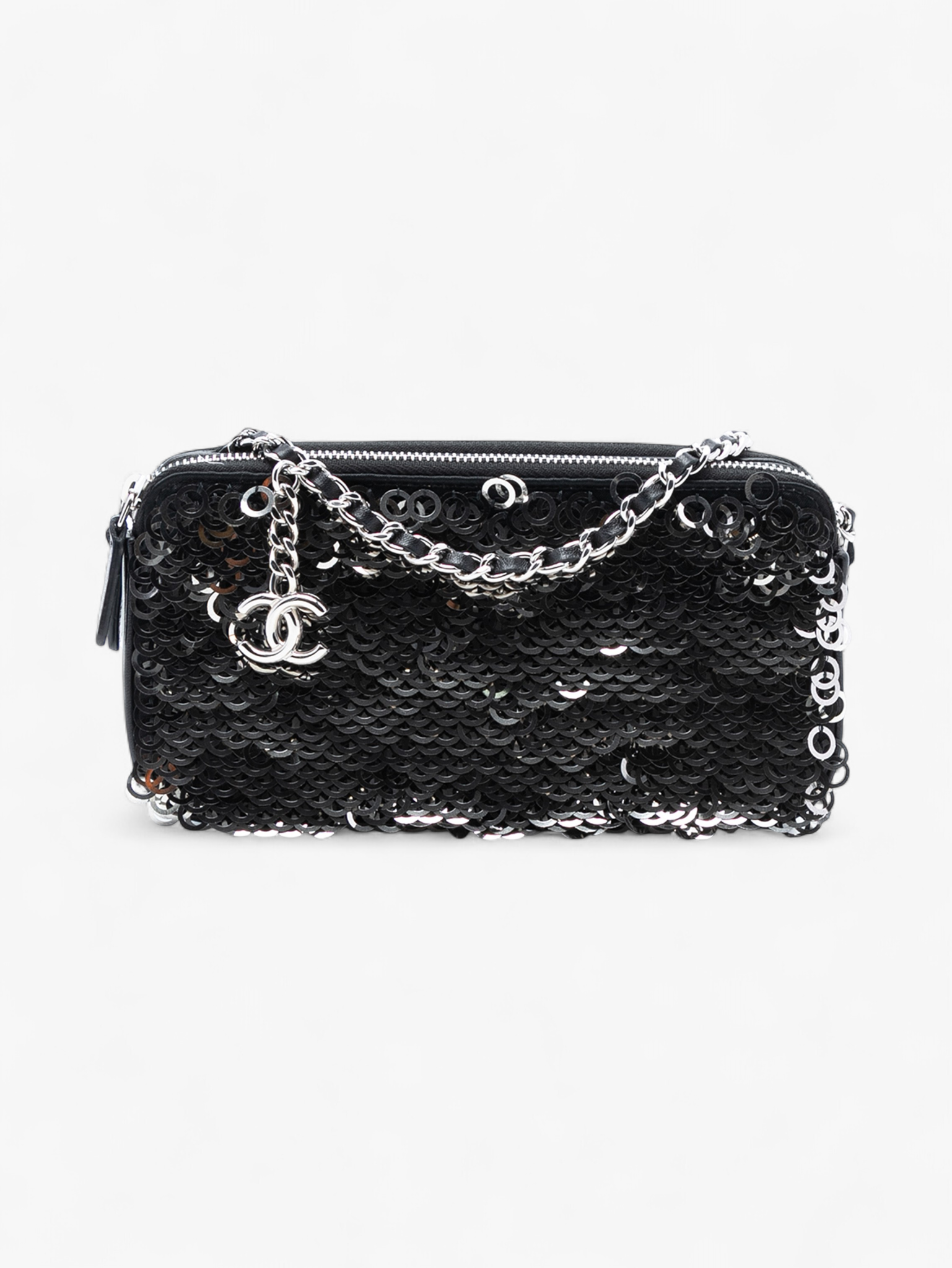 Chanel CC Calfskin and Sequin Double Zip Wallet on Chain
