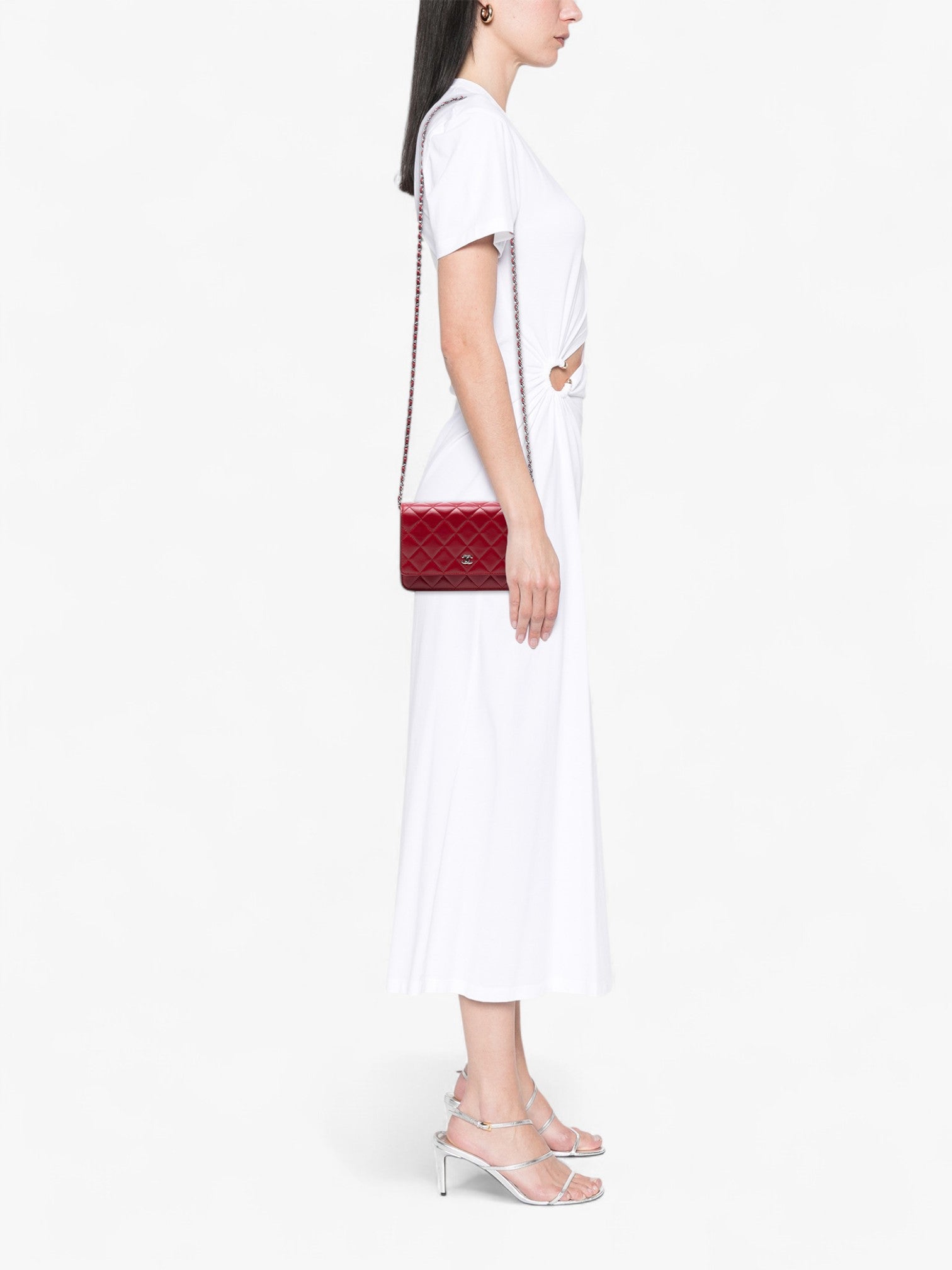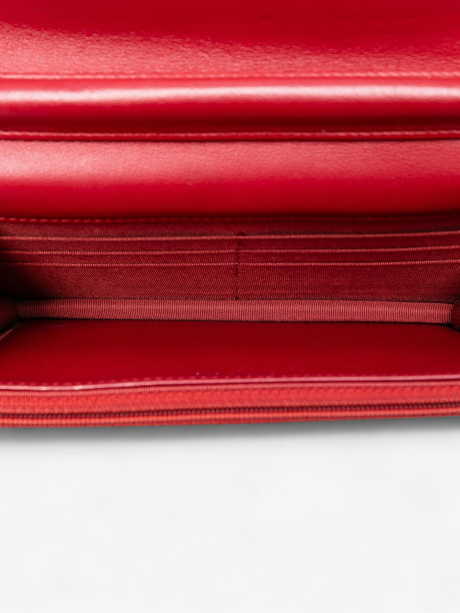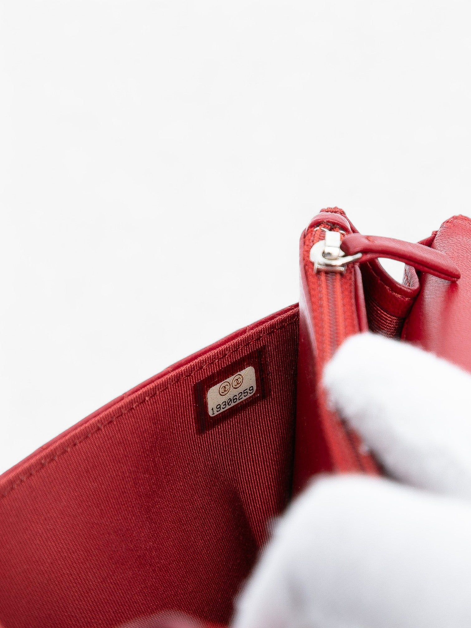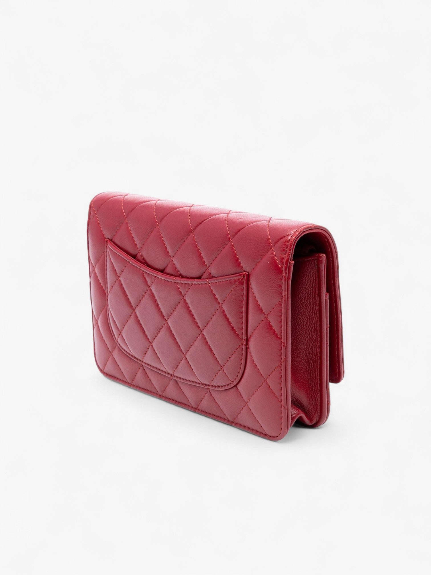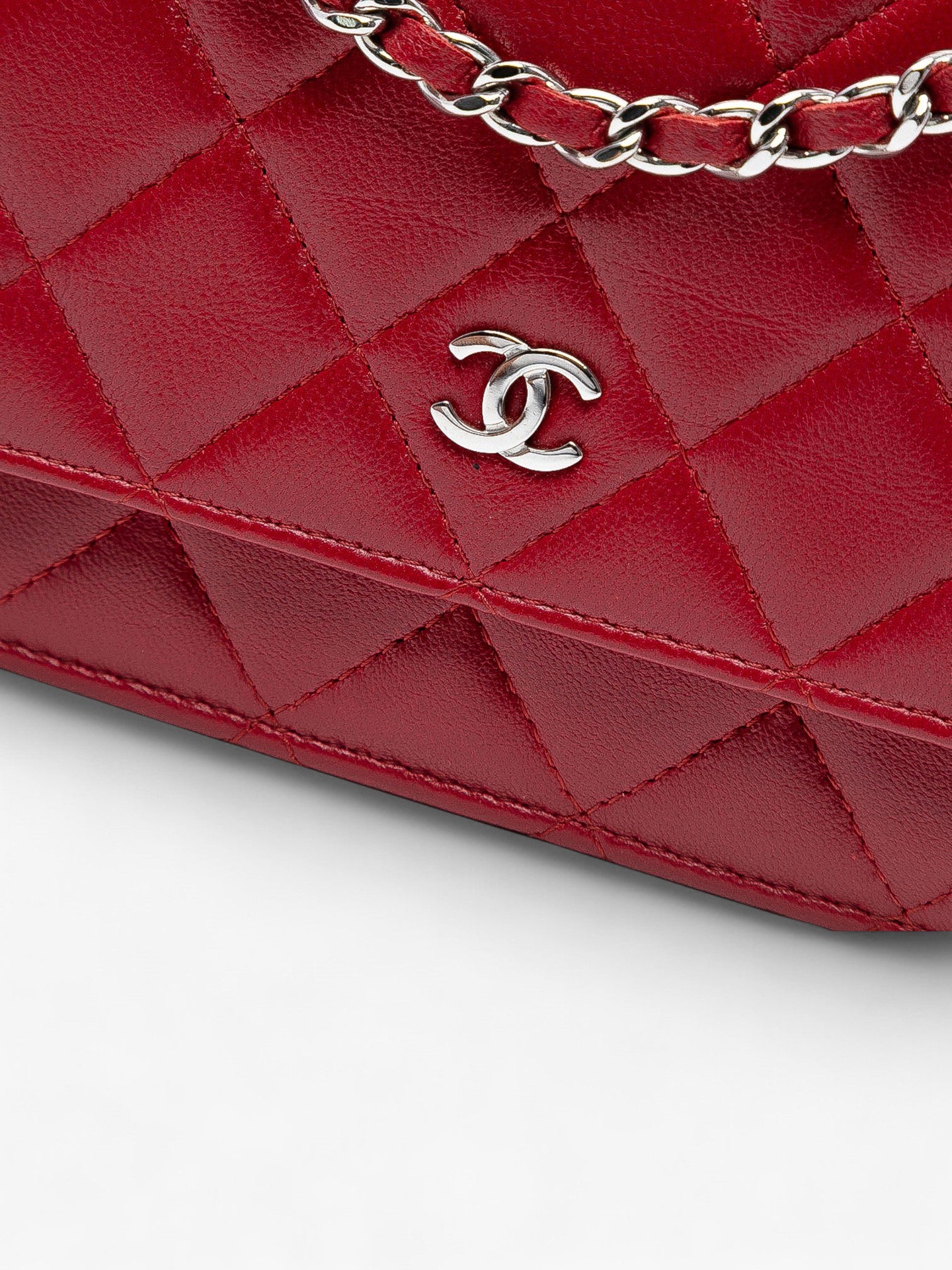 Чантата Chanel CC Quilted Lambskin Wallet on Chain в червено въплъщава вечната елегантност и класическия стил на Chanel. Изработена от мека агнешка кожа с емблематичния диамантен капитонаж на марката, тя разполага с преден капак с преплетено CC лого, копче за закопчаване и верижна презрамка, преплетена с кожа, за гъвкаво носене. Компактна, но функционална, тази чанта тип WOC преминава с лекота от дневен към вечерен стил, превръщайки се в задължителен елемент от всяка Chanel колекция.