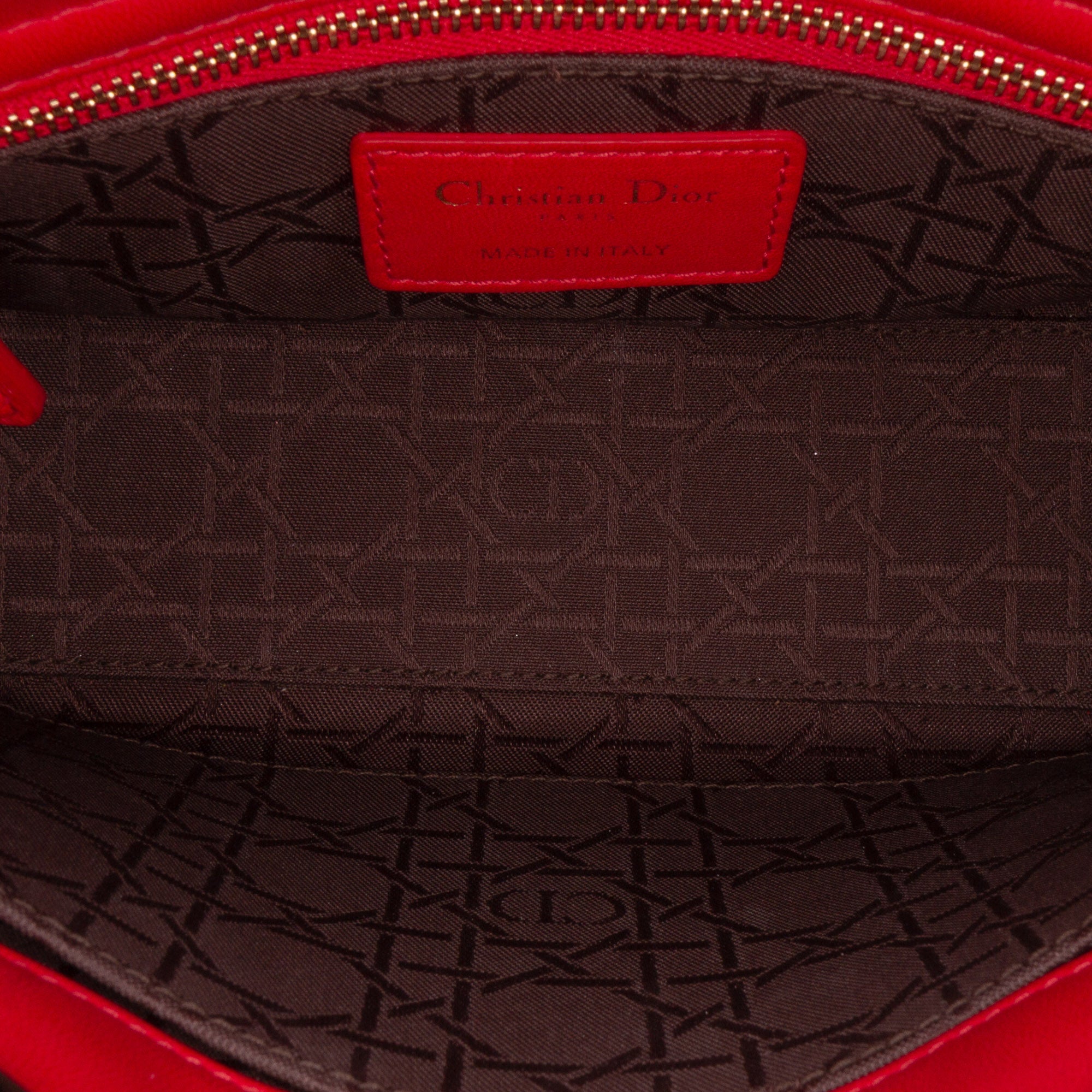 Aceasta este autentica geantă Dior Small Lambskin Cannage My ABCDior Lady Dior într-o nuanță impresionantă de roșu. Această geantă excepțională are un corp din piele de miel matlasată, completat de mânere din piele plată și o curea detașabilă pentru un stil versatil, în timp ce închiderea cu clapetă și buzunarul interior cu fermoar adaugă atât eleganță cât și practicitate, încorporând caracterul rafinat pentru care Dior este renumit.