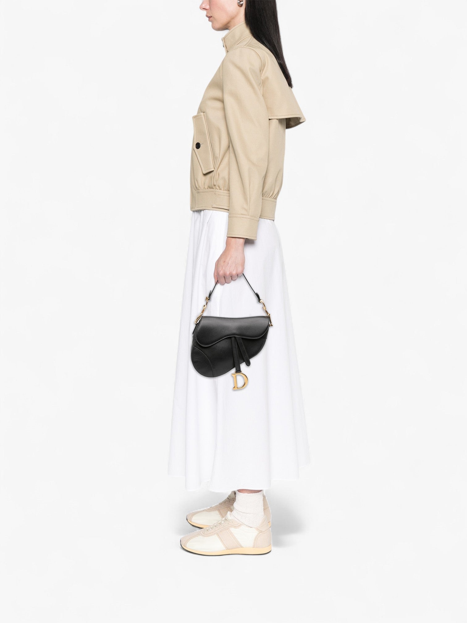 Чантата Dior Smooth Calfskin Saddle Bag в черен цвят е иконичен модел, който въплъщава съвременната женственост и неподражаемото наследство на Dior. Изработена от гладка телешка кожа, тя се отличава с характерната извита форма Saddle, магнитно закопчаване и тънка кожена презрамка, която стои елегантно на рамото. С изчистените си линии и вечната си естетика, тази чанта остава един от най-разпознаваемите и желани модели на марката.