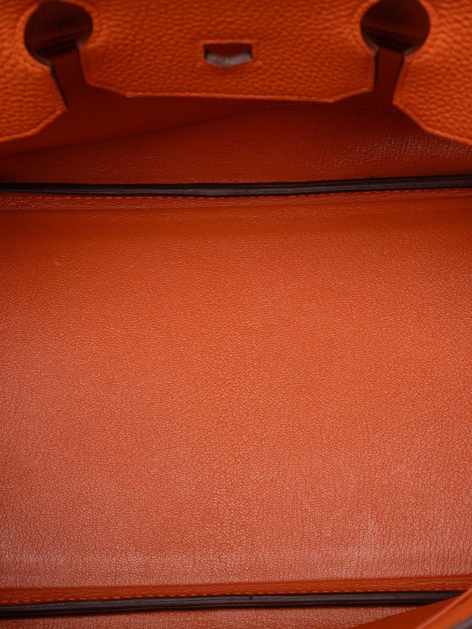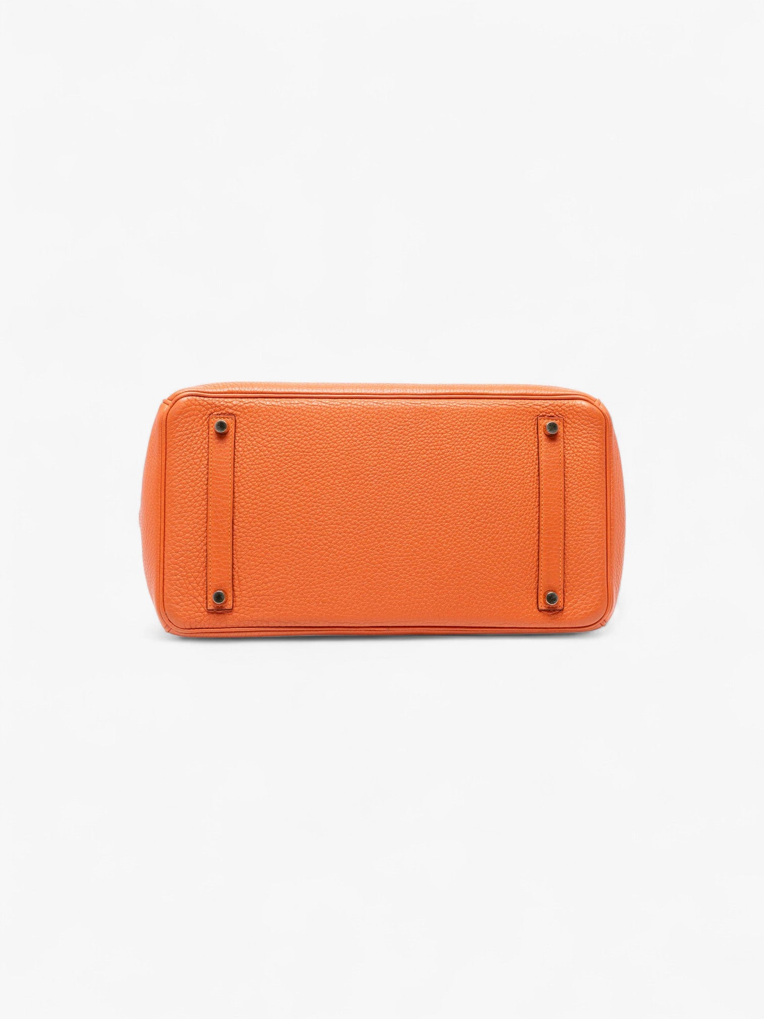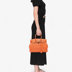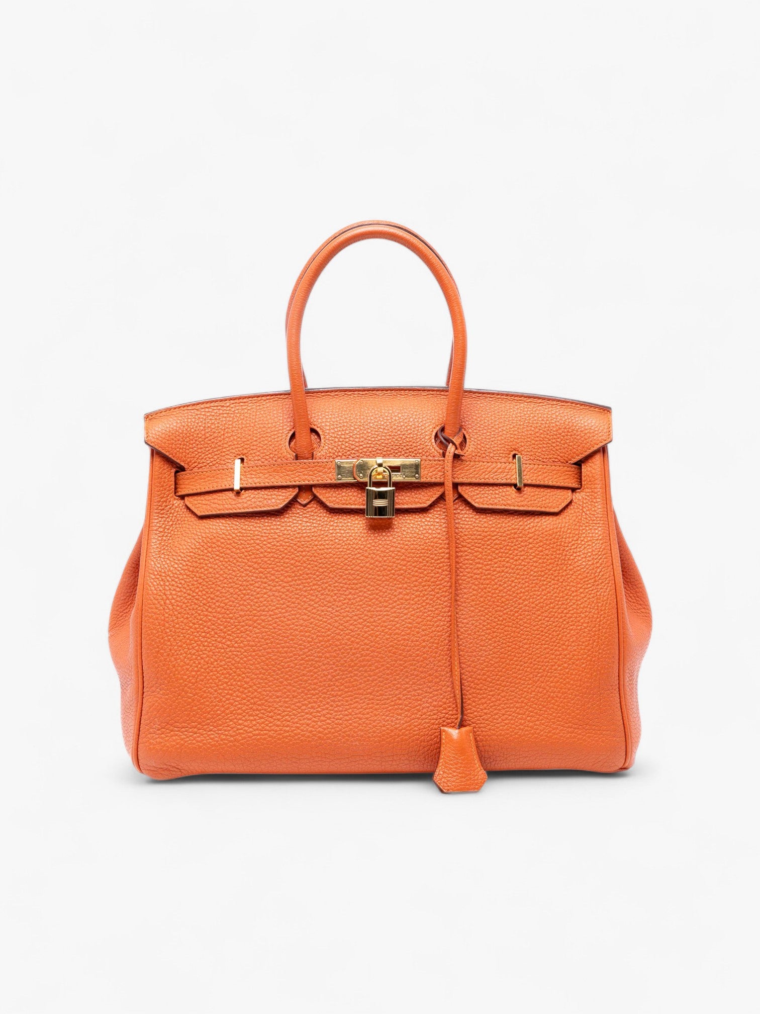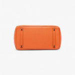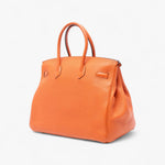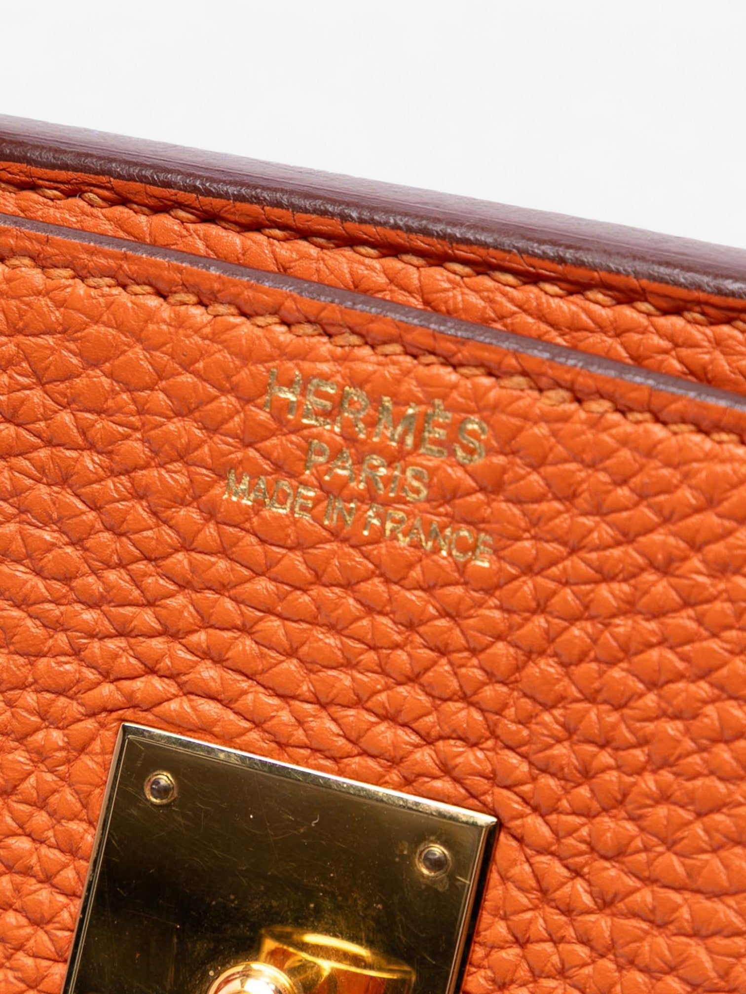 Чантата Hermès Togo Birkin Retourne 35 в оранжево е сияен символ на вечна изтънченост. Прецизно изработена от мека кожа Togo, тя разполага с навити кожени дръжки, класически преден капак с кожени ленти и turn-lock закопчаване, както и просторен интериор с джоб с цип и вътрешен отворен джоб. Топлият ѝ цвят и емблематичният силует я превръщат в неподражаемо изявление за фина изработка и ненатрапчива елегантност — истинско колекционерско съкровище за ценители на Hermès.