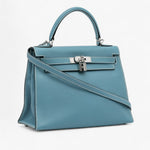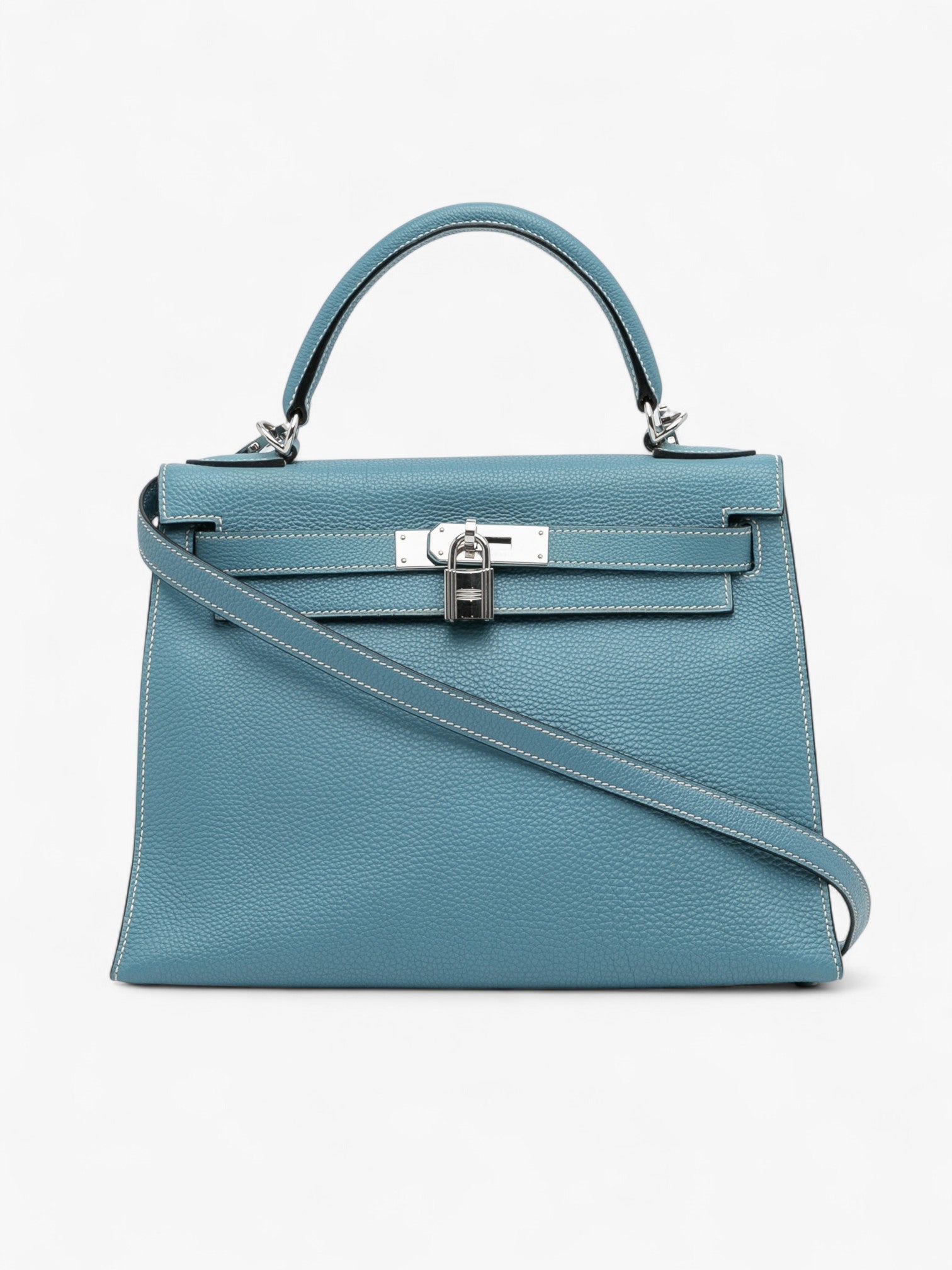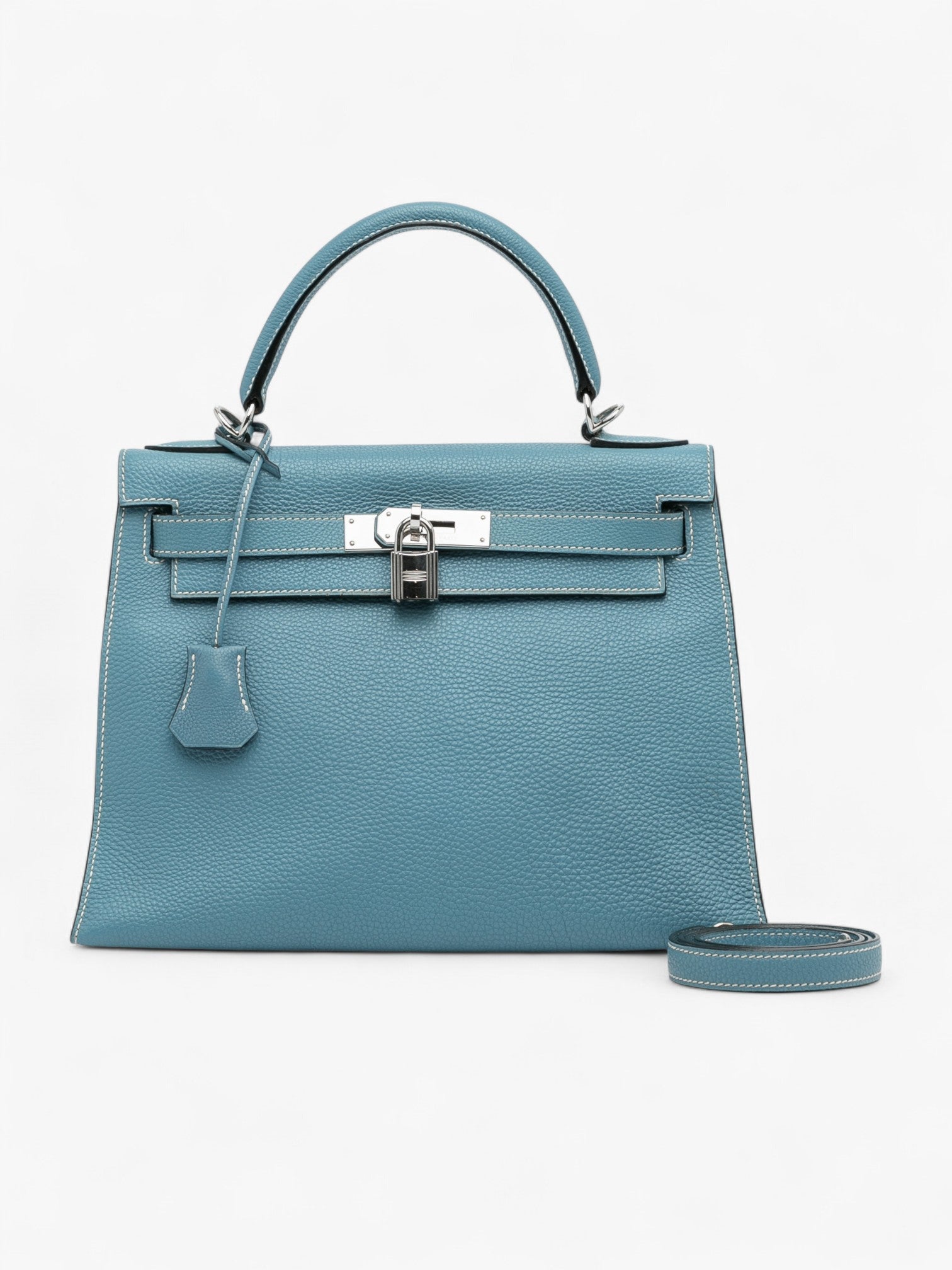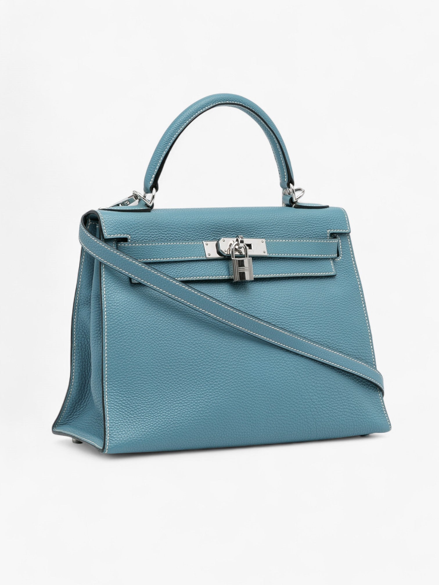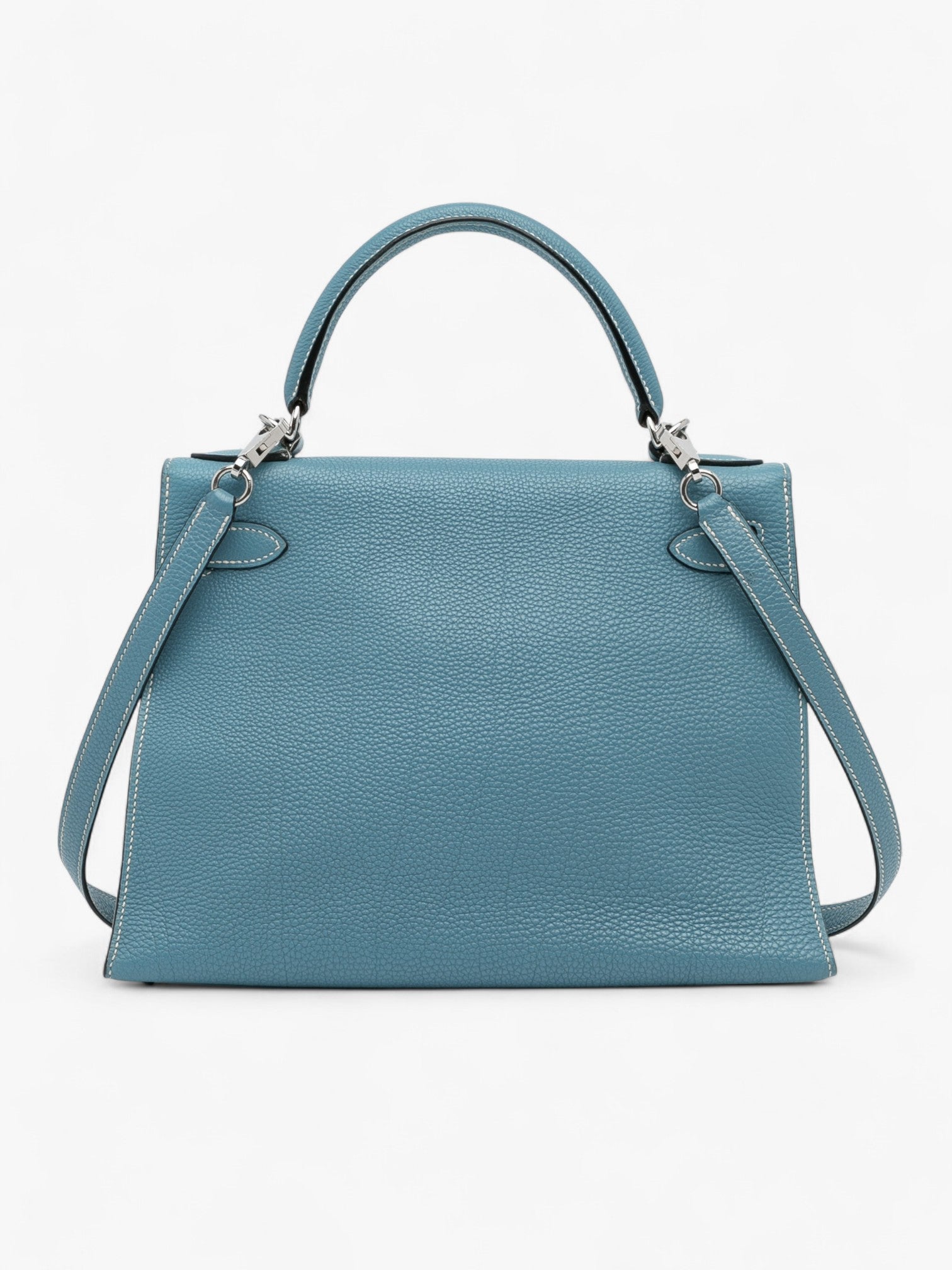 The Hermès Togo Kelly Sellier Mou 28 in Bleu Jean is a refined symbol of timeless elegance. Crafted from supple Togo leather, this version of the iconic Kelly blends the structure of the Sellier style with the soft, relaxed form of the Mou finish. It features a rolled leather handle, detachable shoulder strap, and the signature twist-lock closure with polished hardware. Compact yet practical, the Kelly 28 exudes effortless sophistication — a truly collectible piece that embodies the heritage and craftsmanship of Hermès.