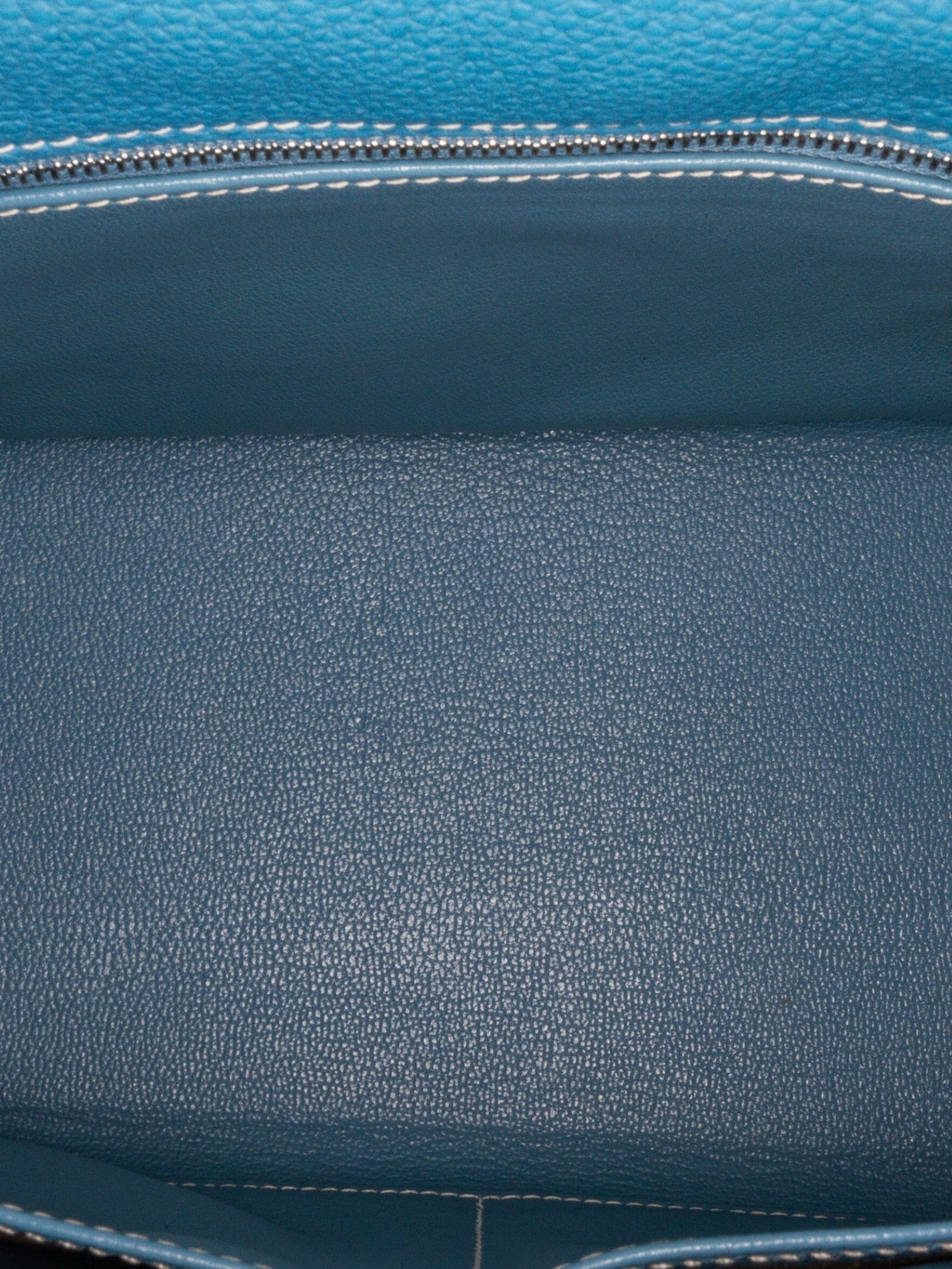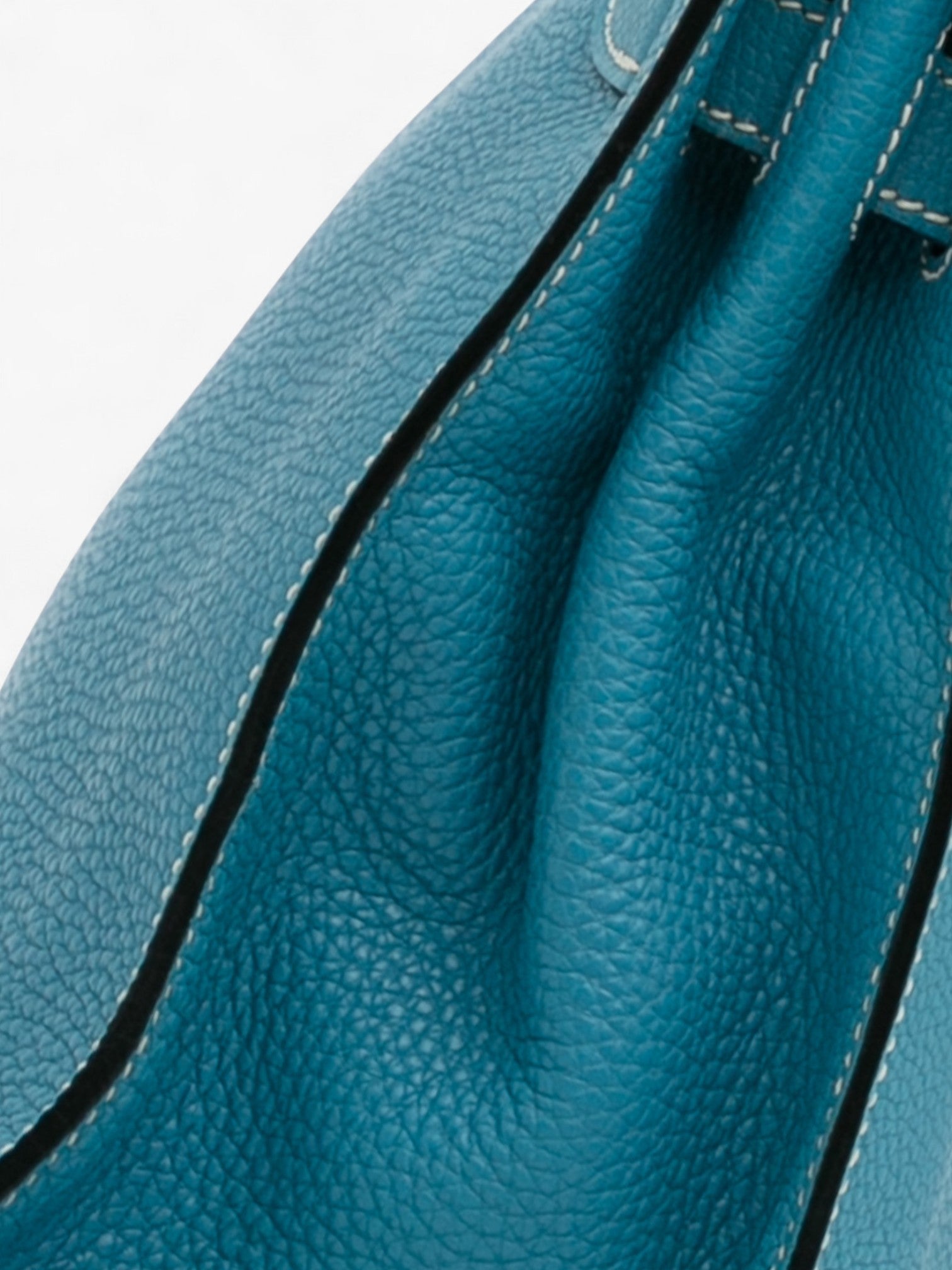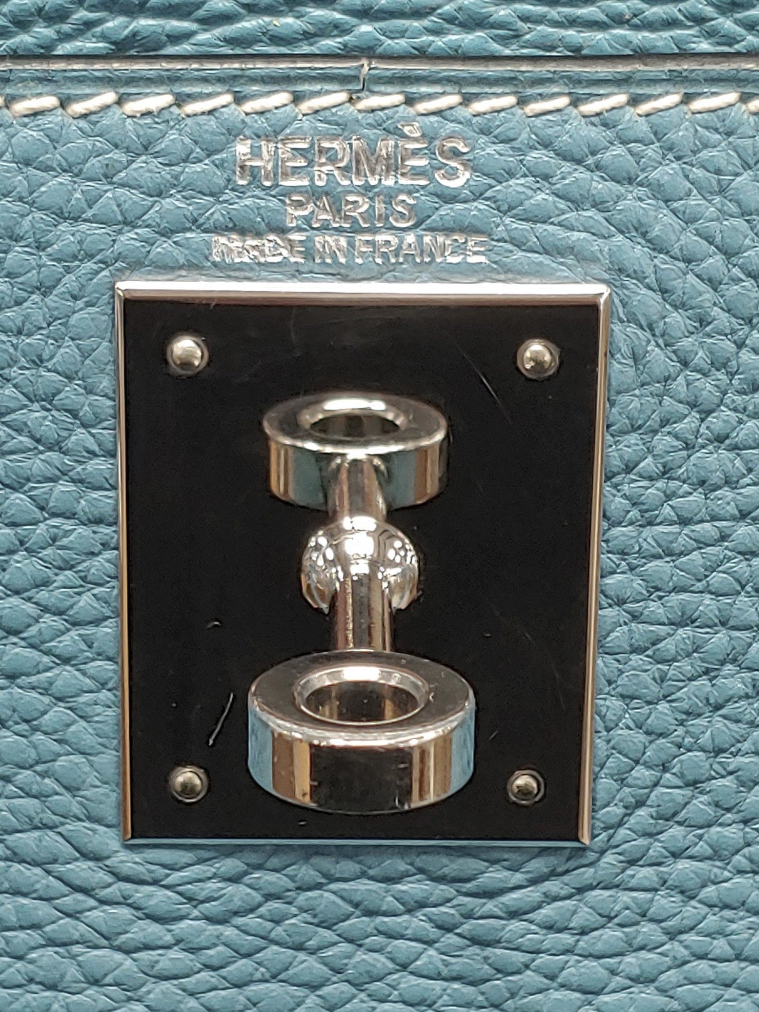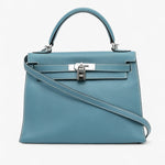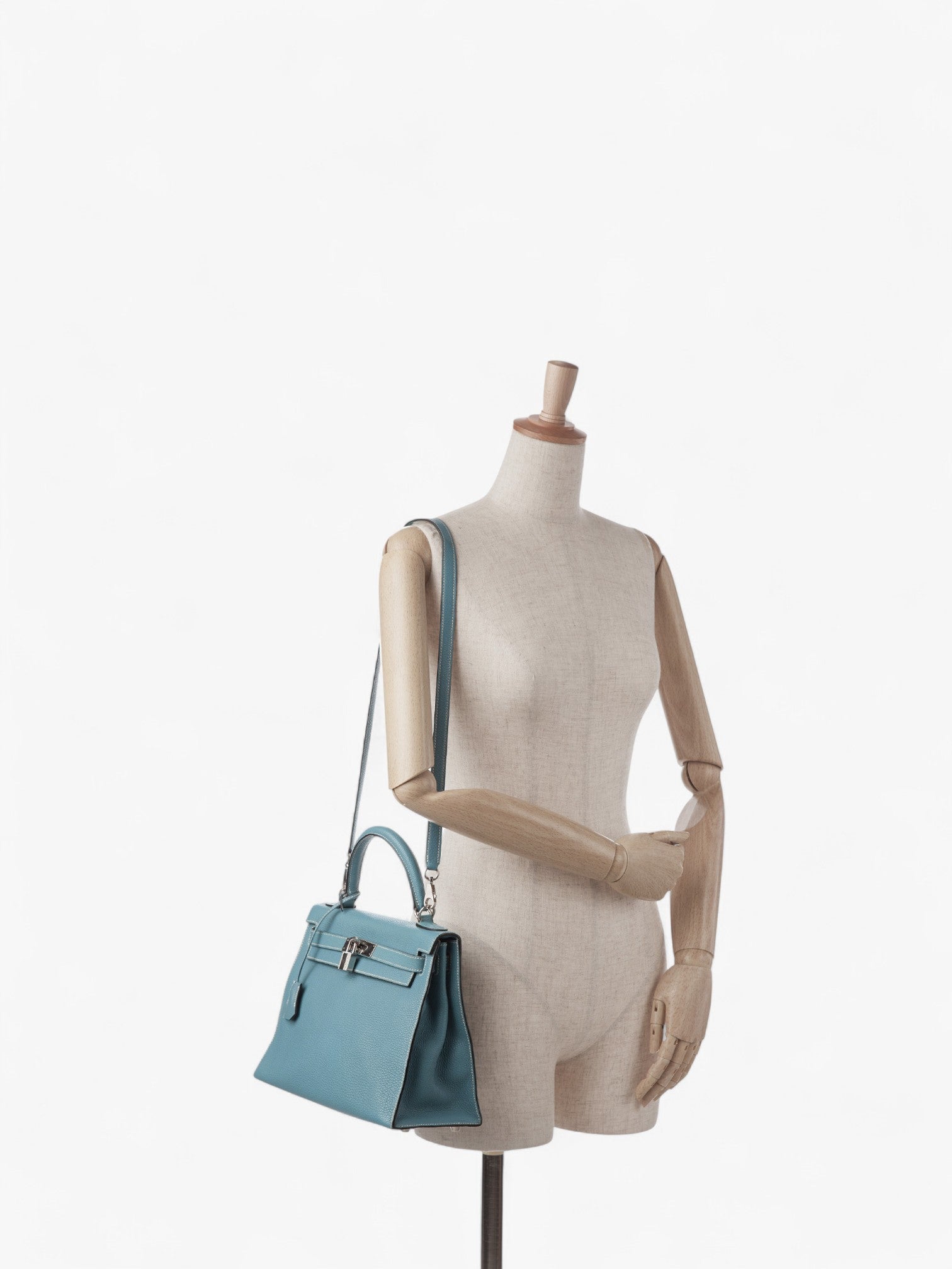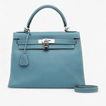 The Hermès Togo Kelly Sellier Mou 28 in Bleu Jean is a refined symbol of timeless elegance. Crafted from supple Togo leather, this version of the iconic Kelly blends the structure of the Sellier style with the soft, relaxed form of the Mou finish. It features a rolled leather handle, detachable shoulder strap, and the signature twist-lock closure with polished hardware. Compact yet practical, the Kelly 28 exudes effortless sophistication — a truly collectible piece that embodies the heritage and craftsmanship of Hermès.