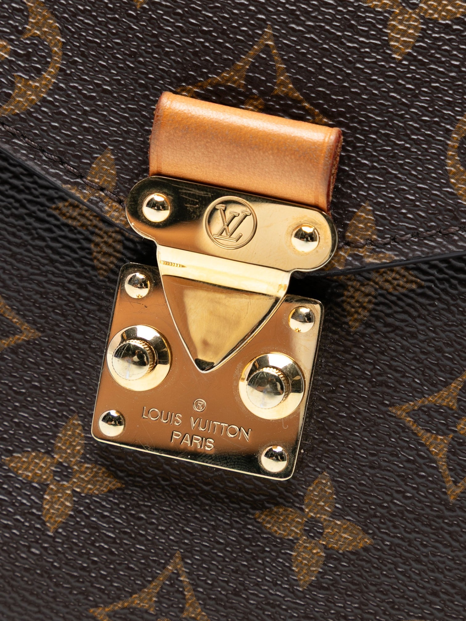 Чантата Louis Vuitton Monogram Pochette Métis е един от най-желаните и универсални модели на марката. Изработена от емблематичното Monogram покрито платно с детайли от Vachetta кожа, тя се отличава със структурирана форма, къса дръжка и подвижна дълга презрамка за носене през рамо или кросбоди. Предният капак с емблематичното S-lock закопчаване и добре организираният интериор я превръщат в идеален ежедневен спътник, съчетаващ вечната елегантност на Louis Vuitton с модерна функционалност.