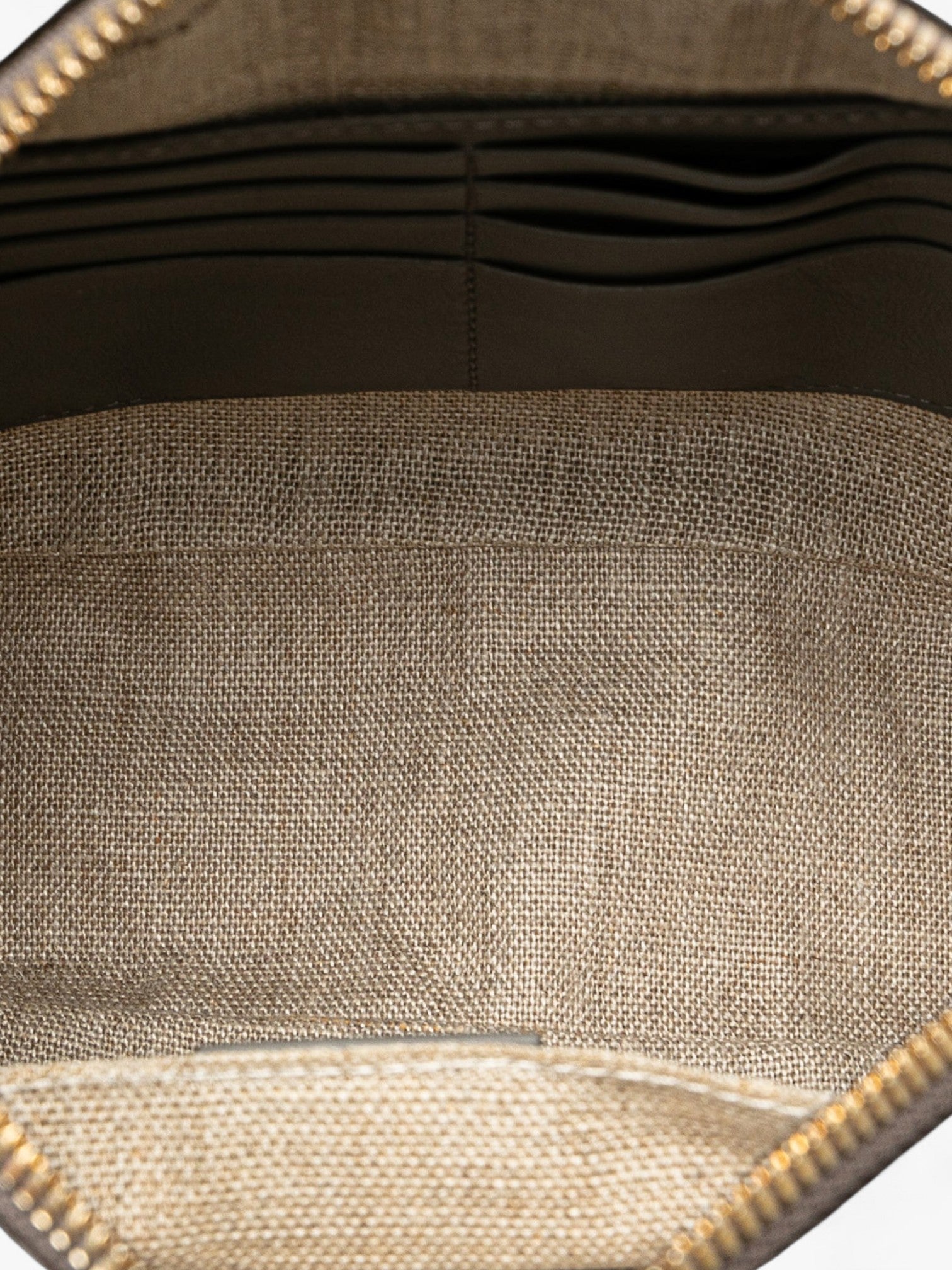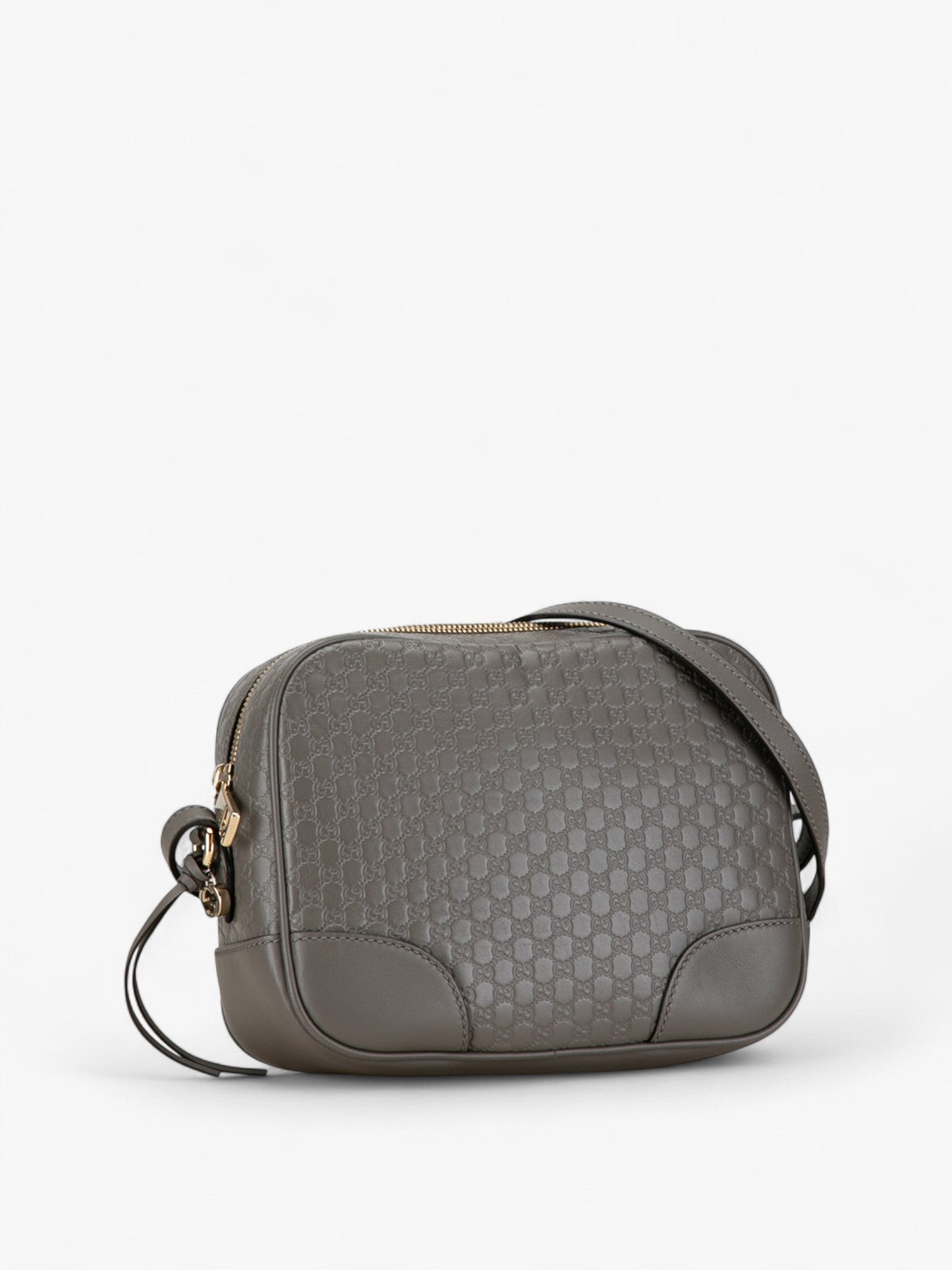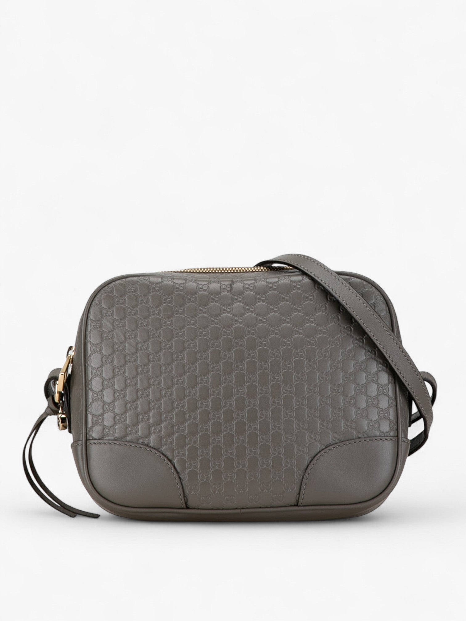 The Gucci Microguccissima Bree Crossbody in gray combines practicality with understated elegance. Crafted from embossed Microguccissima leather, this compact crossbody features a top zip closure, adjustable leather strap, and sleek silhouette designed for effortless everyday wear. The subtle tone and iconic pattern make it a timeless Gucci essential that transitions seamlessly from day to evening.